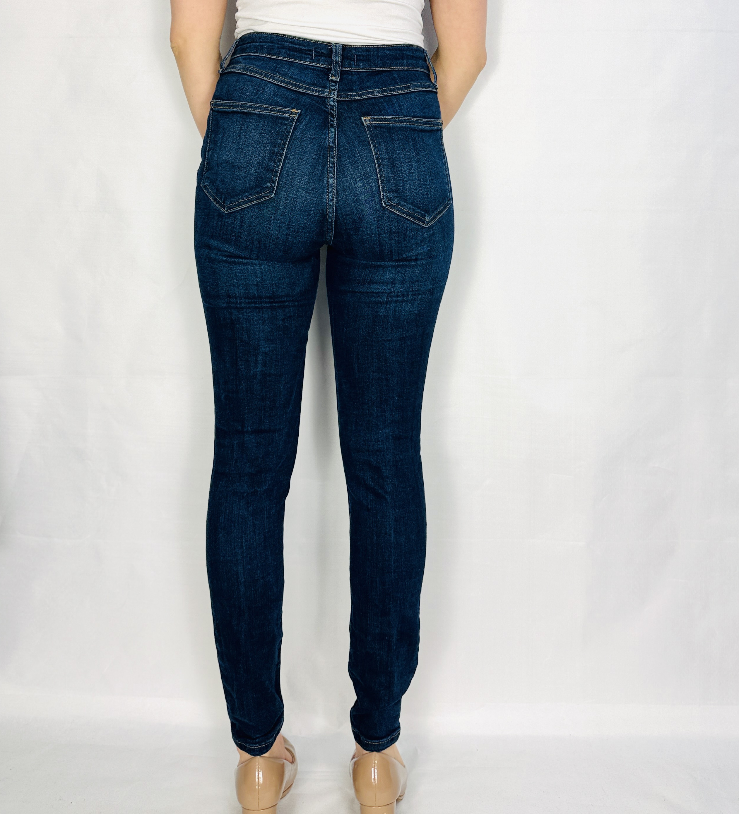 Fason wpływa korzystnie na proporcje: wysoka talia eksponuje wcięcie i optycznie wydłuża nogi, a dopasowana góra wraz ze zwężaną nogawką wysmuklają uda i łydki, tworząc elegancką, uporządkowaną sylwetkę. Ten fason będzie szczególnie korzystny dla sylwetek klepsydry i prostokąta, gdzie akcentowanie talii oraz jednolita linia nóg potęgują harmonię; także sylwetka gruszki zyska na efekcie wydłużenia i uporządkowaniu proporcji.
