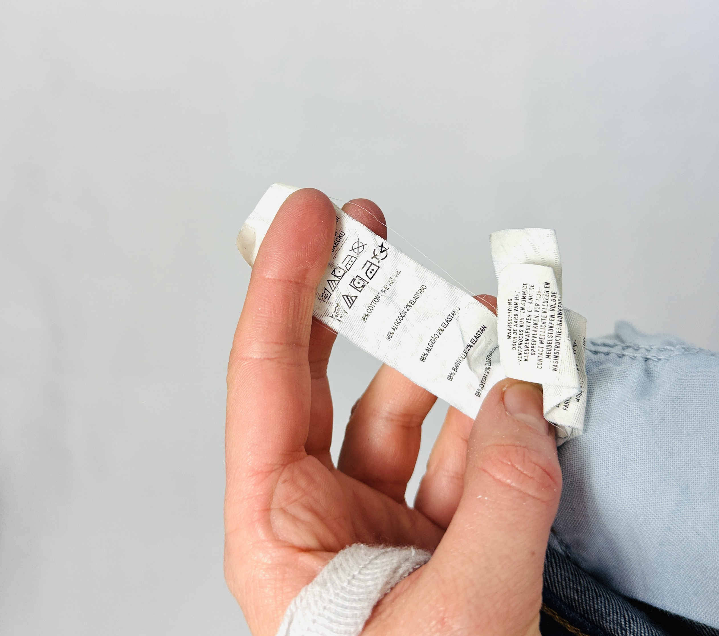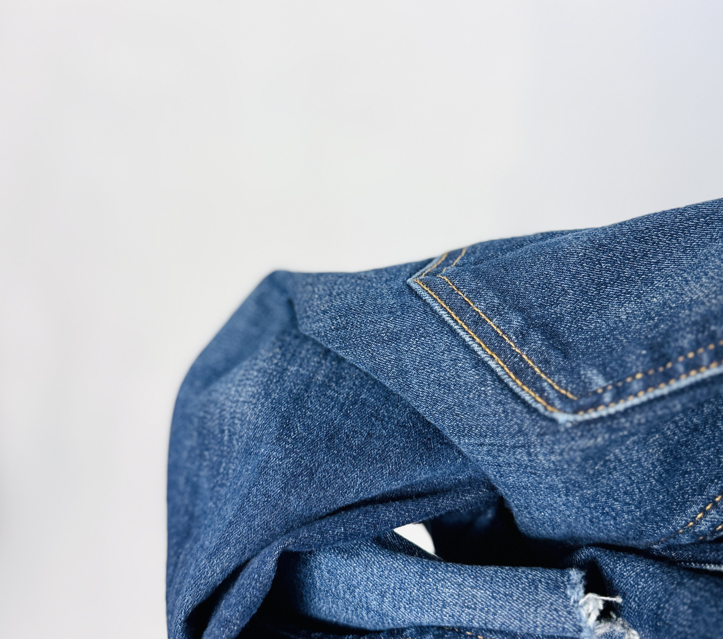 Materiał prezentuje się jako średnio grubszy denim o uporządkowanej, lekko szczotkowanej fakturze; powierzchnia ma delikatne cieniowanie poziome, które podkreśla bryłę i nadaje głębi kolorowi. Tkanina wygląda na umiarkowanie elastyczną — sprężysta struktura sprawia, że spodnie dopasowują się do sylwetki, jednocześnie zachowując formę i wygodę ruchu. Naturalne marszczenia przy kolanach i kostkach świadczą o tym, że materiał ładnie pracuje w czasie noszenia, nie tracąc schludnej linii.