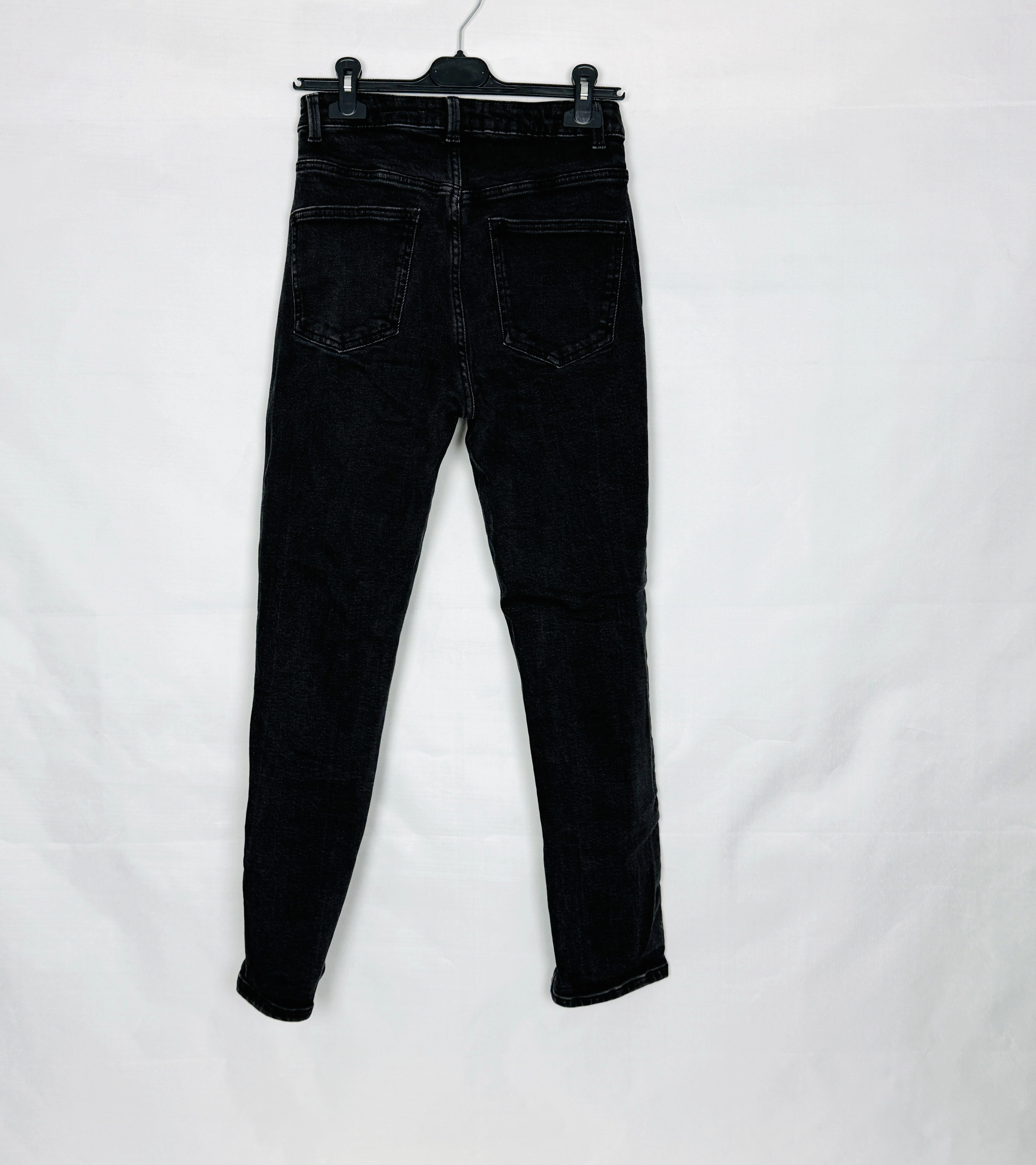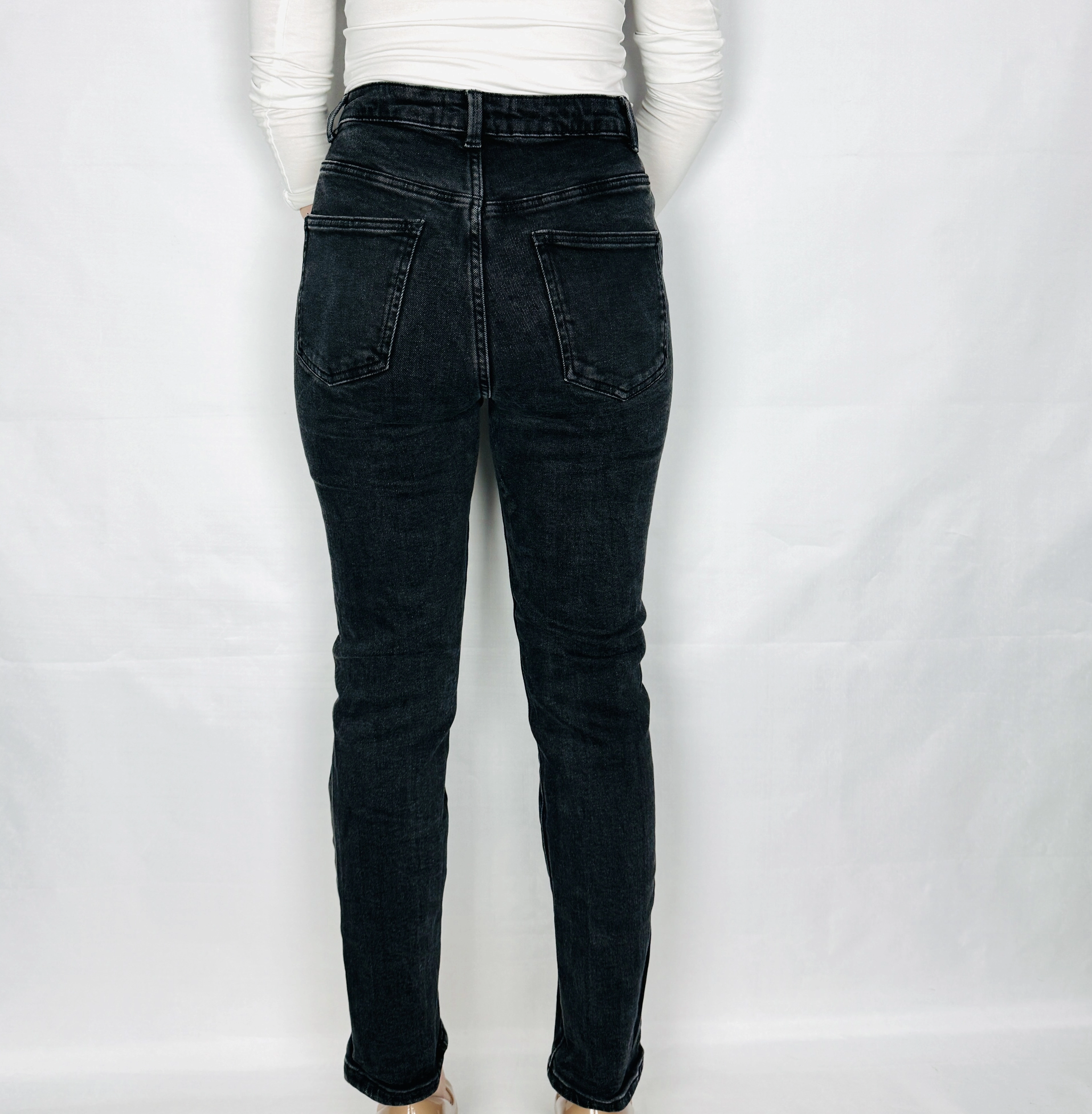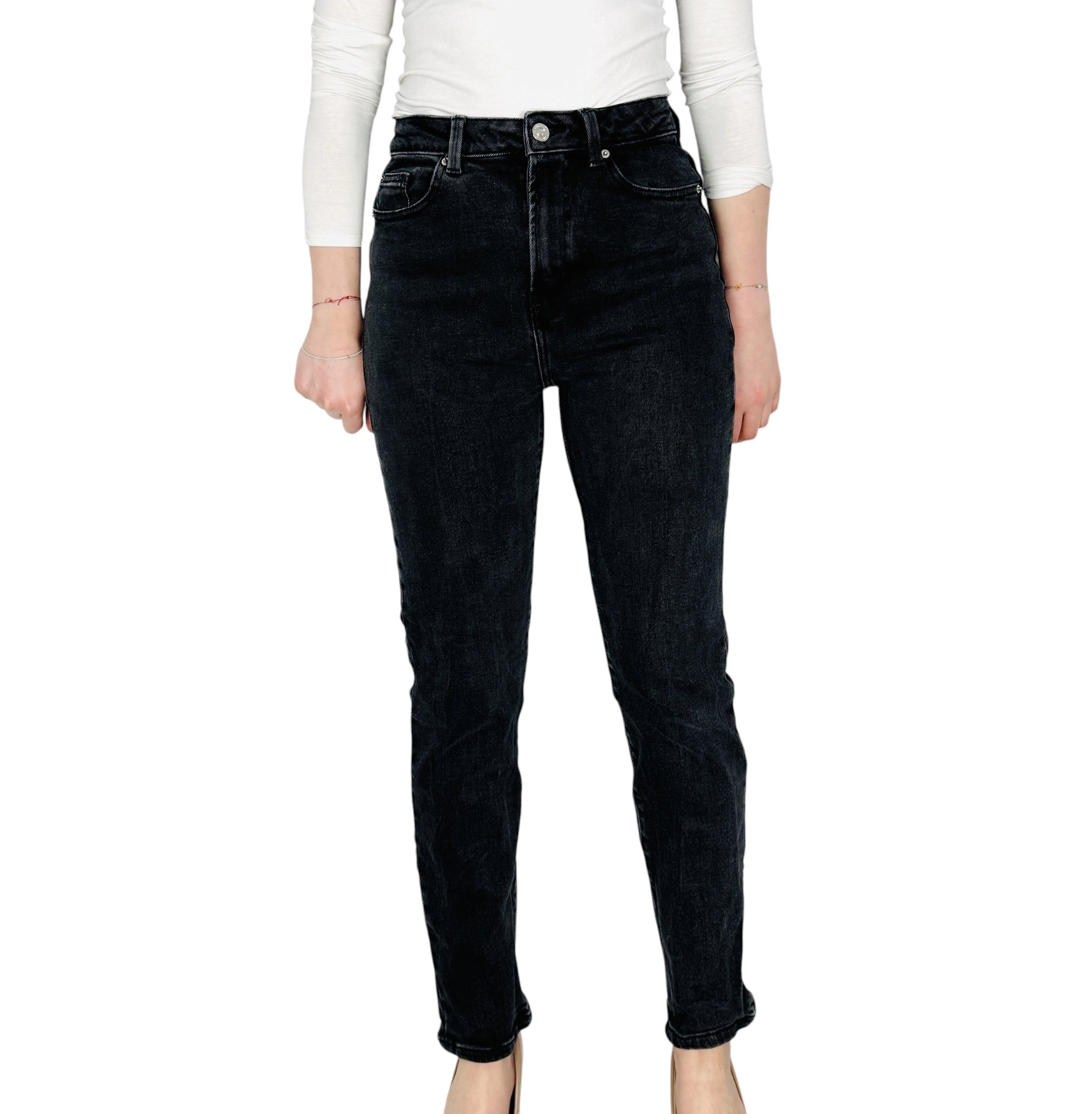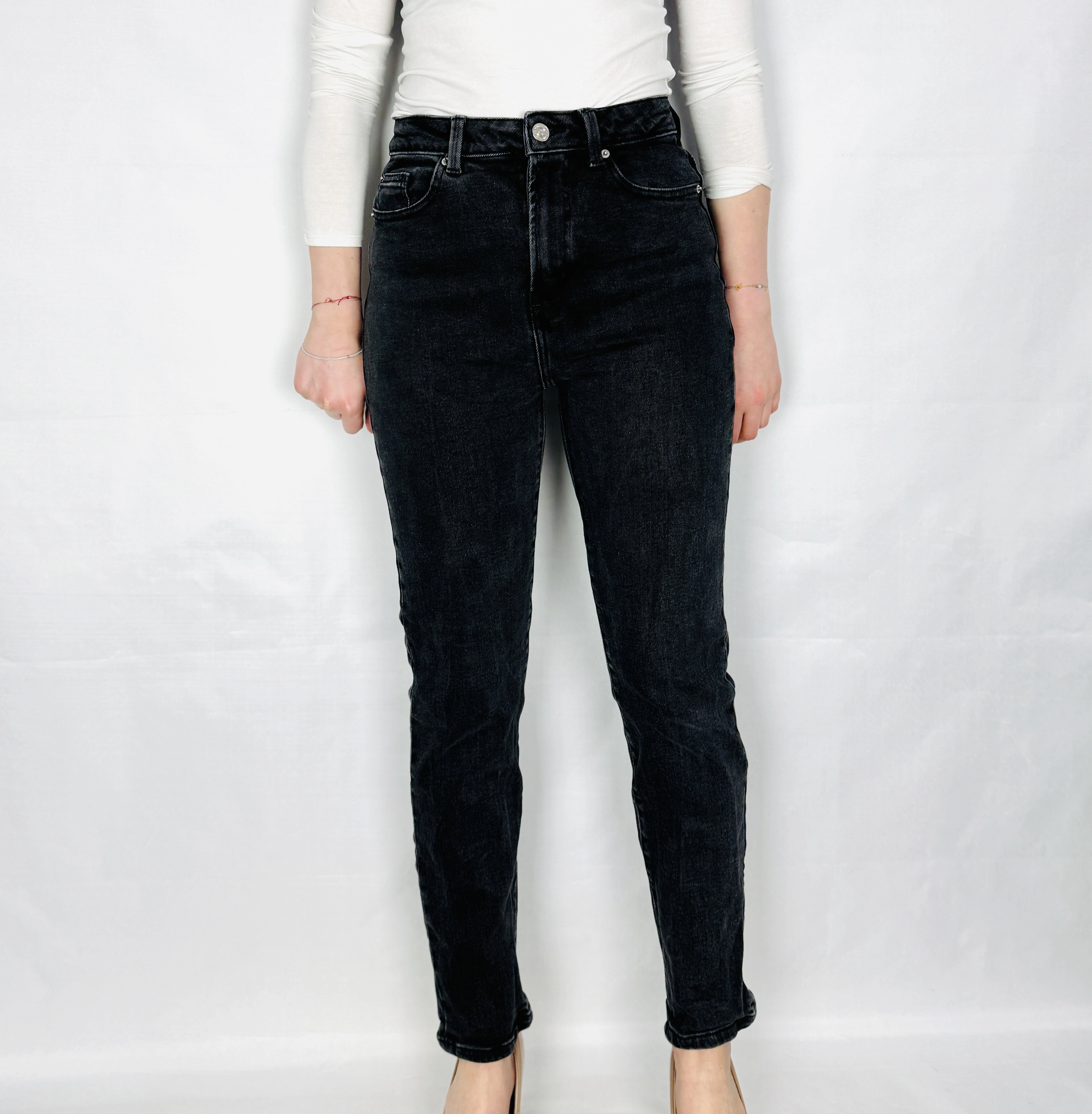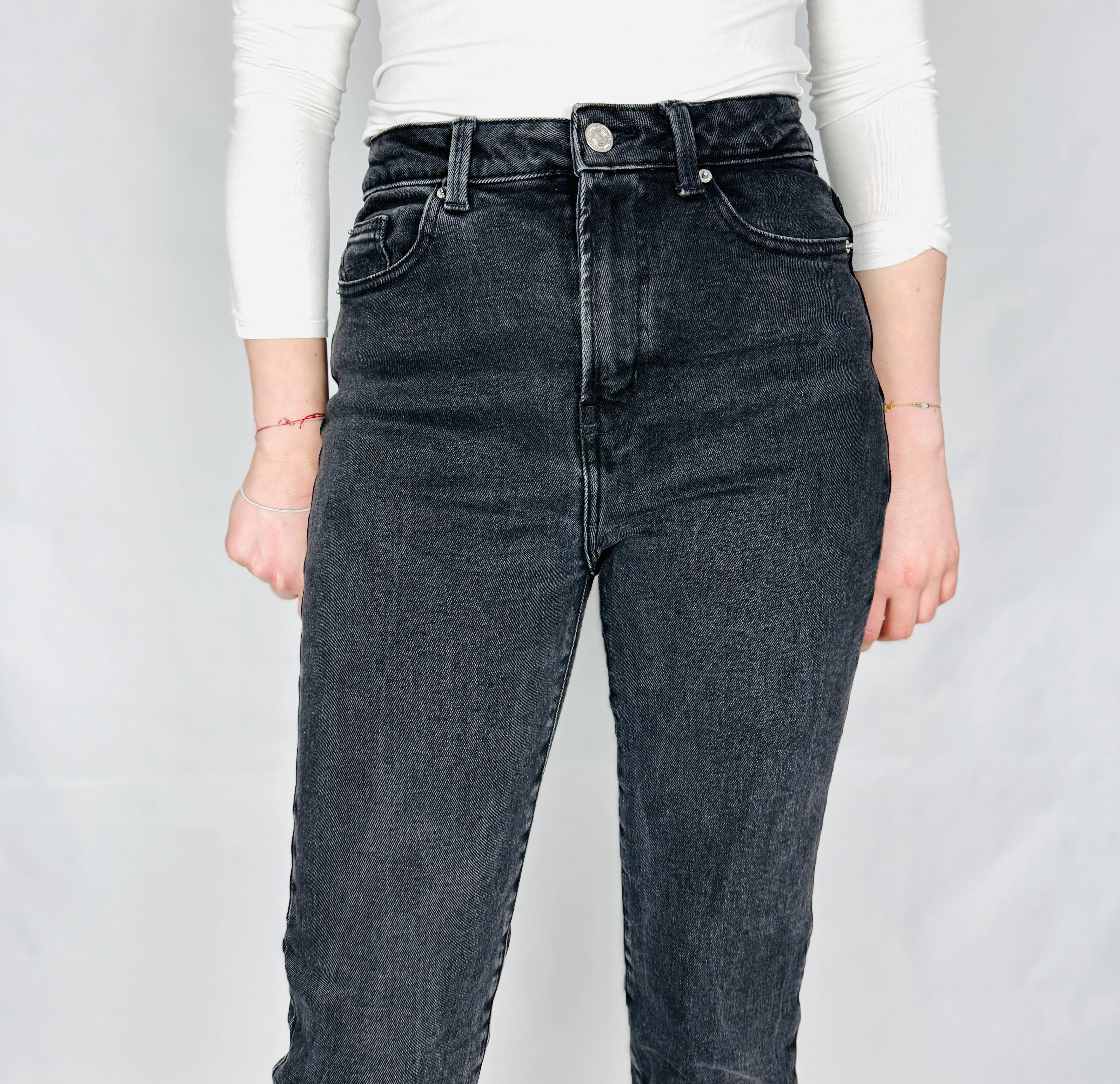 Te jeansy to kwintesencja miejskiego szyku i nastrojowej klasyki, która w mistrzowski sposób łączy codzienną wygodę z niezwykle kobiecym wykończeniem. Głęboki, nasycony odcień ciemnej szarości z delikatnym efektem sprania nadaje spodniom unikalnego, nieco surowego charakteru, który idealnie wpisuje się w trendy nowoczesnej elegancji. To ubiór, który emanuje pewnością siebie i spokojem, stając się niezawodną bazą dla radosnych, codziennych stylizacji. Jeansy te są nastrojową interpretacją tradycyjnego denimu, oferując wyrafinowany wygląd, który nienachalnie podkreśla kobiecą sylwetkę, zapewniając jednocześnie nienaganny styl w każdej radosnej chwili.