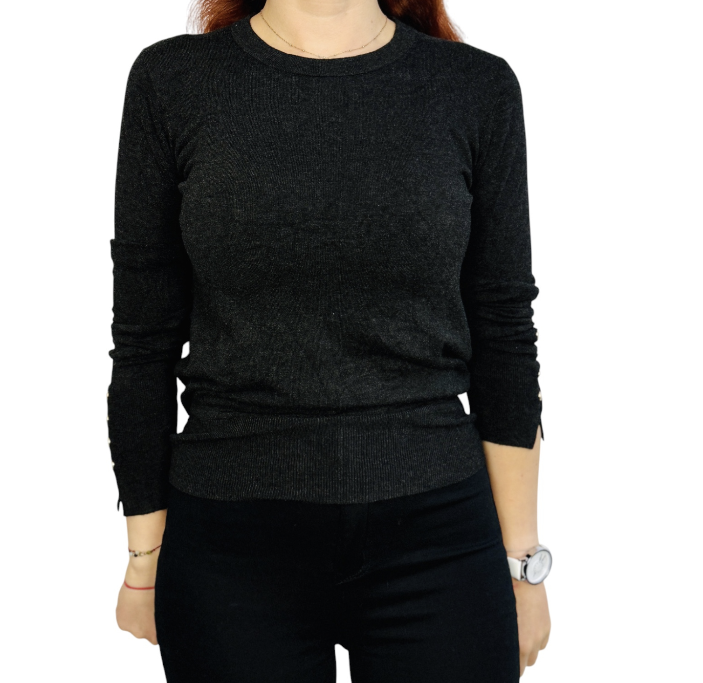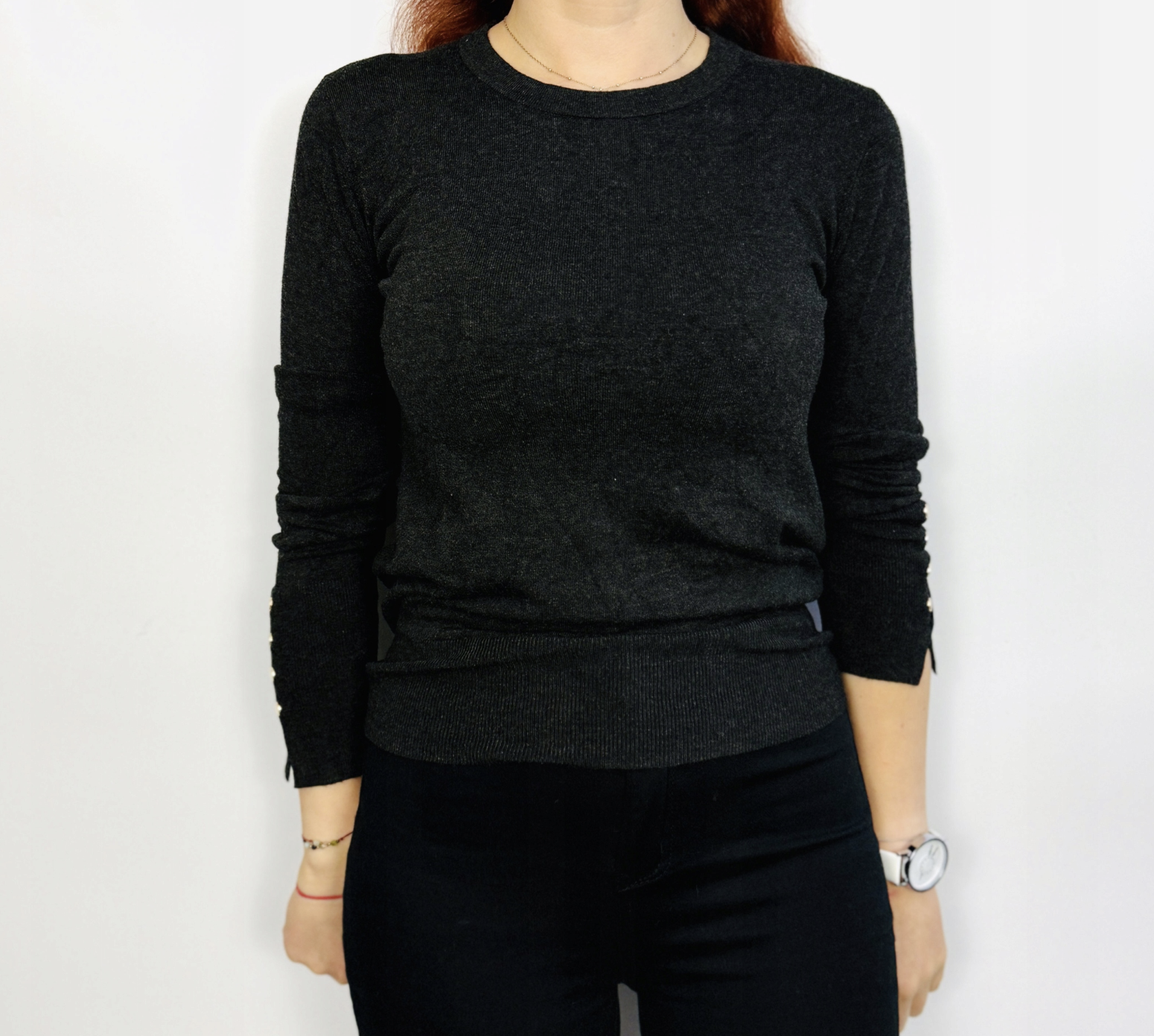 Ciemnoszary sweterek z guzikami na rękawach S 36