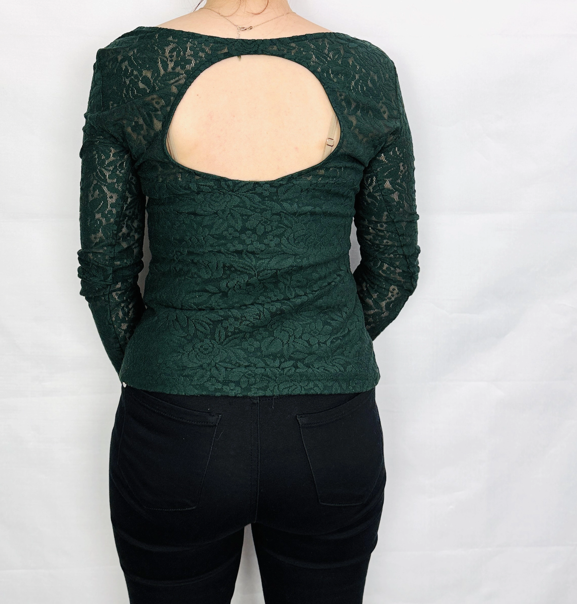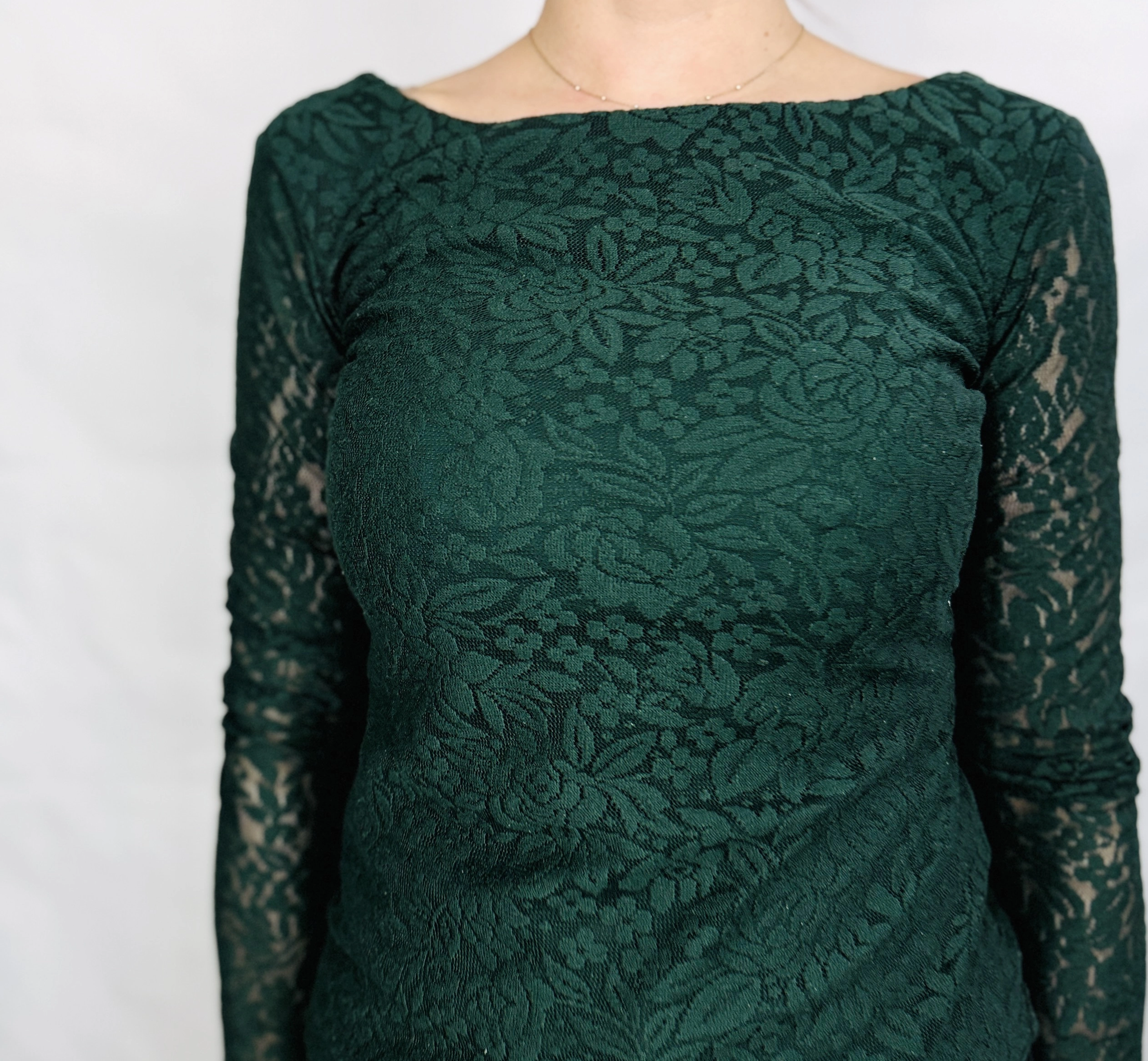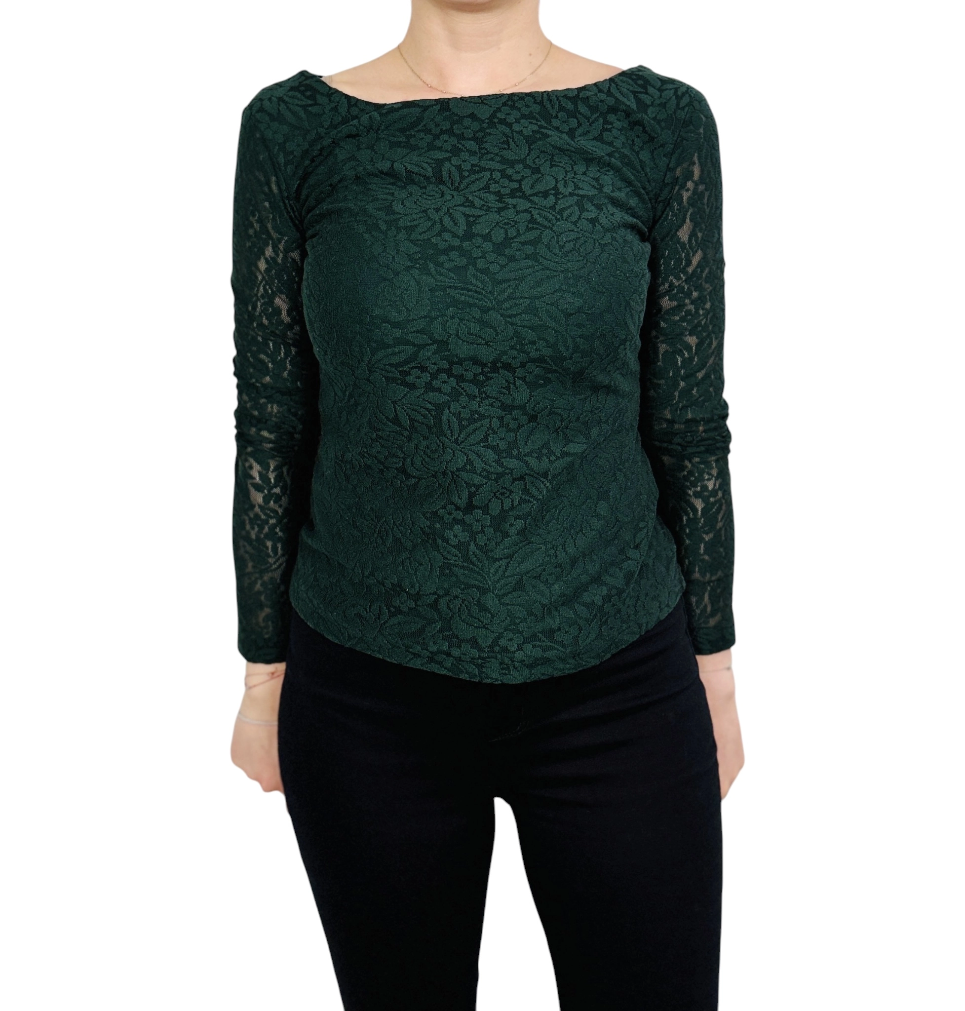 Ciemnozielona koronkowa bluzka z dekoltem w łódkę S 36