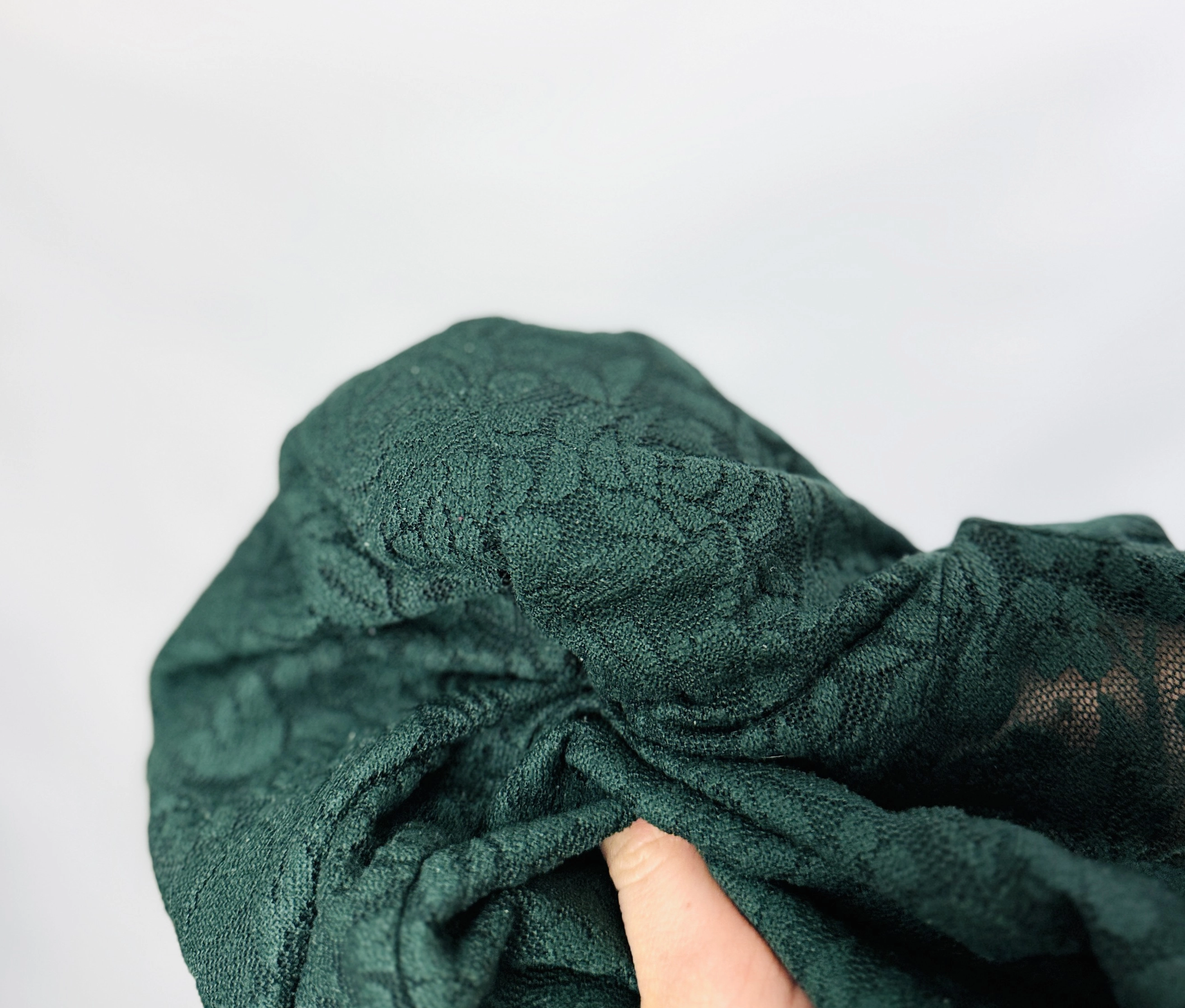 Długość bluzki sięga do linii bioder, co czyni ją niezwykle ustawny elementem garderoby na specjalne okazje. Wyśmienicie prezentuje się w kontrastowym zestawieniu z dopasowanymi czarnymi spodniami rurkami, co pozwala na stworzenie wysublimowanej i bardzo eleganckiej sylwetki, idealnej na uroczystą kolację, przyjęcie rodzinne czy wieczorne wyjście do teatru. Równie dobrze odnajdzie się w towarzystwie klasycznej spódnicy ołówkowej, podkreślając profesjonalizm i kobiece wyrafinowanie. Głęboka zieleń w połączeniu z koronką świetnie współgra ze złotą biżuterią, która dodatkowo podkreśli bogactwo wzoru i szlachetny koloryt tkaniny. Jest to produkt, który pozwoli Ci poczuć się pewnie i wyjątkowo, emanując ponadczasowym stylem i elegancją w każdych okolicznościach.