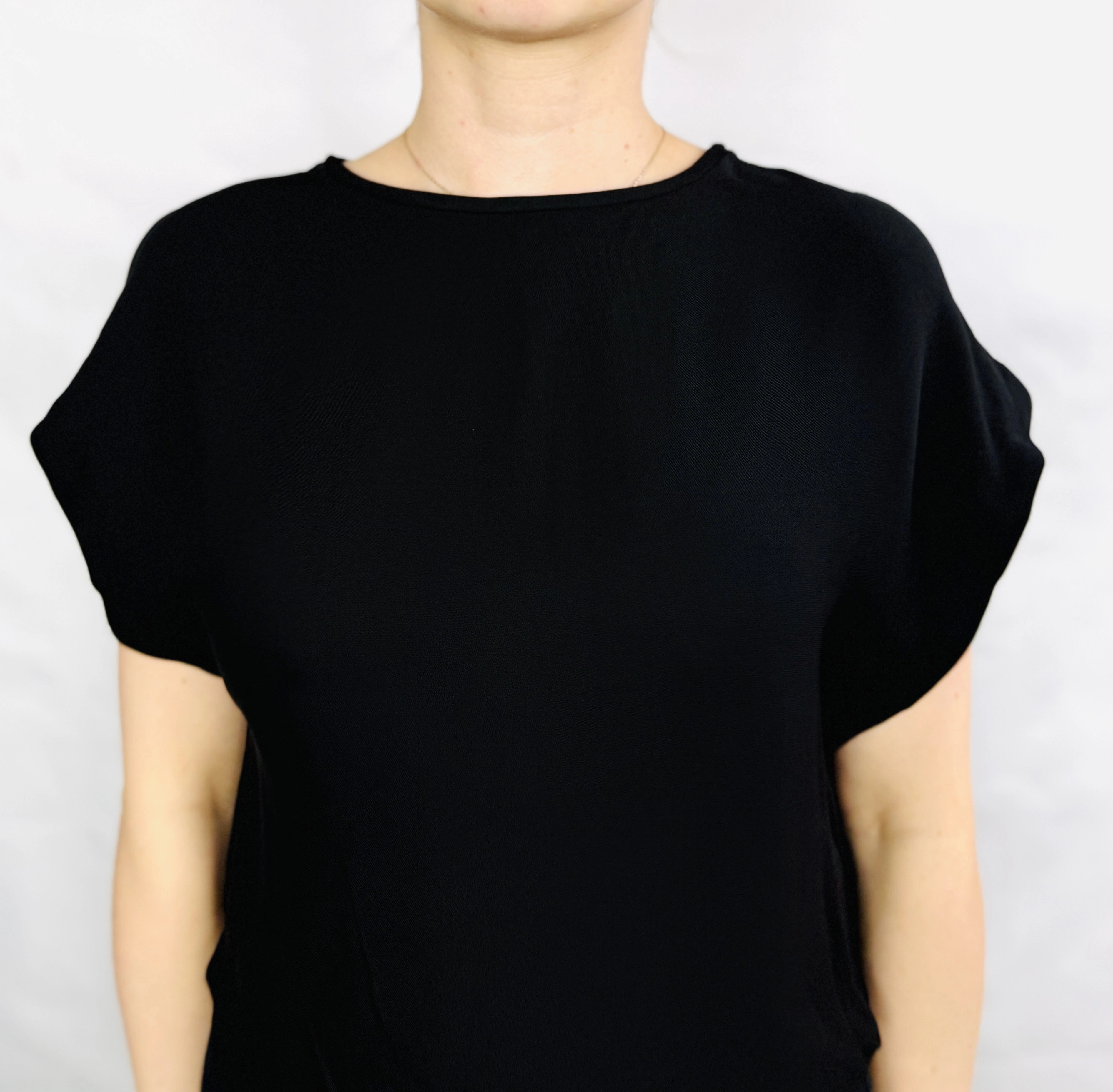 Ta czarna bluzka to esencja minimalistycznej elegancji, która zachwyca swoją prostotą i ponadczasowym charakterem. Głęboka czerń nadaje jej wyrafinowania i sprawia, że staje się niezwykle uniwersalnym elementem garderoby, pasującym do niemal każdej stylizacji. To model stworzony dla kobiet ceniących subtelną klasykę, która nie potrzebuje zbędnych ozdób, by wyglądać stylowo i z klasą. Bluzka emanuje spokojem, lekkością i nowoczesnym podejściem do mody, będąc idealną bazą zarówno do codziennych, jak i bardziej eleganckich zestawów.