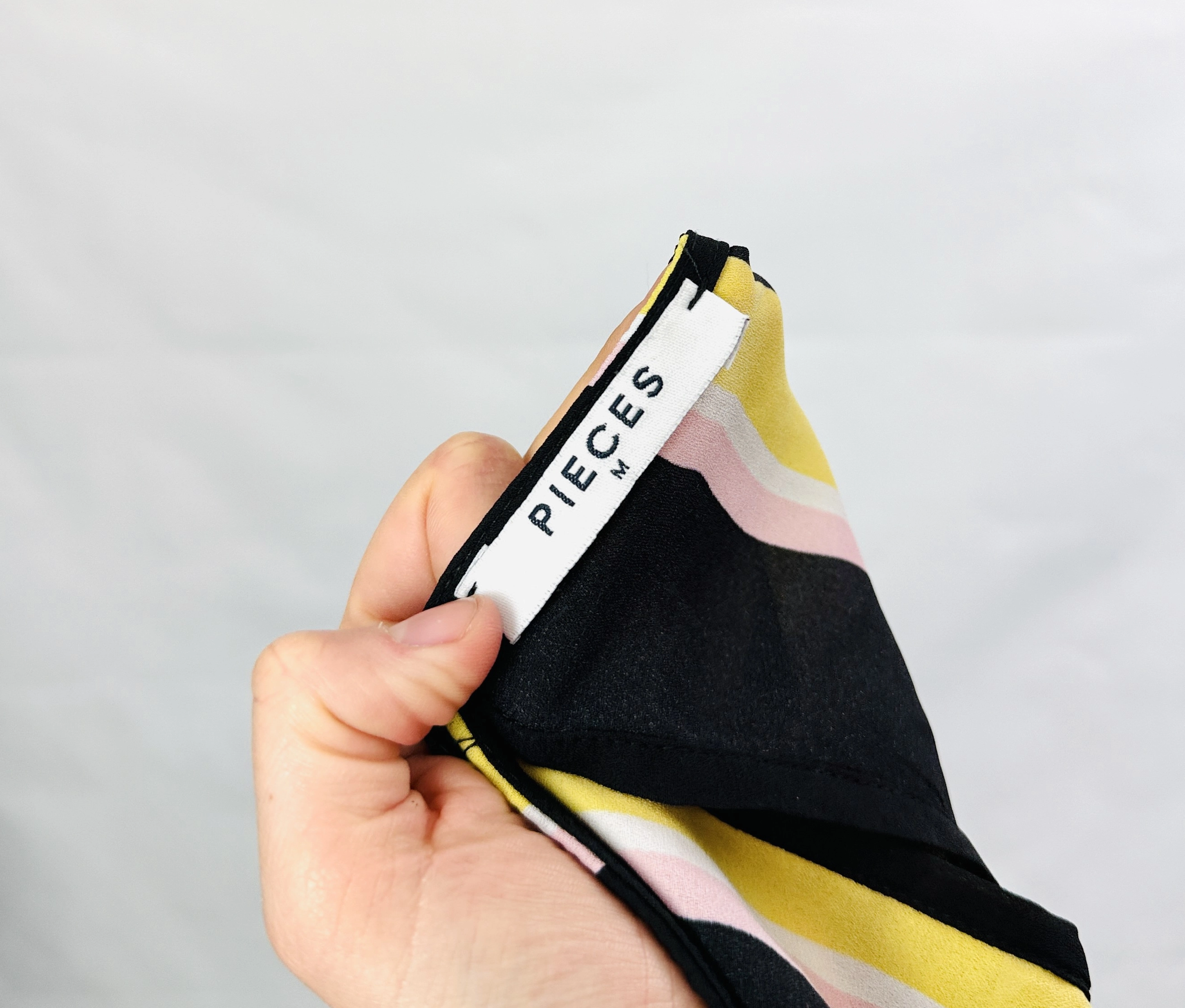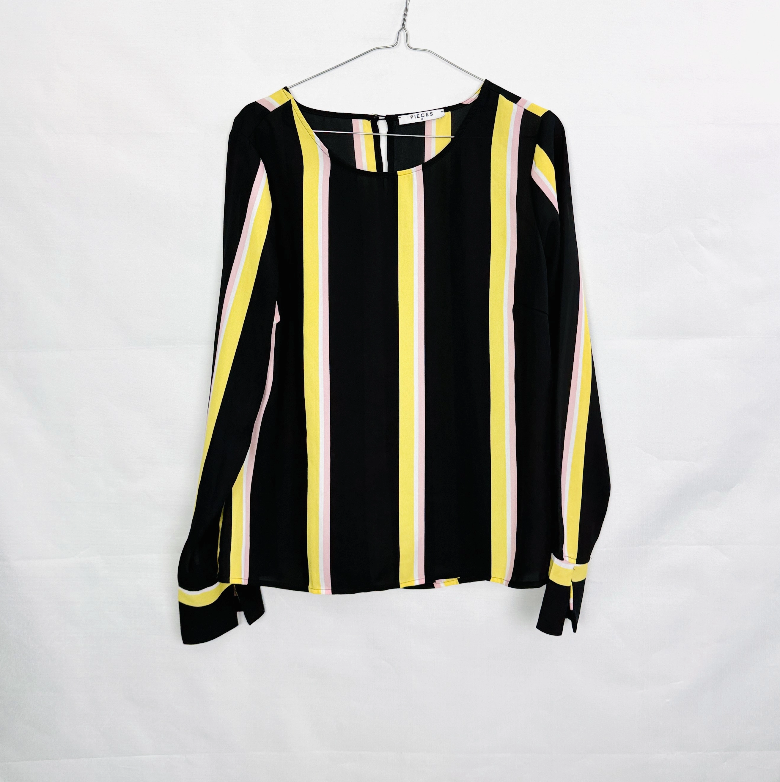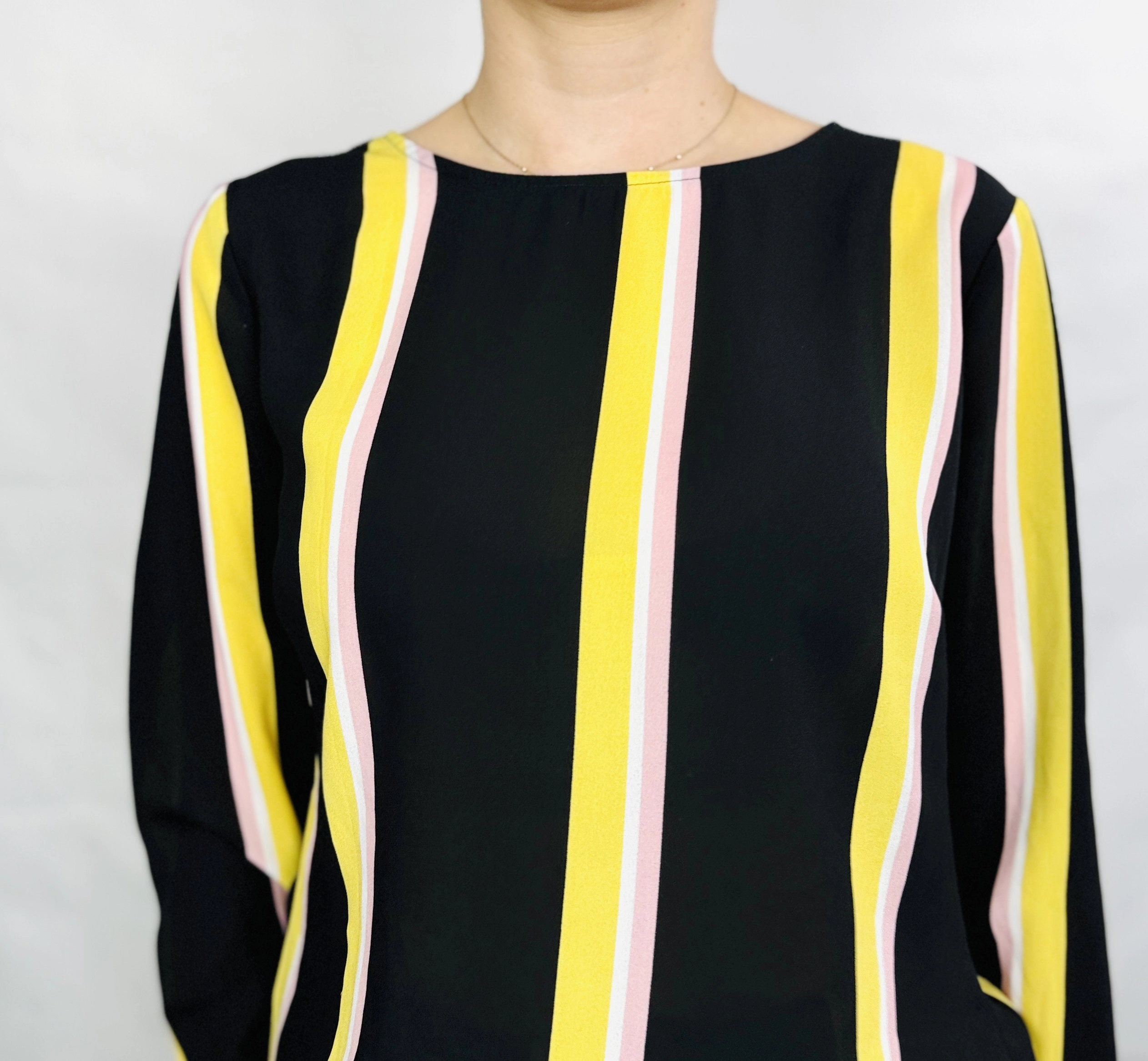 Czarna bluzka w żółte i różowe paski M 38