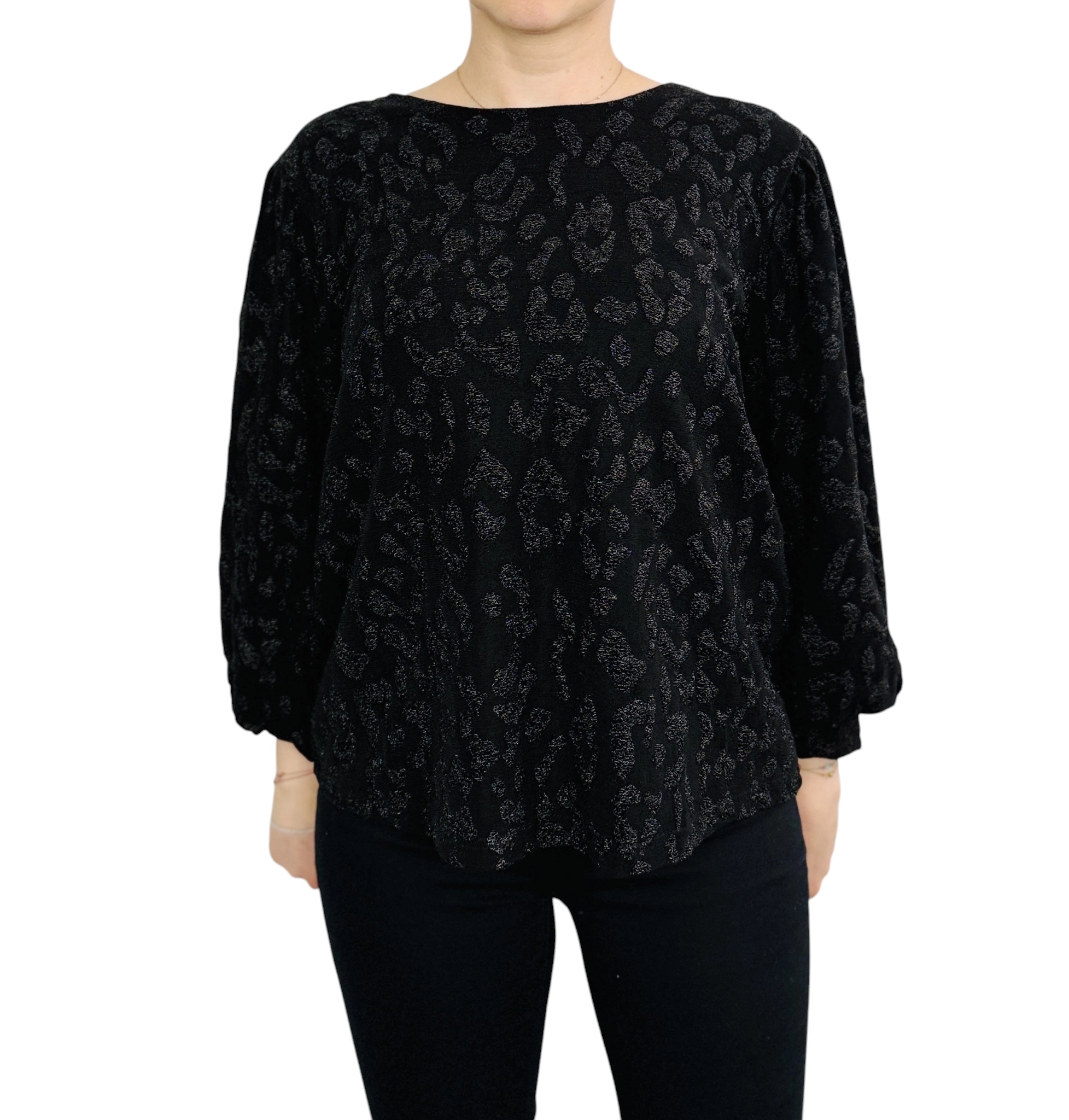 Czarna bluzka z brokatowym wzorem L 40