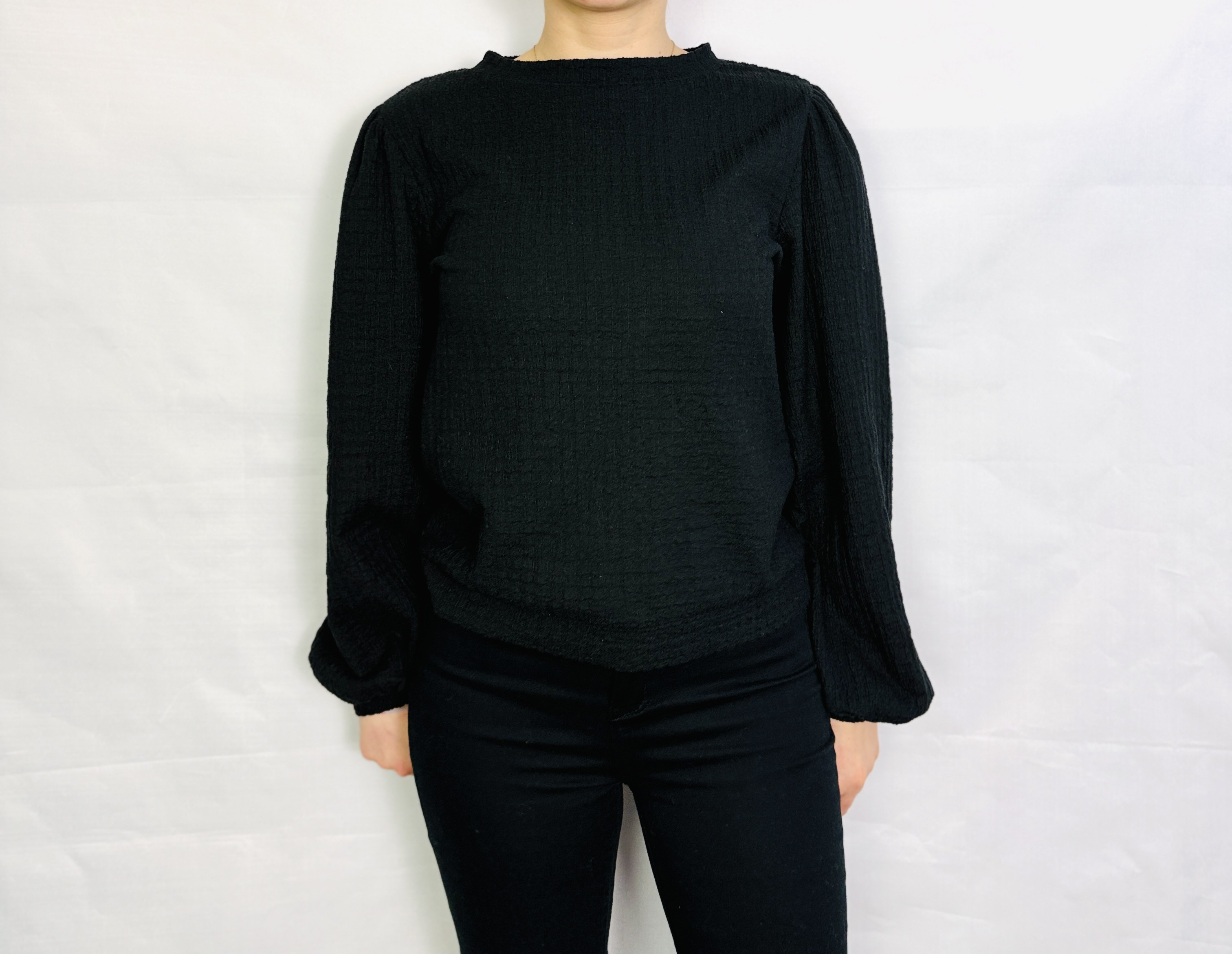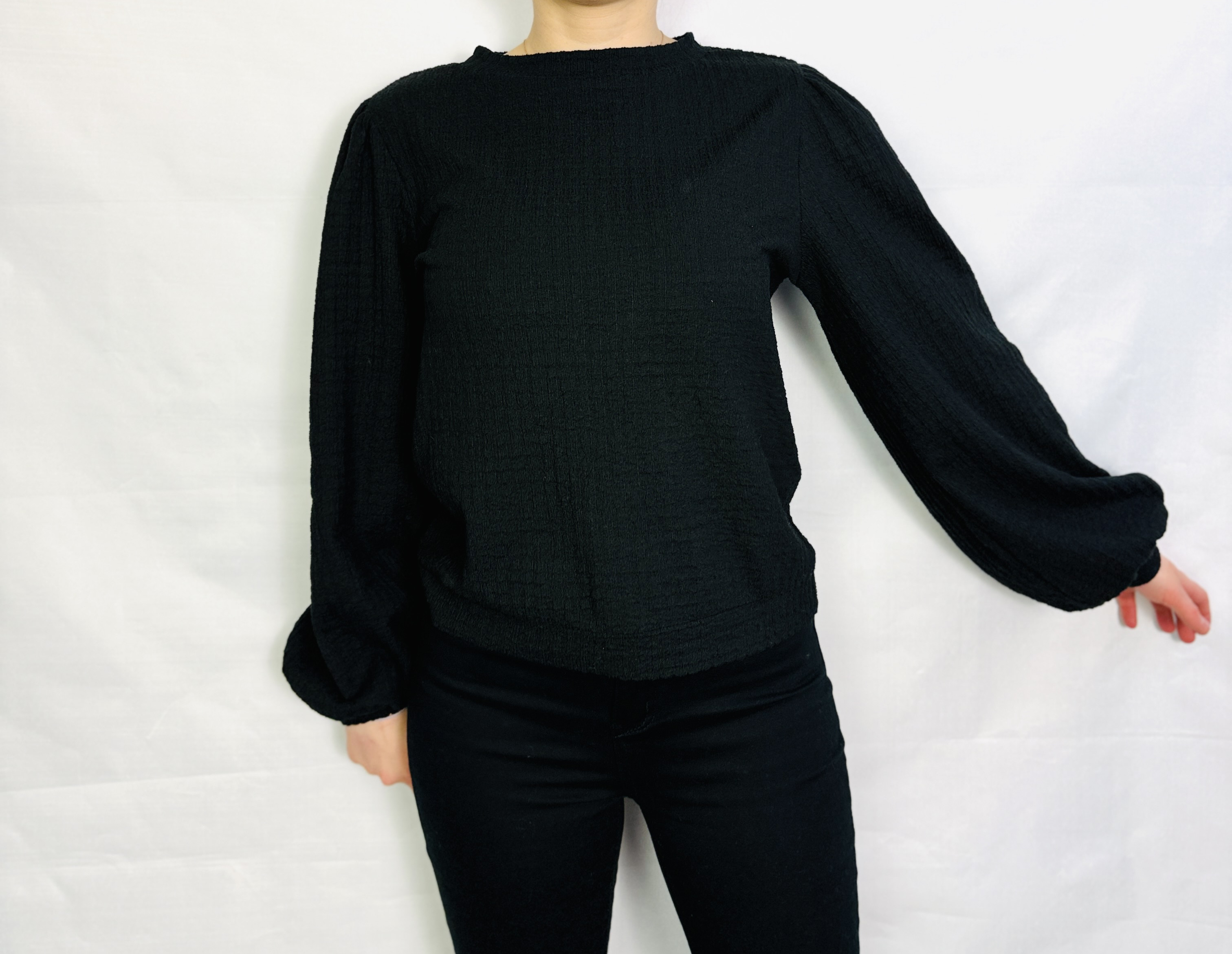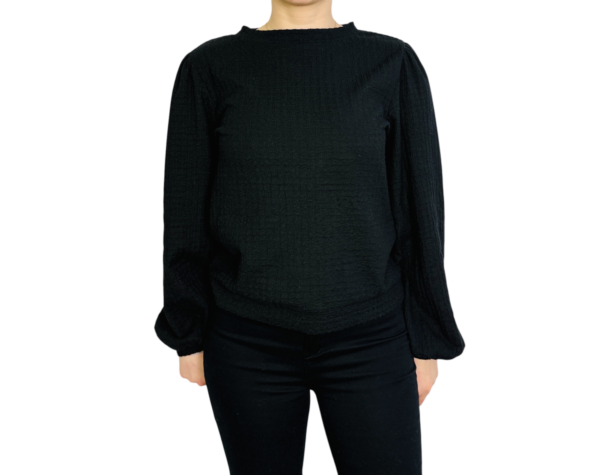 Czarna bluzka z bufiastymi rękawami XS 34