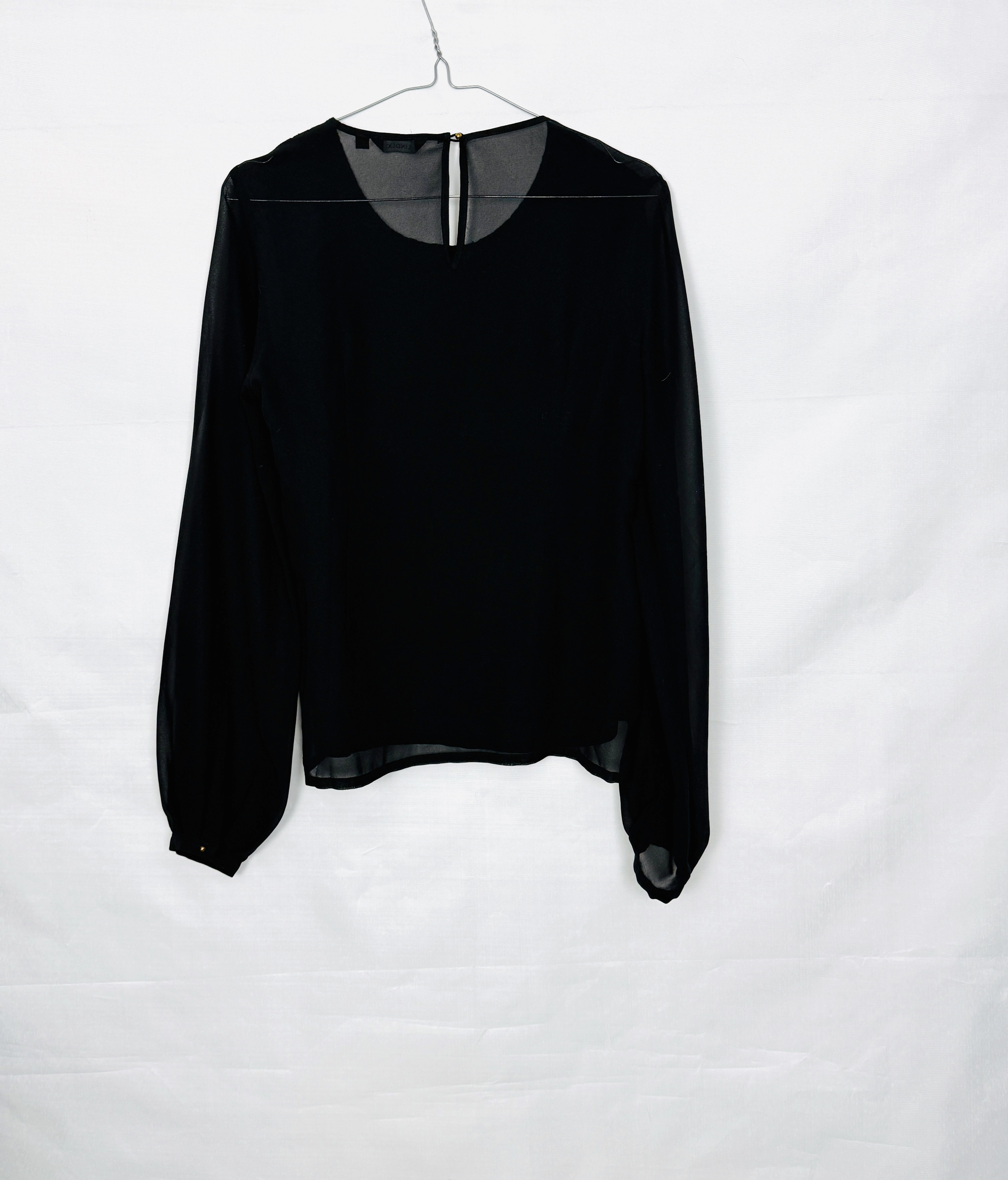 Czarna bluzka z koronkowym przodem i szyfonem S 36