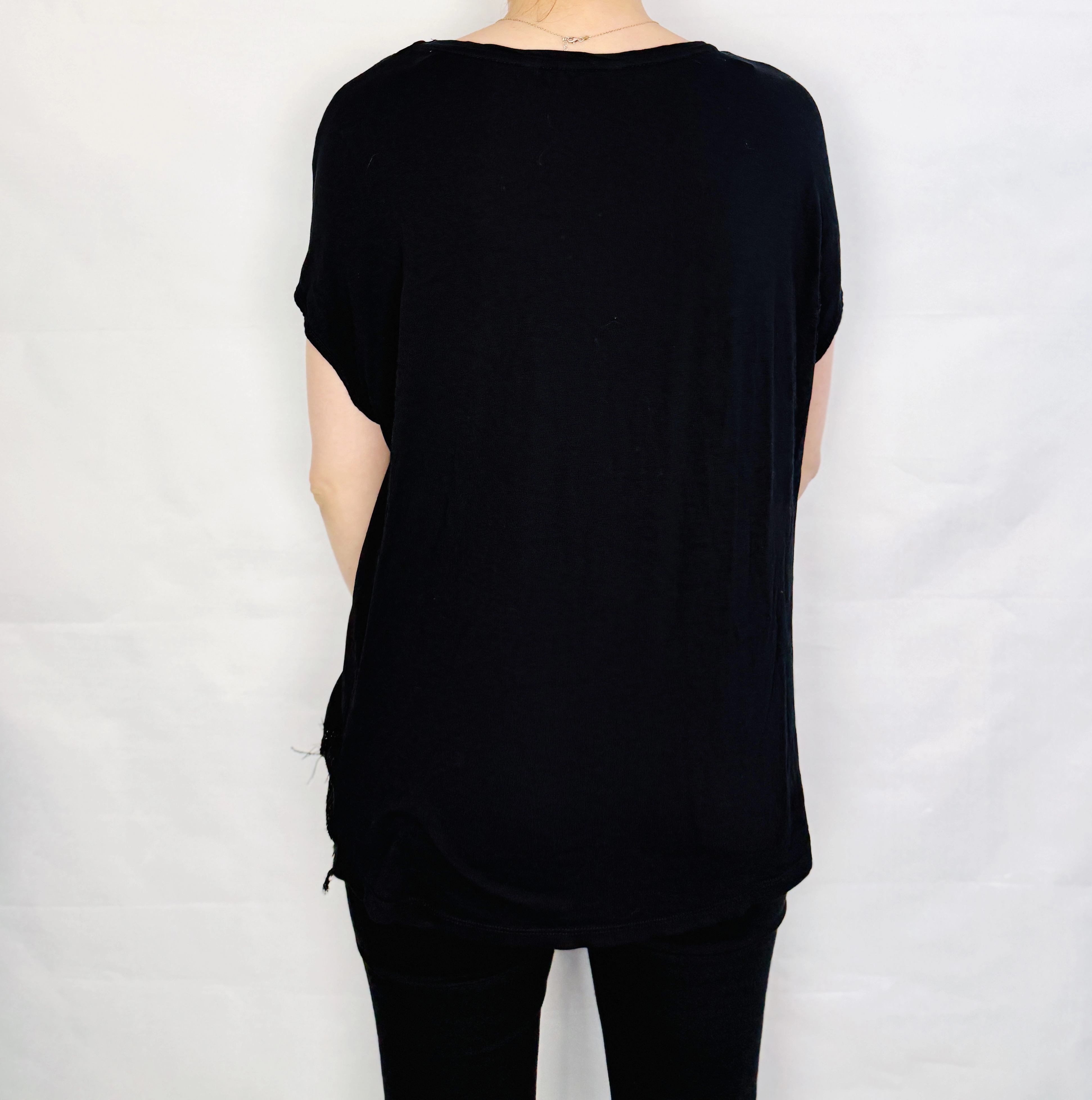 Czarna bluzka z ozdobnym, połyskującym dołem L/XL 40/42