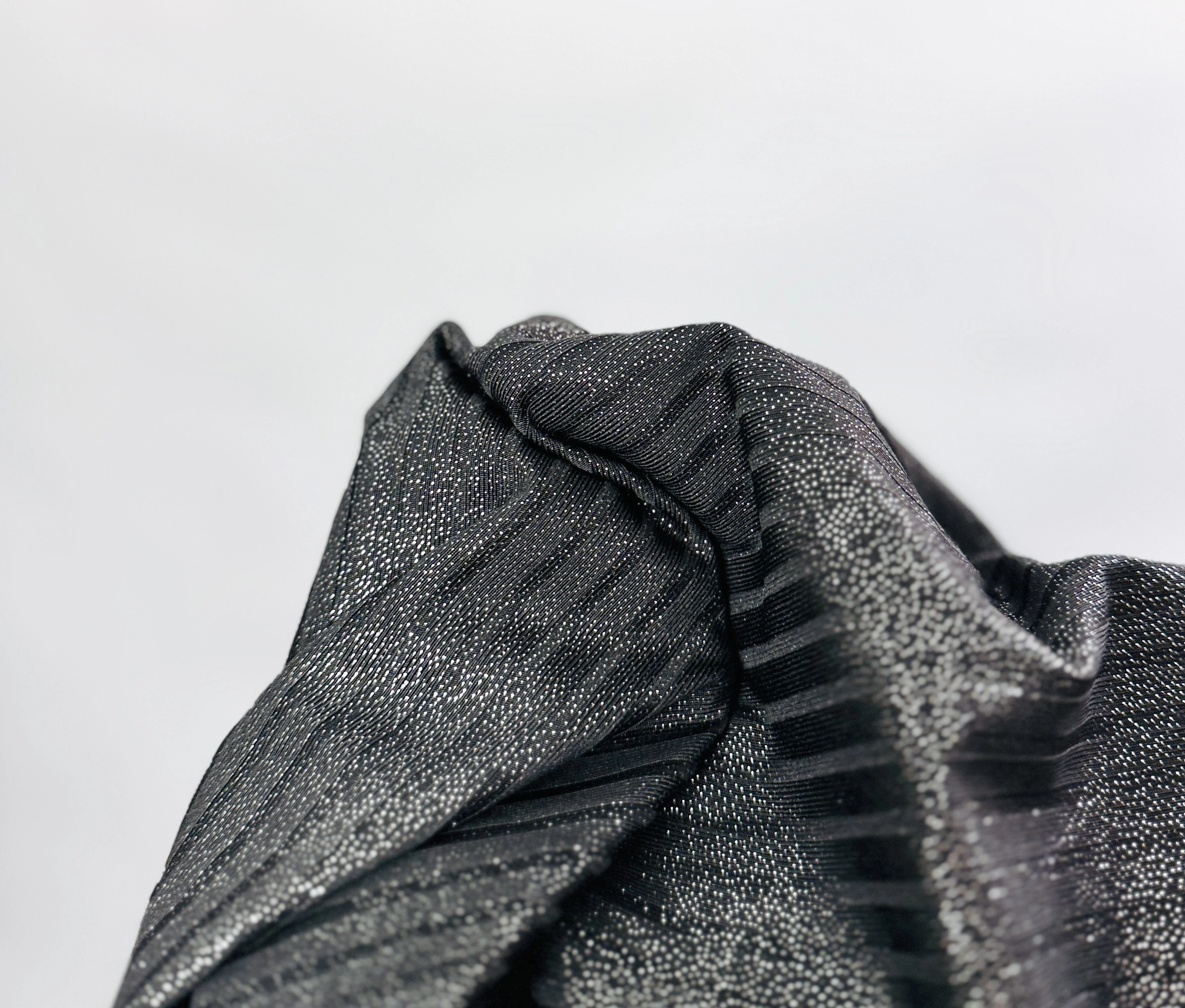 Ta czarna brokatowa bluzka to kwintesencja wieczorowej elegancji połączonej z nowoczesnym, subtelnym blaskiem, który przyciąga spojrzenia i dodaje stylizacji wyjątkowego charakteru. Głęboka czerń tkaniny została wzbogacona delikatnym, mieniącym się brokatem, który nadaje całości luksusowego wykończenia, idealnego na specjalne okazje, wieczorne wyjścia czy eleganckie spotkania. To ubranie, które łączy w sobie klasykę z nutą zmysłowości i wyrafinowania.