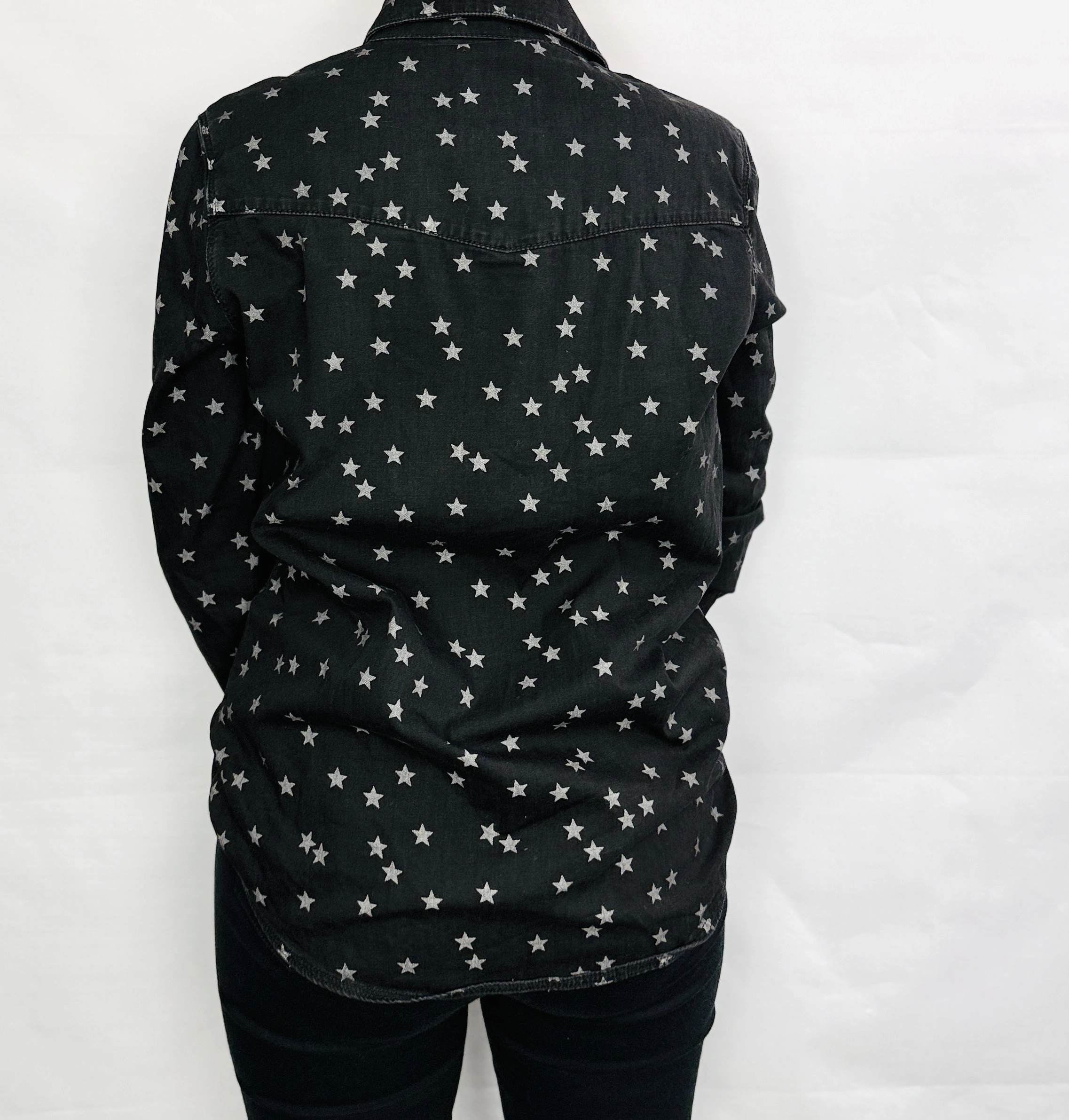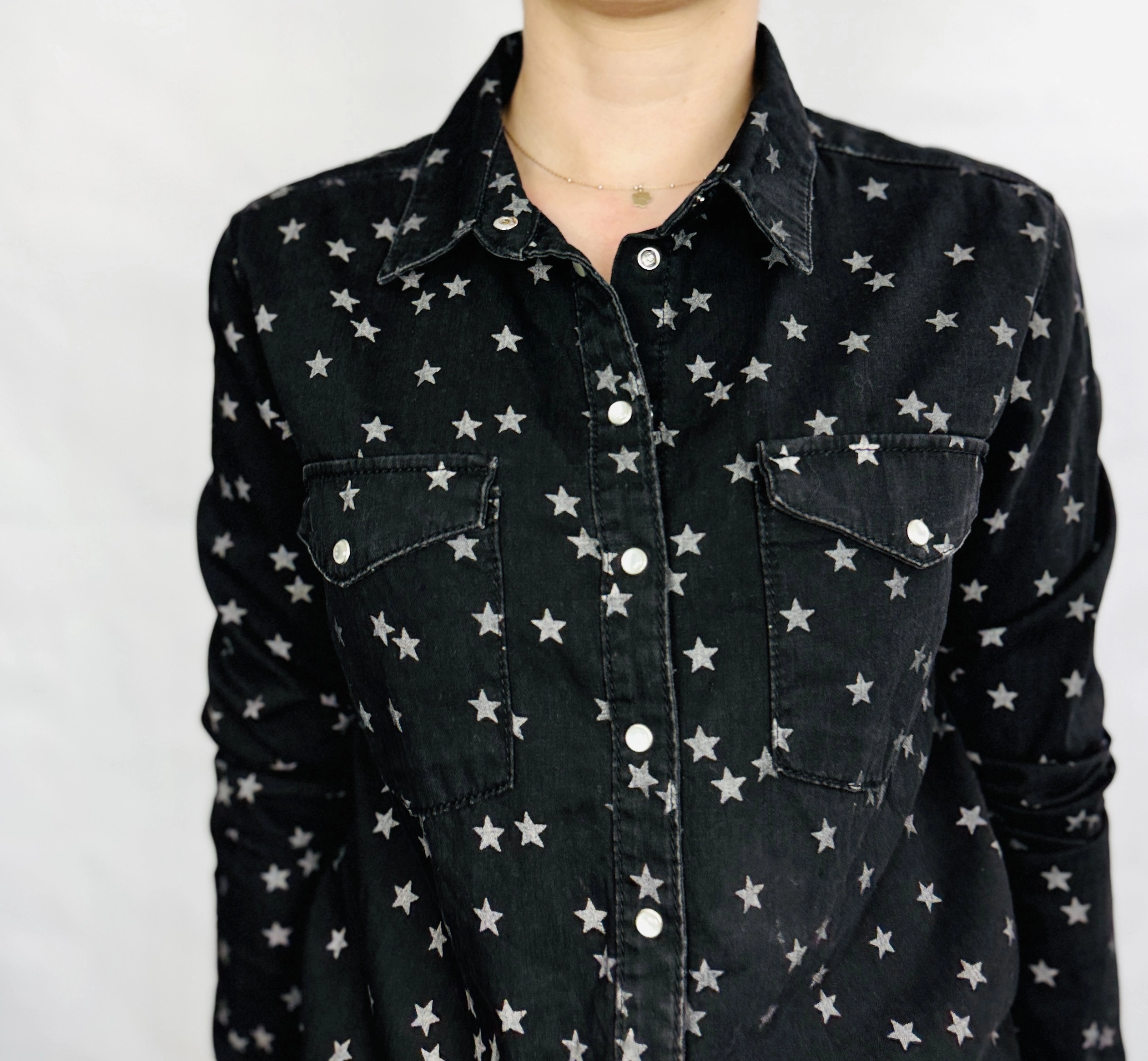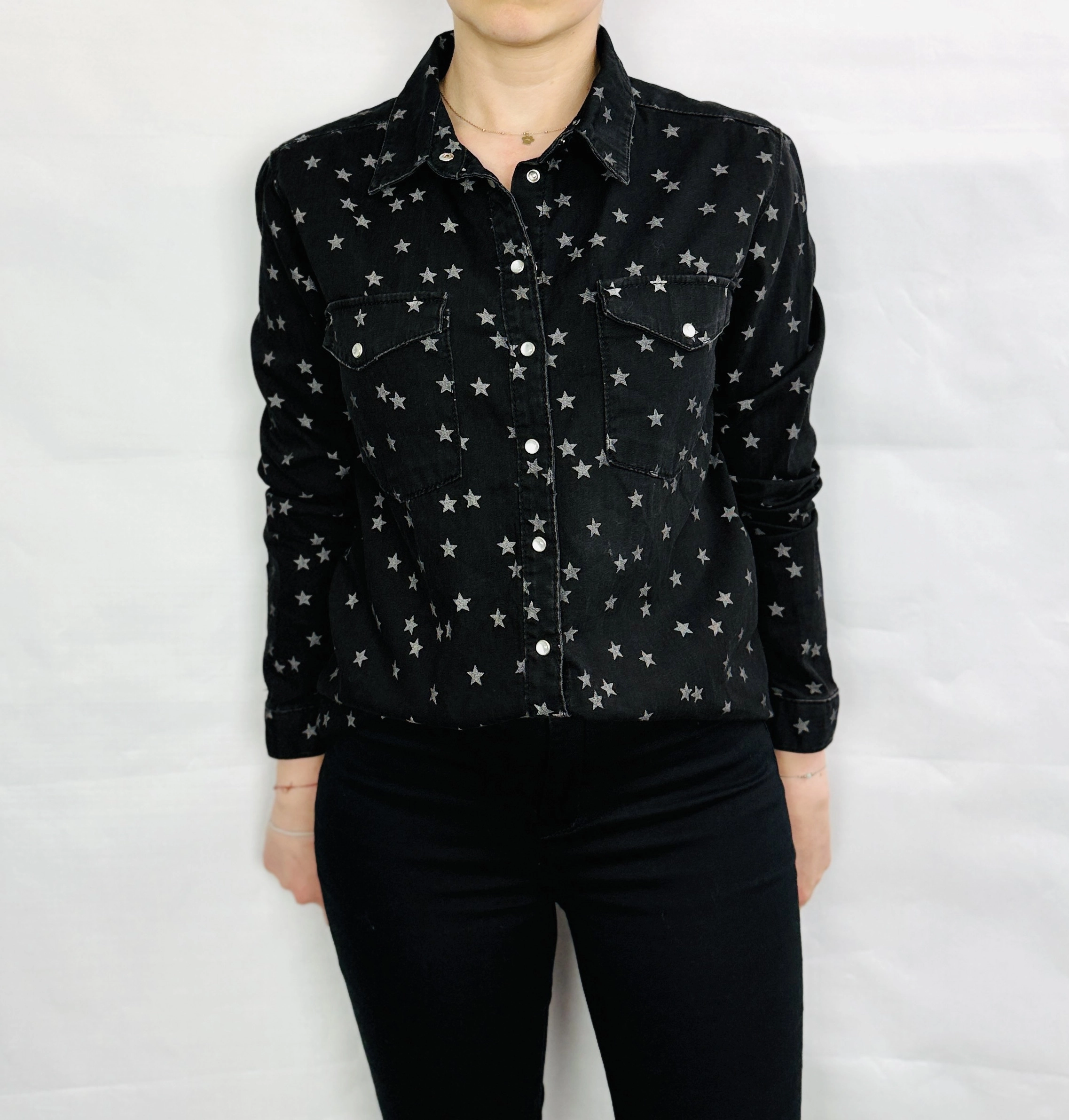 Czarna koszula w gwiazdki z kieszeniami XS 34