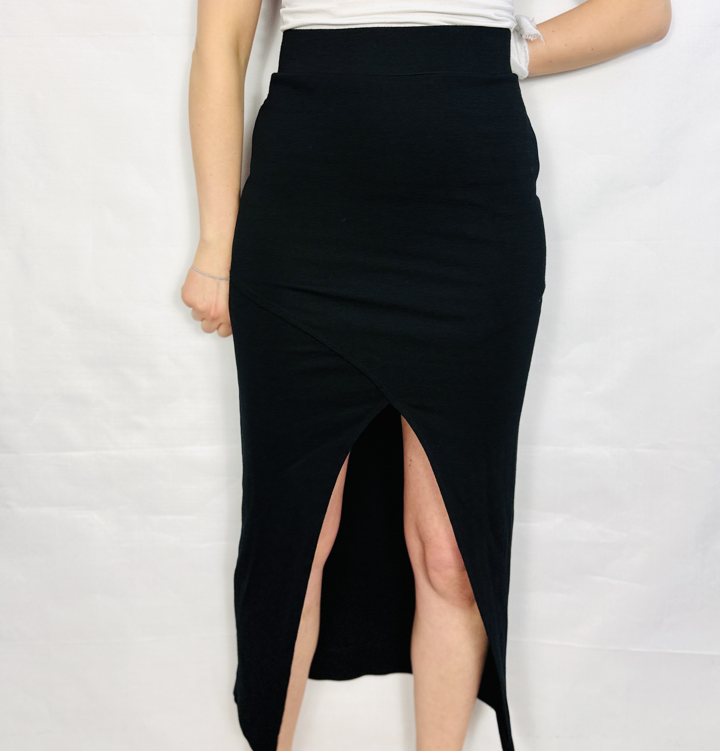 Czarna ołówkowa spódnica z rozcięciem M 38