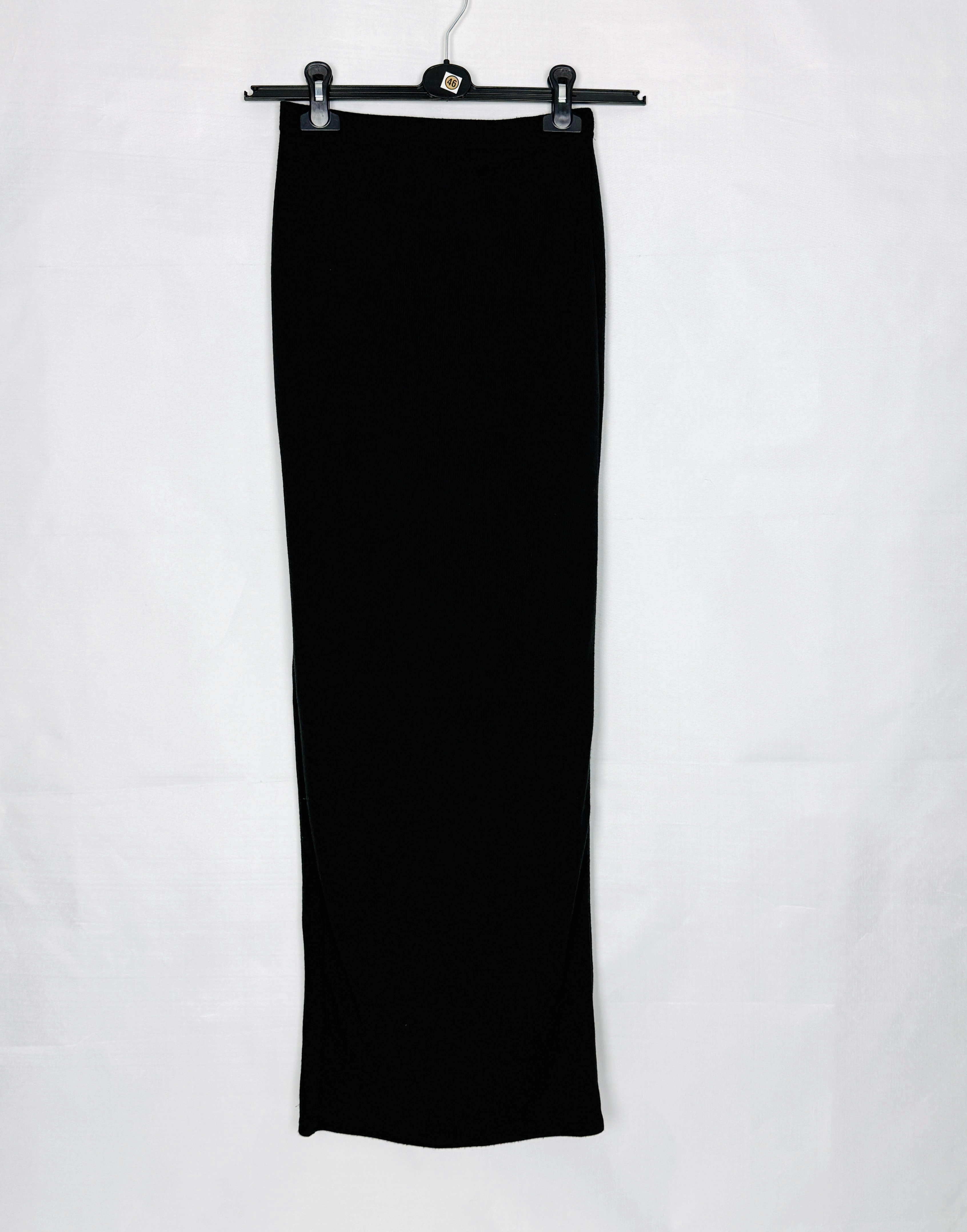 Ta czarna spódnica maxi zachwyca swoją prostotą i zmysłową elegancją, która nigdy nie wychodzi z mody. To model, który łączy minimalistyczny charakter z kobiecą subtelnością, tworząc bazę stylizacji zarówno na co dzień, jak i na bardziej wyjątkowe okazje. Głęboka czerń nadaje jej klasy i sprawia, że prezentuje się niezwykle szykownie, niezależnie od dodatków.