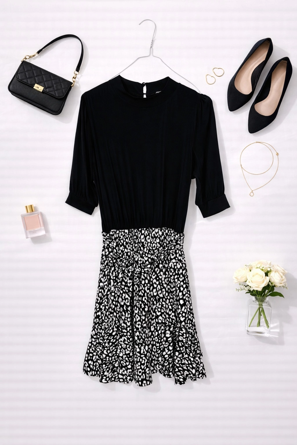Czarna sukienka z wzorzystym dołem to baza do wielu ciekawych stylizacji. Na co dzień świetnie zaprezentuje się z czarnymi botkami na słupku lub klasycznymi balerinami. Do pracy można dobrać do niej dopasowany żakiet, który podkreśli profesjonalny charakter zestawu. Na wieczorne wyjście wystarczy dodać wyraziste kolczyki i szpilki. Klasyczne zestawienie czerni i bieli daje ogromne pole do popisu w kwestii dodatków – sukienka będzie wyglądać doskonale z akcentami w kolorze czerwieni, złota, srebra czy intensywnego różu.
