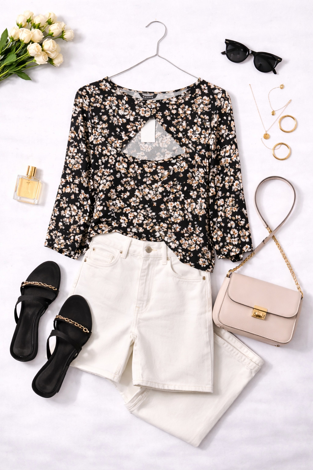 To kobieca i jednocześnie swobodna tunika, która łączy klasyczną czerń z delikatnym, subtelnym wzorem drobnych kwiatów w odcieniach bieli i beżu. Jej charakter jest lekko romantyczny, ale bez nadmiernej dekoracyjności — wzór nadaje całości świeżości i finezji, a miękko opadający fason sprawia, że tunika ma naturalny, łatwy do noszenia urok. To propozycja dla tych, które cenią połączenie wygody z eleganckim akcentem, idealna zarówno na co dzień, jak i na bardziej stylowe wyjścia.