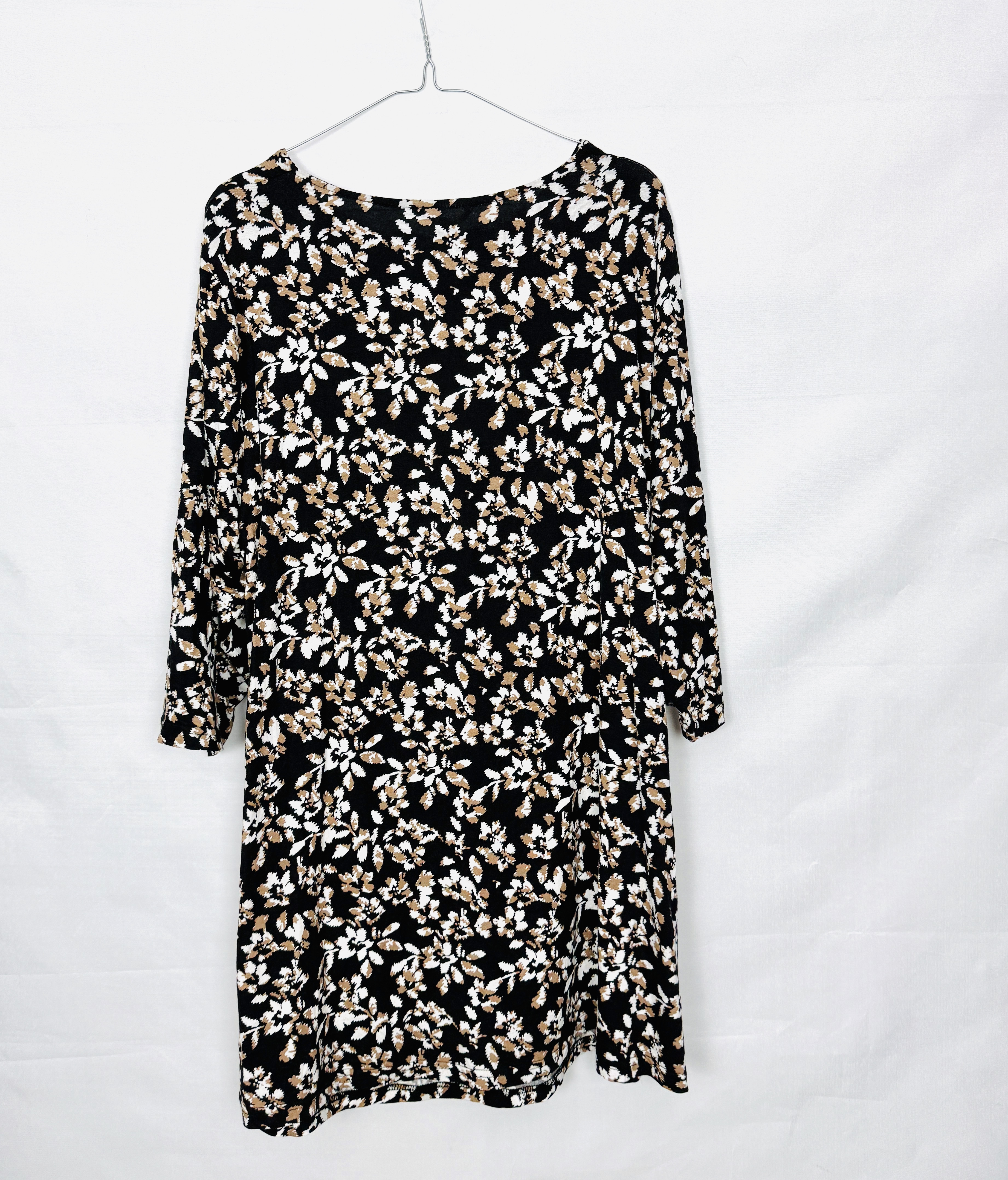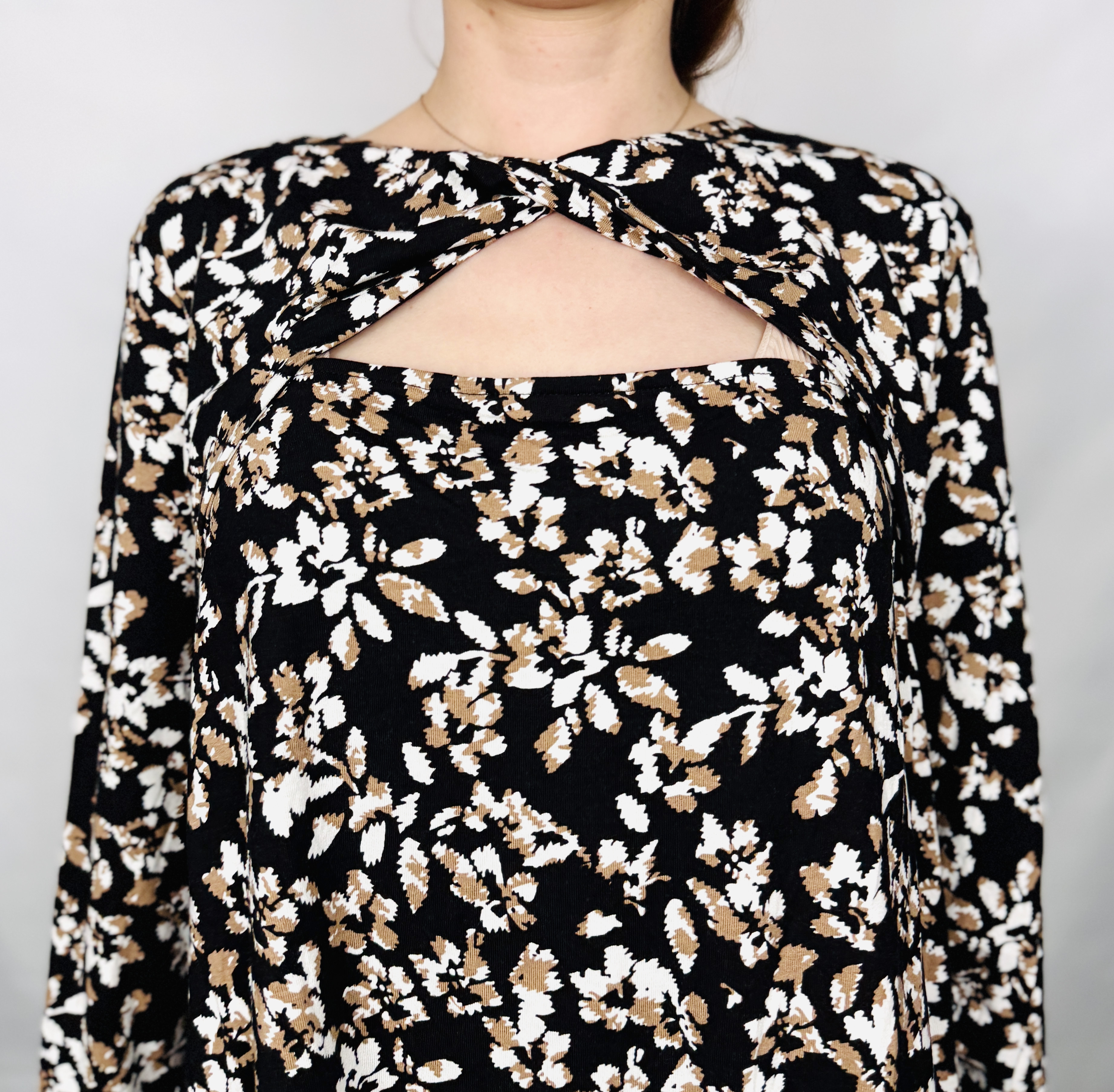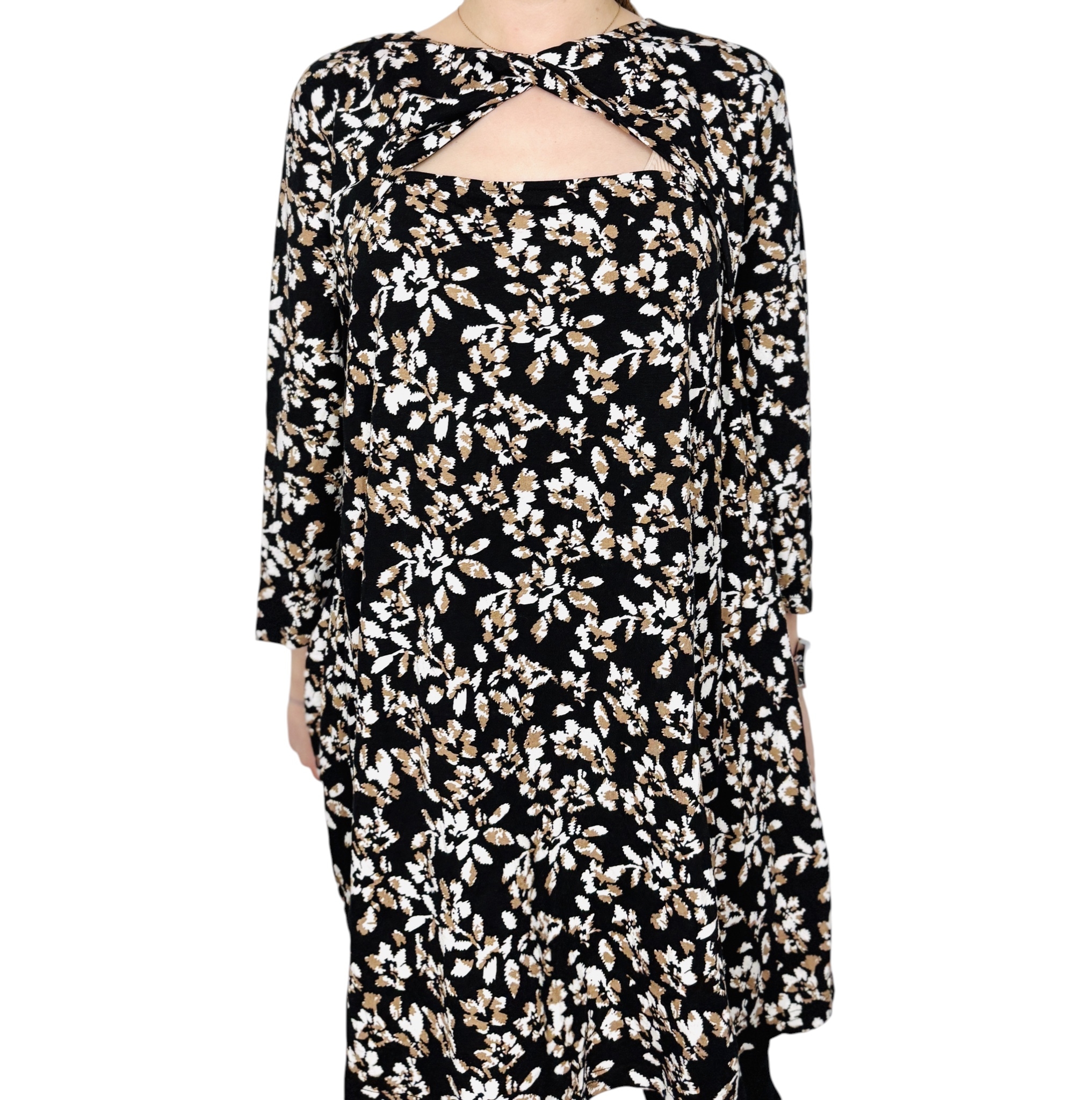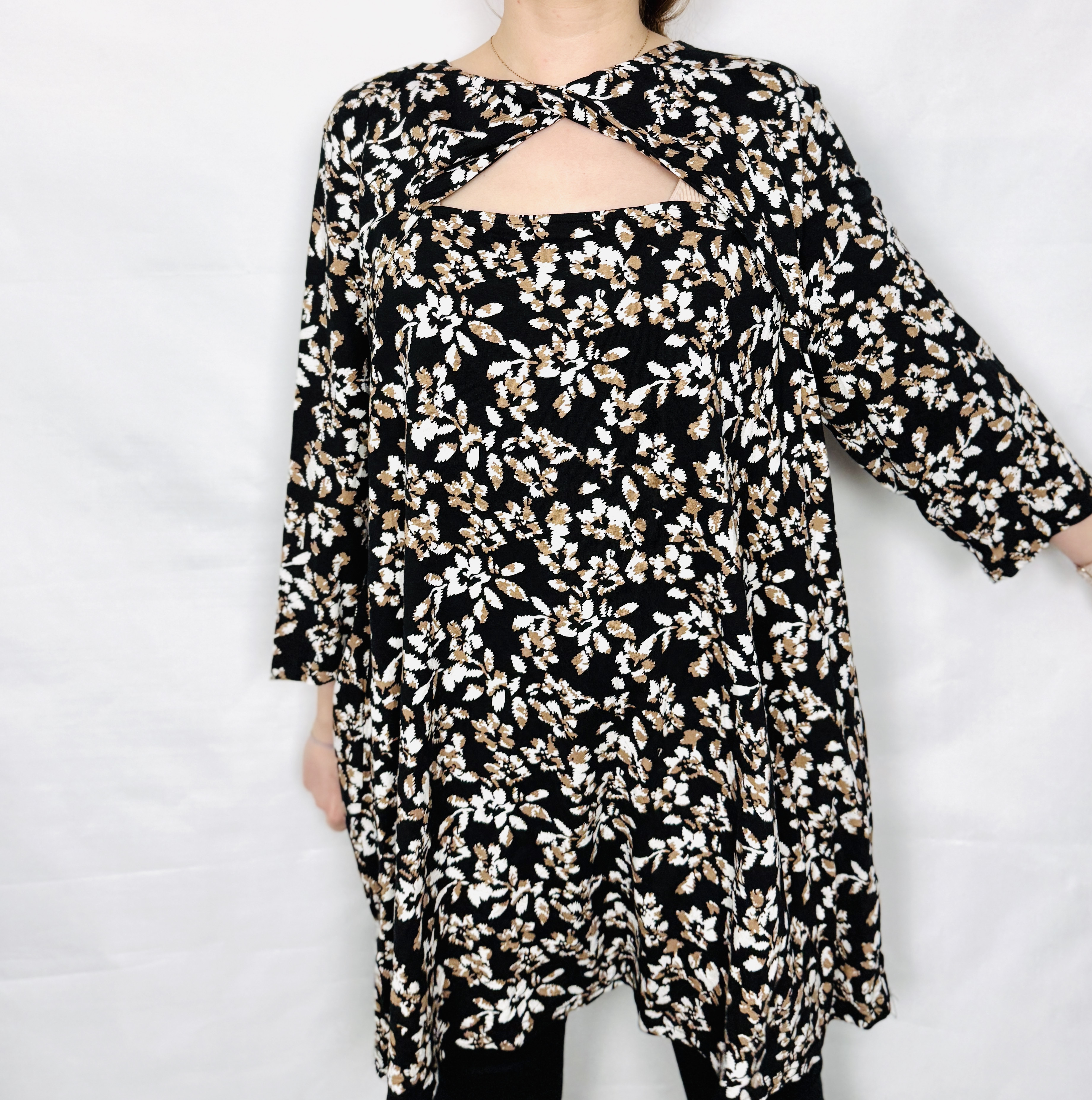 Czarna tunika w drobne kwiaty z wycięciem XL 42