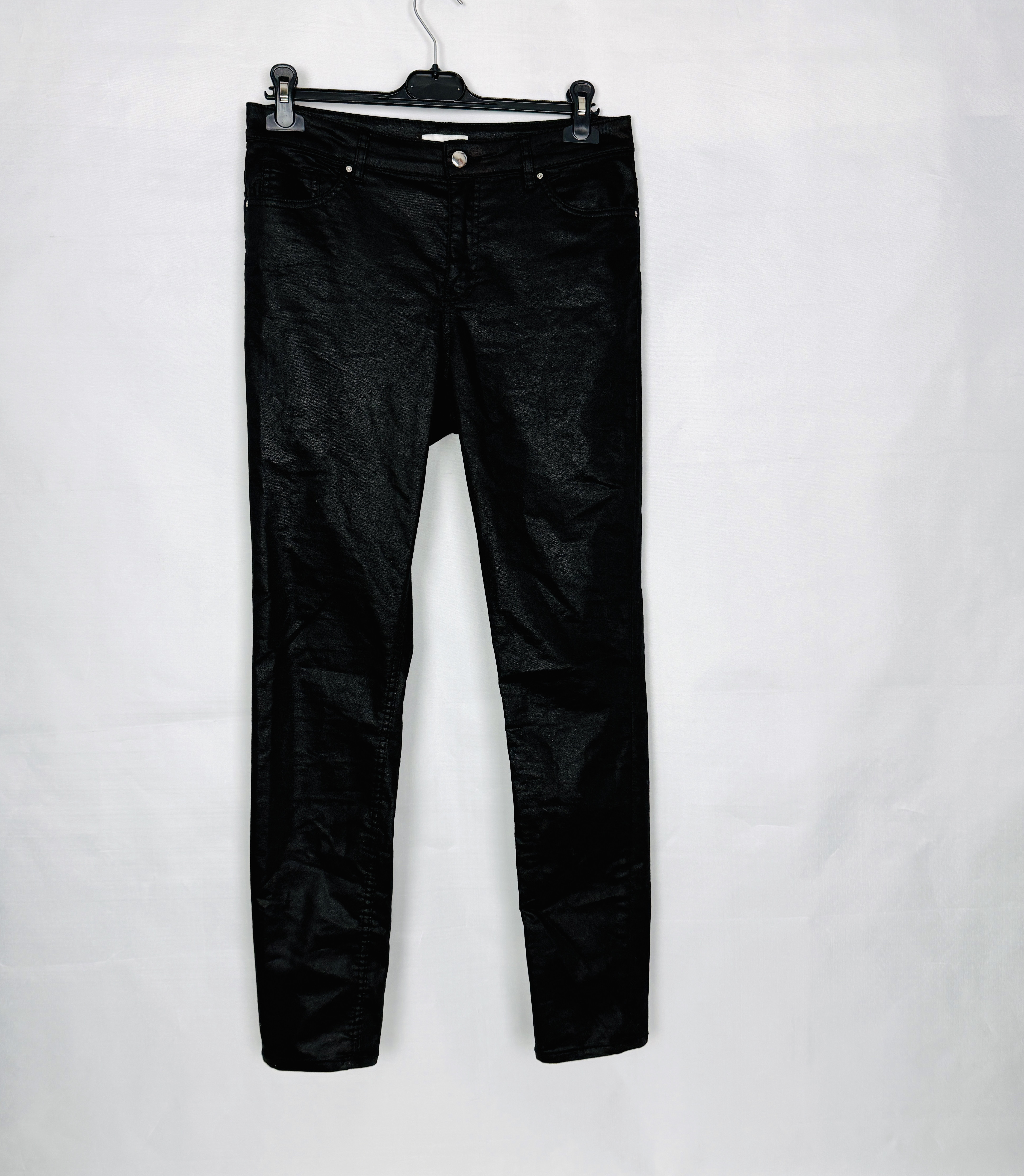 Czarne błyszczące spodnie wysoki stan L 40