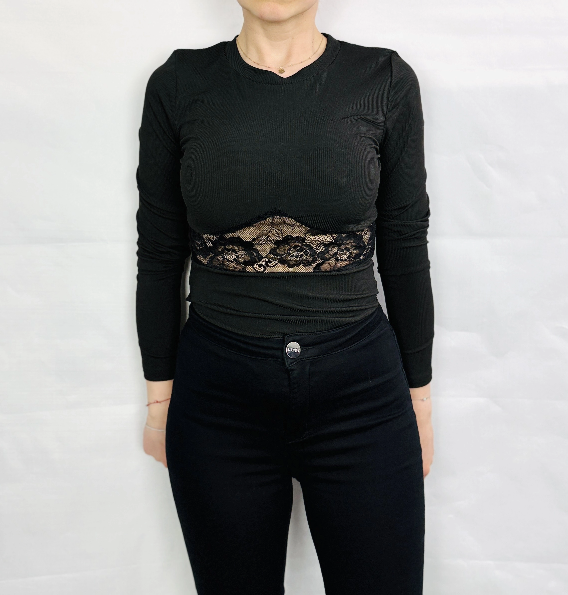 Czarne body z koronkową wstawką S 36
