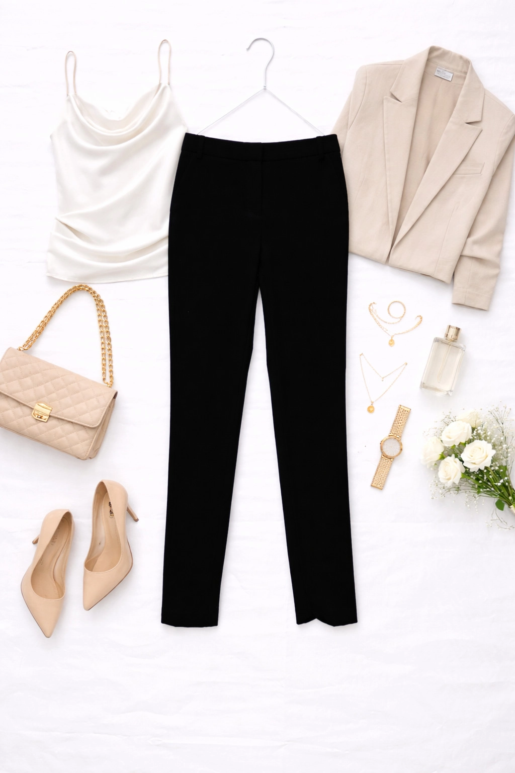 Czarne eleganckie spodnie to baza do niezliczonych stylizacji. Na co dzień można je zestawić z prostą bluzką i wygodnym obuwiem, tworząc minimalistyczny, stylowy look. Do pracy świetnie komponują się z koszulą i marynarką, podkreślając profesjonalny charakter stylizacji. Na wieczór wystarczy dobrać bardziej dopasowaną górę i szpilki, aby uzyskać elegancki, kobiecy efekt. Czerń doskonale łączy się z każdym kolorem – od bieli i beżu po intensywne barwy – co sprawia, że spodnie te są niezwykle uniwersalne i ponadczasowe.