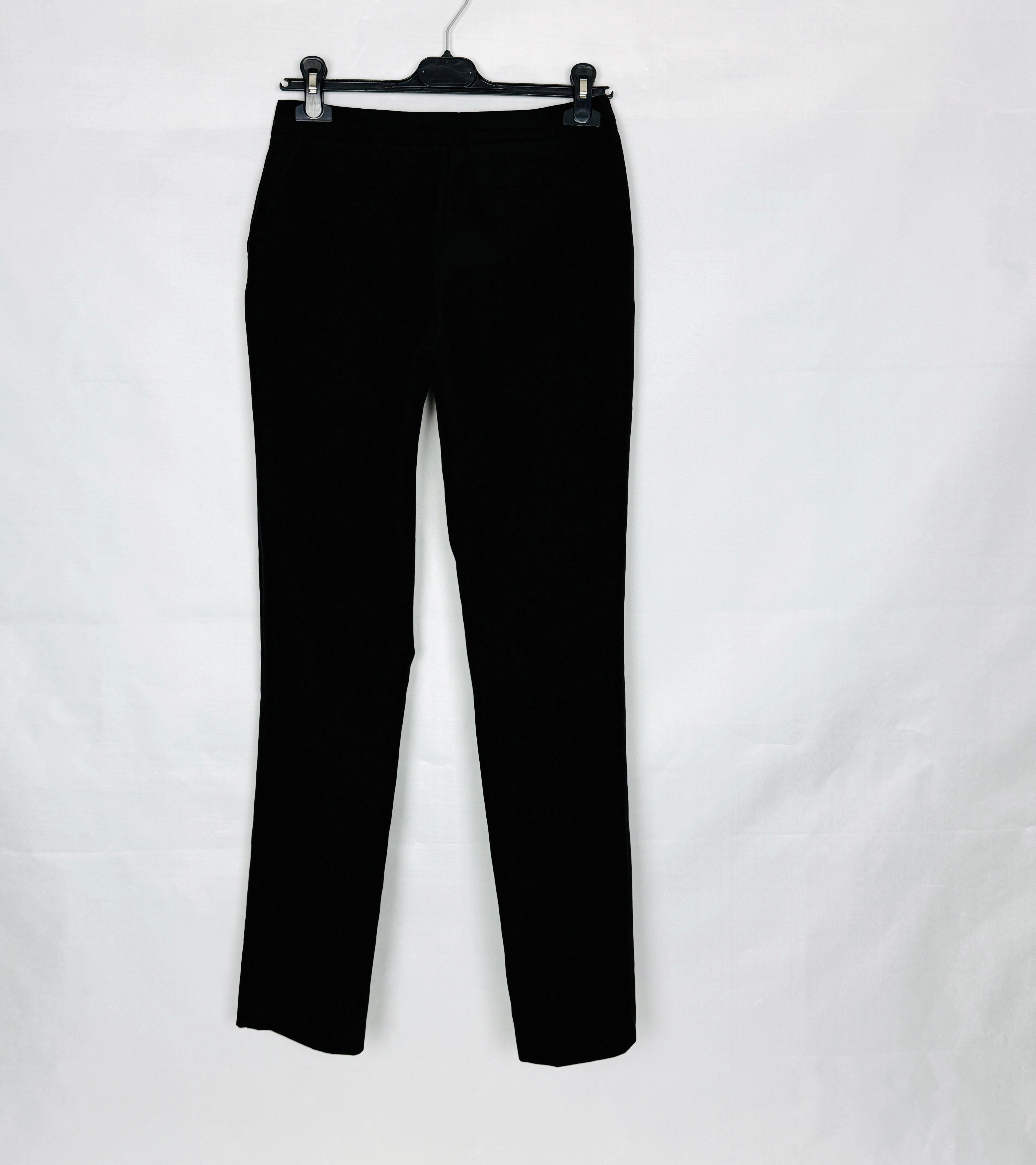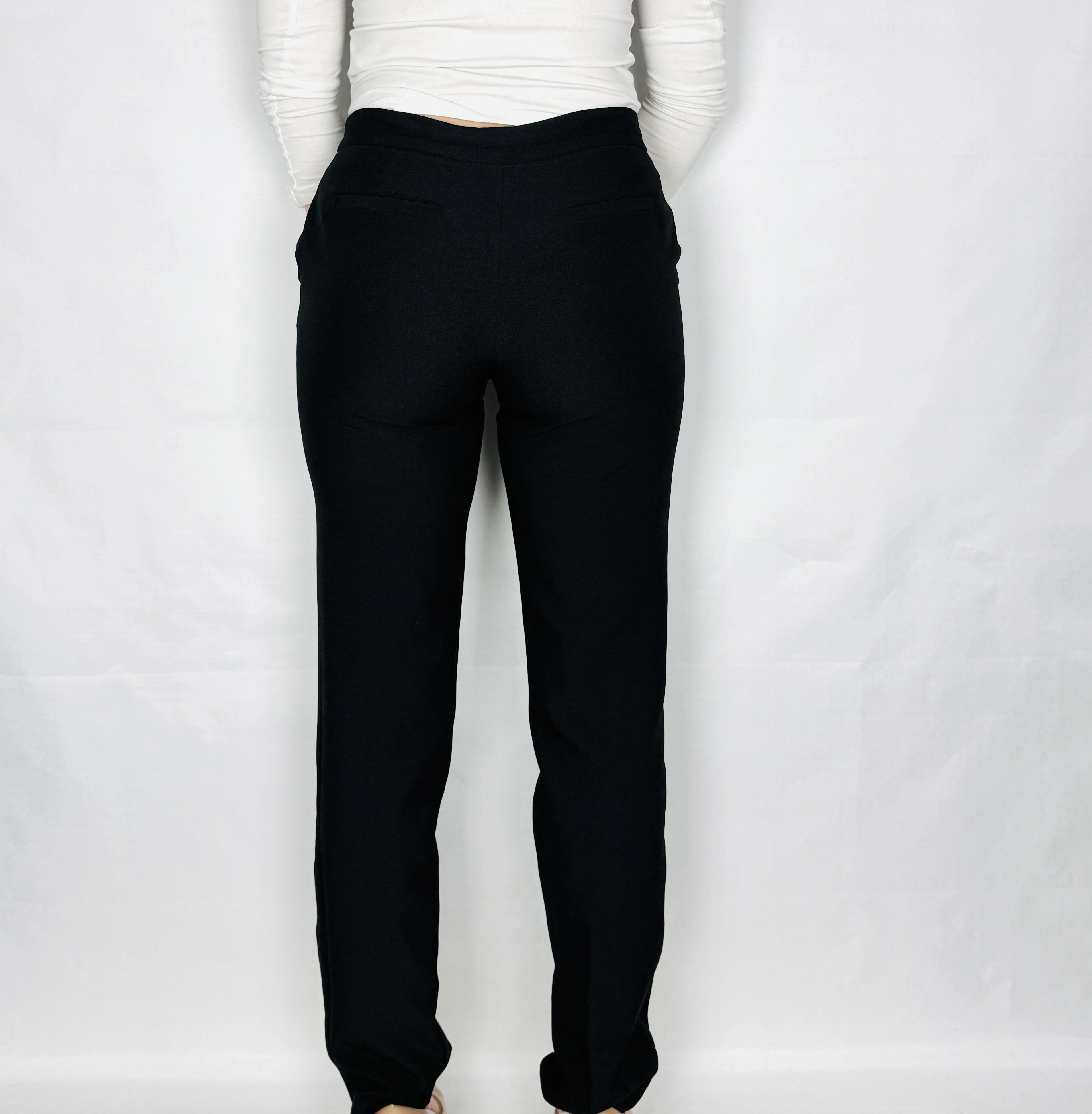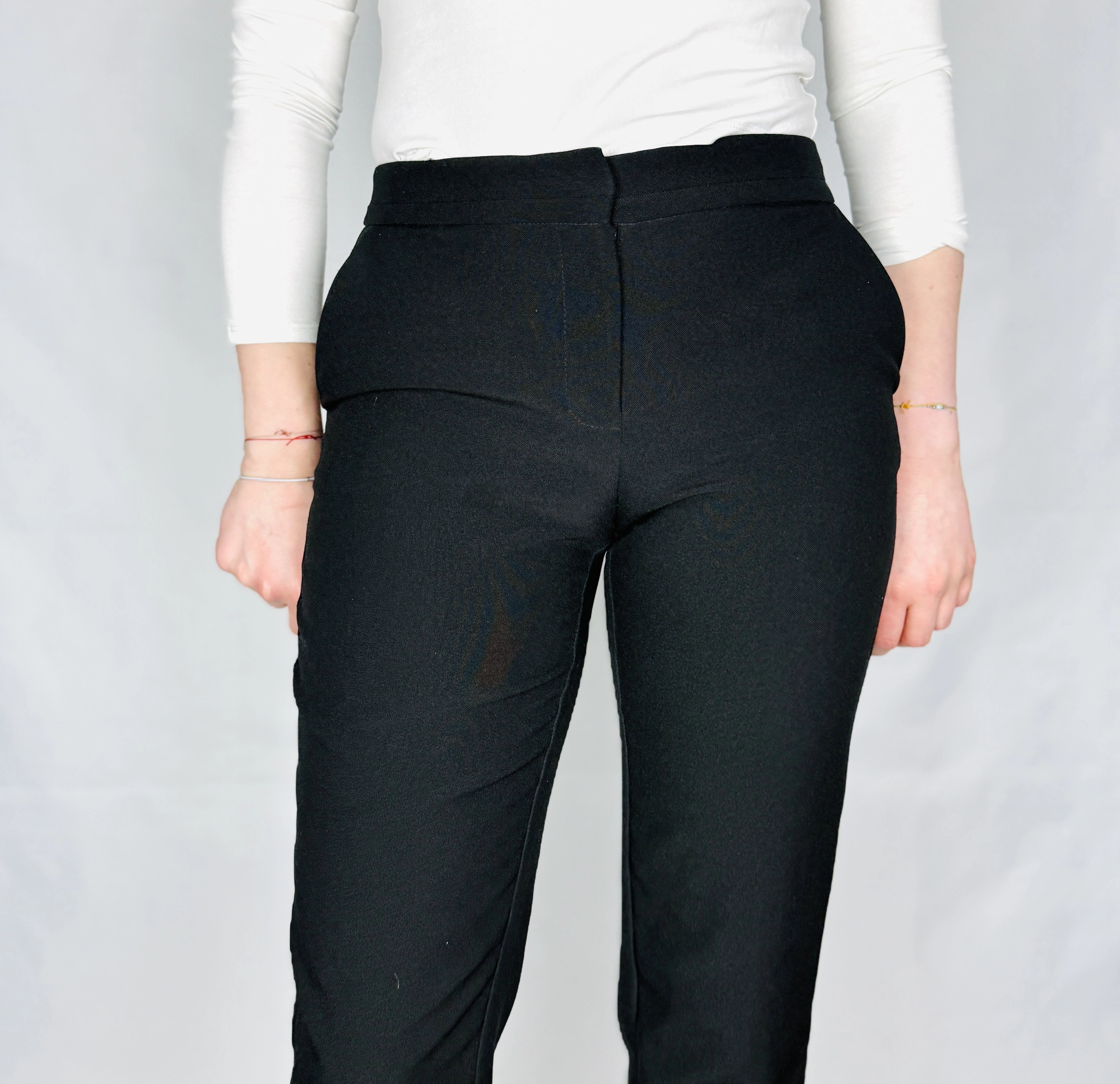 Te spodnie to esencja ponadczasowej elegancji, która zachwyca swoją prostotą i wyrafinowanym charakterem. Głęboka czerń nadaje im wyjątkowej klasy i sprawia, że stają się niezastąpioną bazą w kobiecej garderobie. To model, który z łatwością odnajduje się zarówno w formalnych stylizacjach, jak i w bardziej swobodnych zestawach, zawsze prezentując się nienagannie i stylowo. Minimalistyczna forma w połączeniu z dopracowanym krojem tworzy harmonijną całość, która podkreśla kobiecą sylwetkę bez zbędnych dodatków.