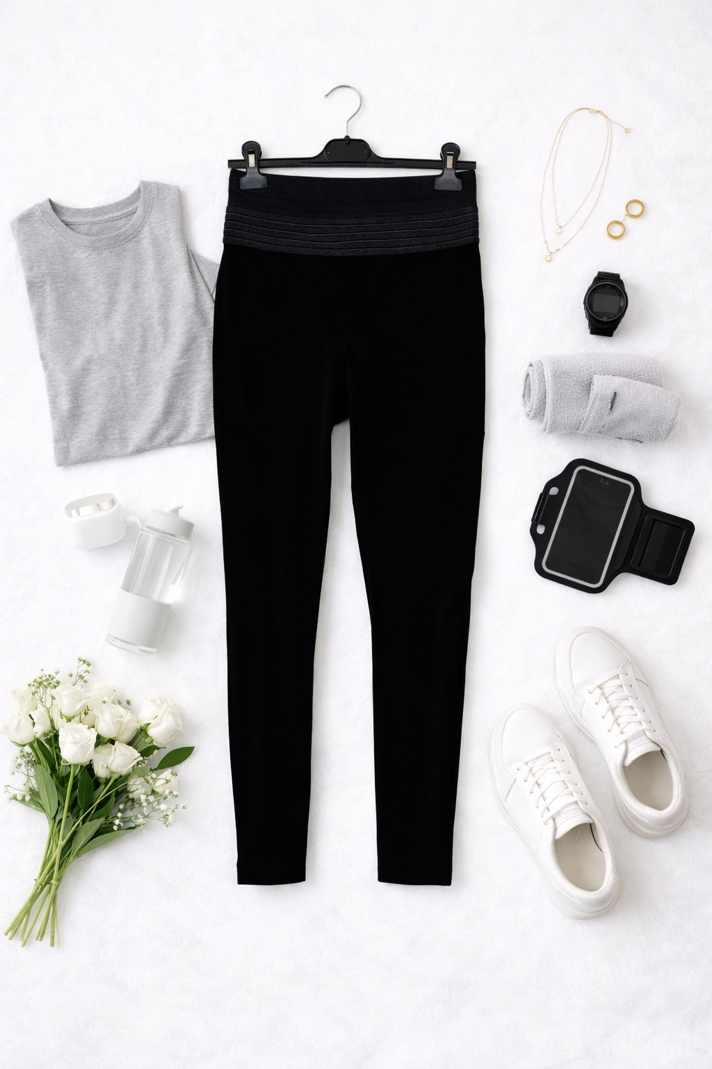 Materiał wygląda na kryjący, elastyczny i miękko otulający, o gładkiej, lekko matowej powierzchni. Dzięki temu legginsy trzymają formę, a jednocześnie zapewniają swobodę ruchu i komfort. Tkanina delikatnie modeluje ciało, wygładzając kontury i nadając sylwetce zgrabniejszy zarys, bez nadmiernego opinania. Wykończenie pasa sprawia, że talia jest subtelnie zdefiniowana, co dodaje całości estetycznego porządku.
