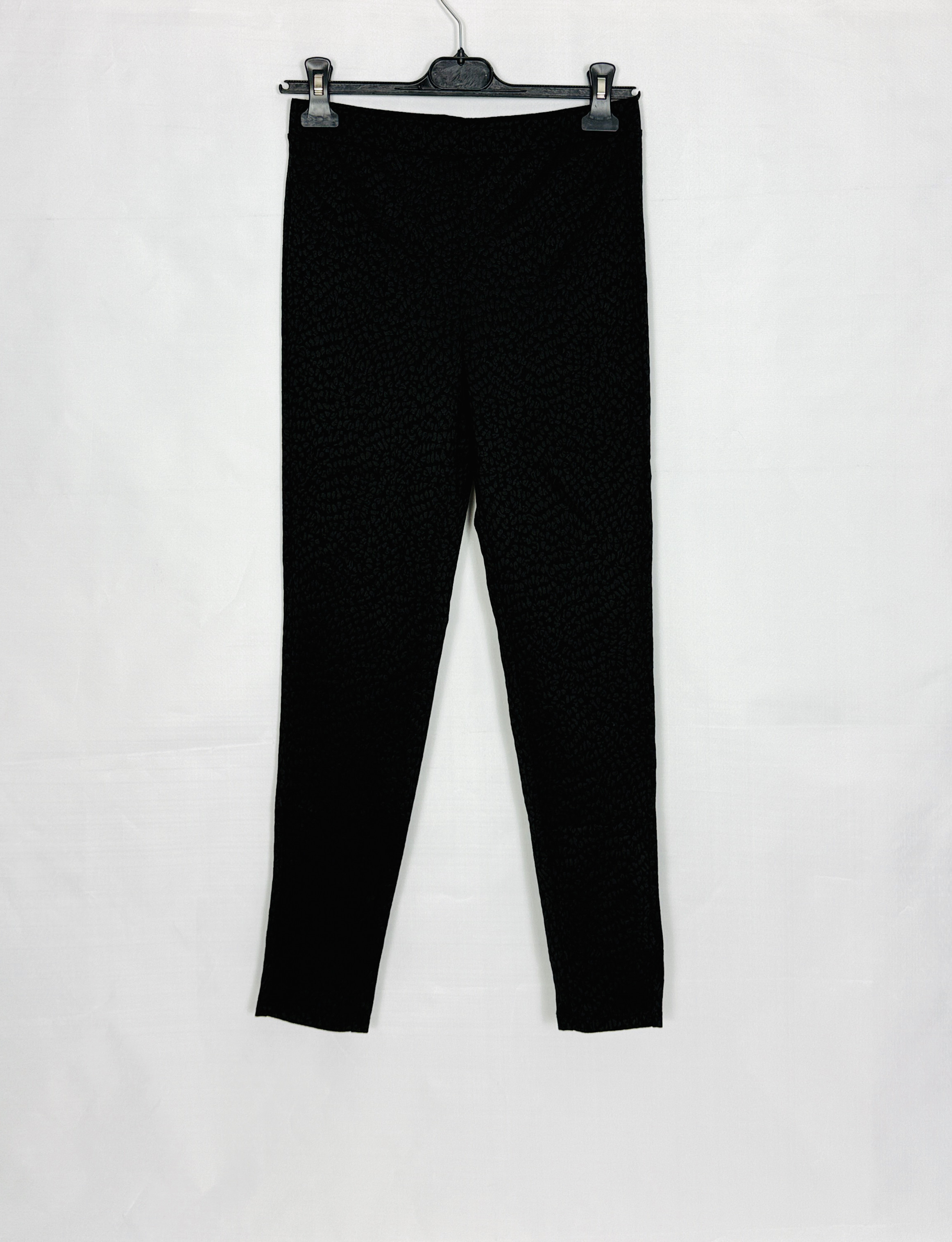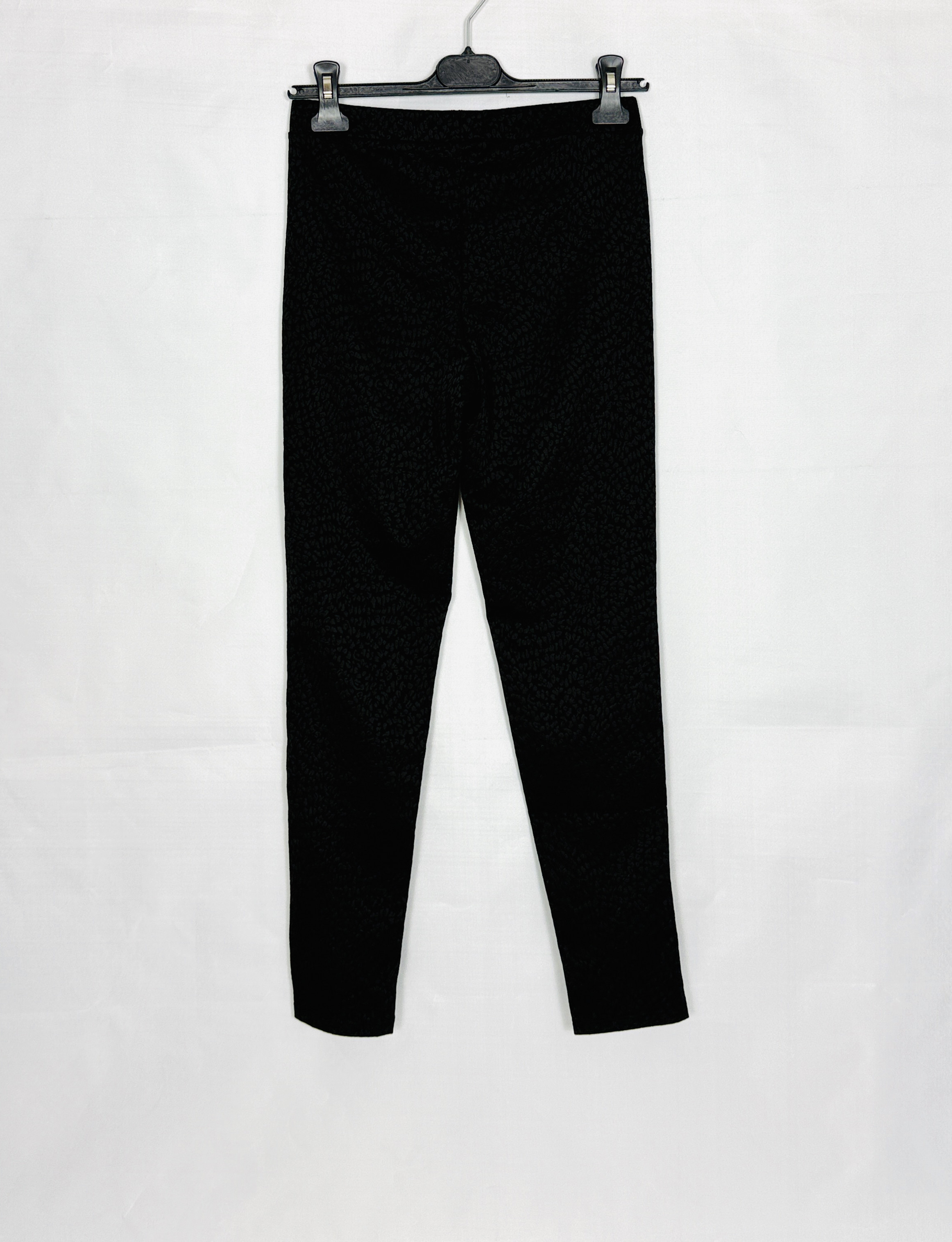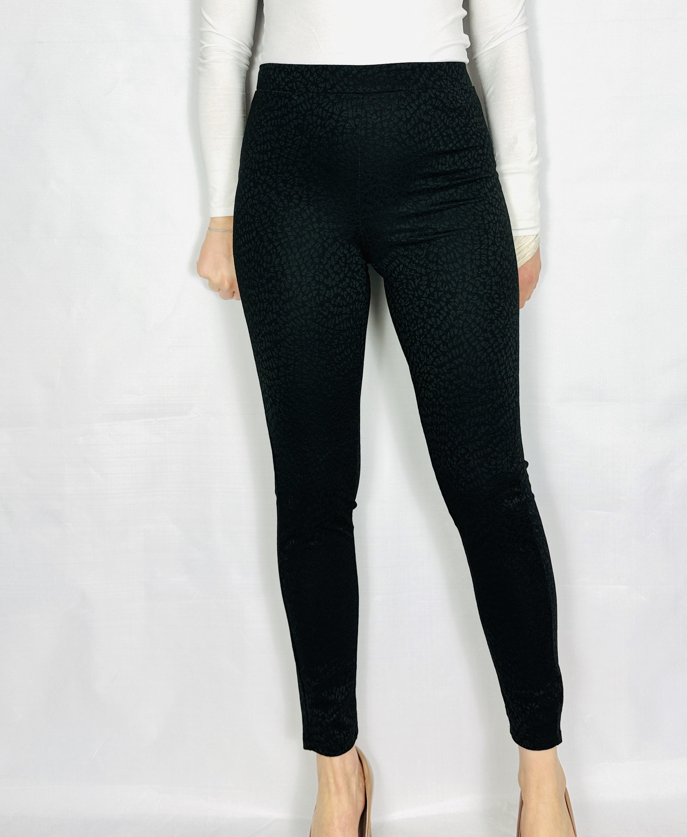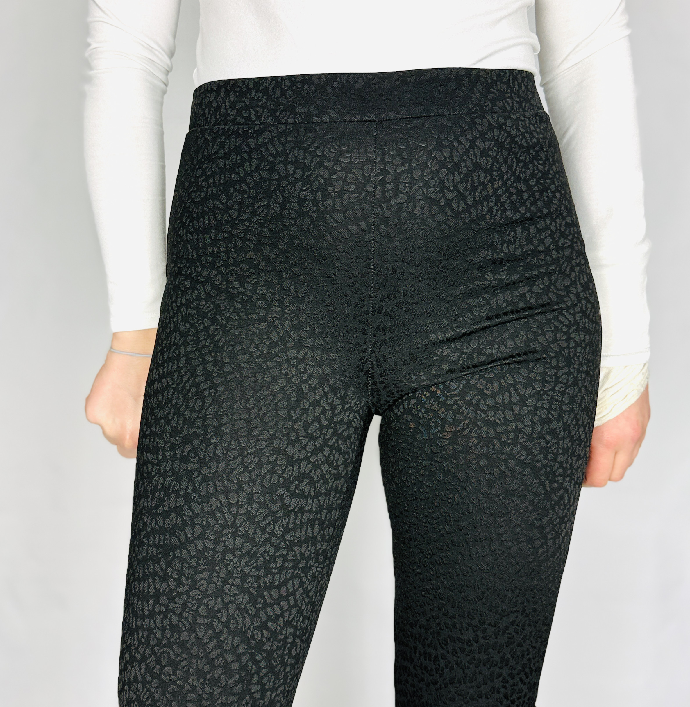 Te legginsy to połączenie dyskretnej zmysłowości i codziennej elegancji — głęboka czerń przełamana tonowymi cętkami daje efekt subtelnego drapieżnego akcentu, który nie krzyczy, a dodaje charakteru całej stylizacji. Projekt ma w sobie spokojną pewność siebie: prostota formy i jednoczesne ozdobne wykończenie sprawiają, że legginsy wyglądają kobieco i nowocześnie, idealne jako baza do wielu strojów — od miejskiego casualu po bardziej wyrafinowane, wieczorne zestawy. To model dla osoby ceniącej elegancką neutralność z subtelnym, modowym twistem.