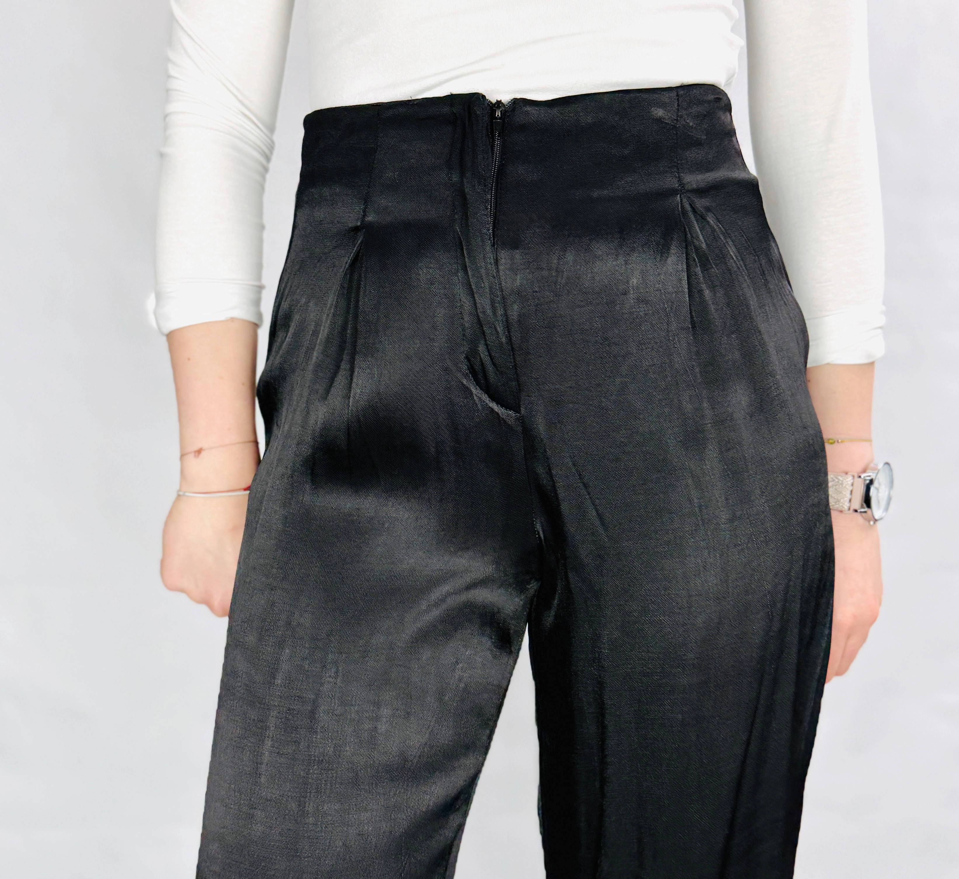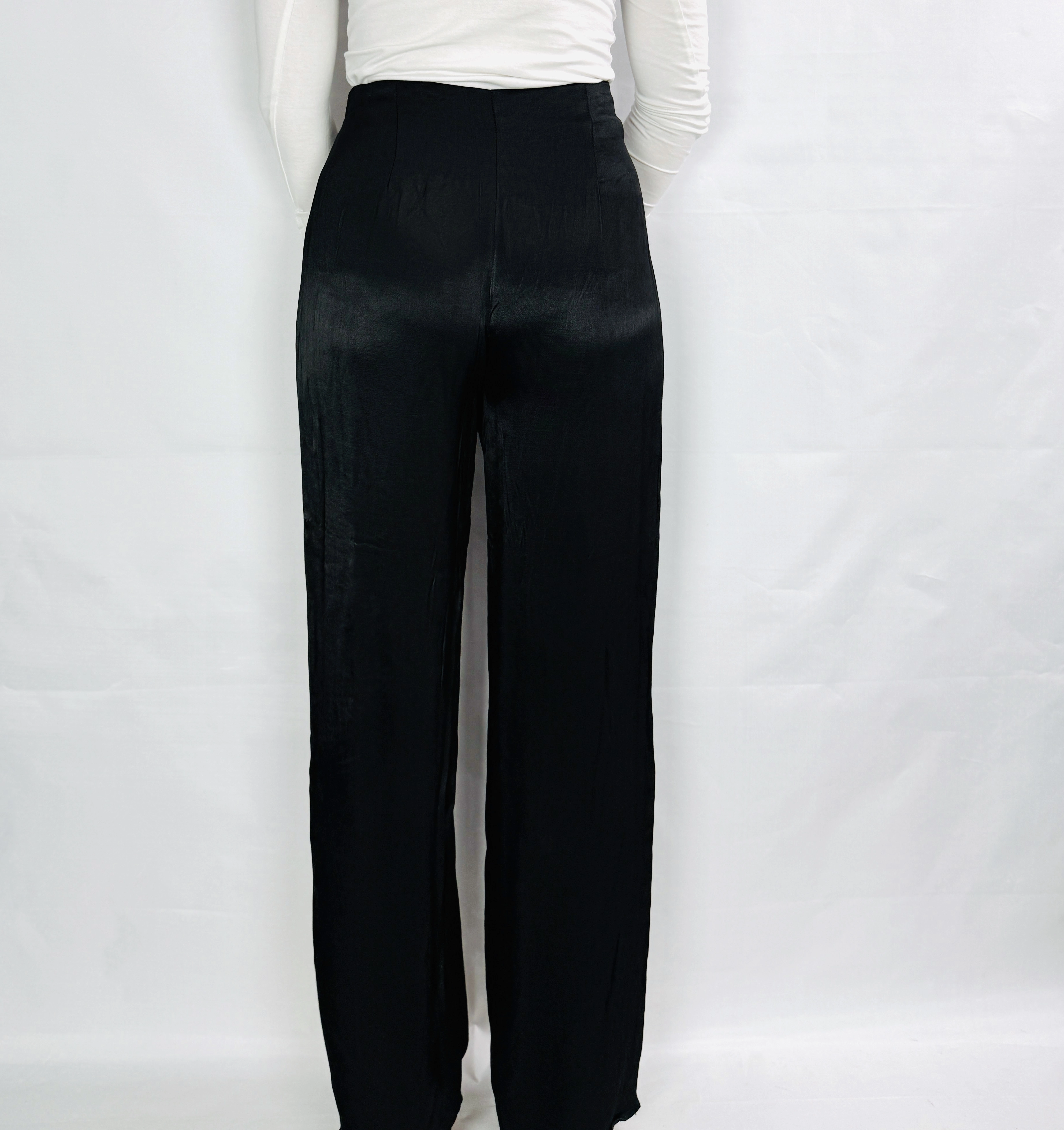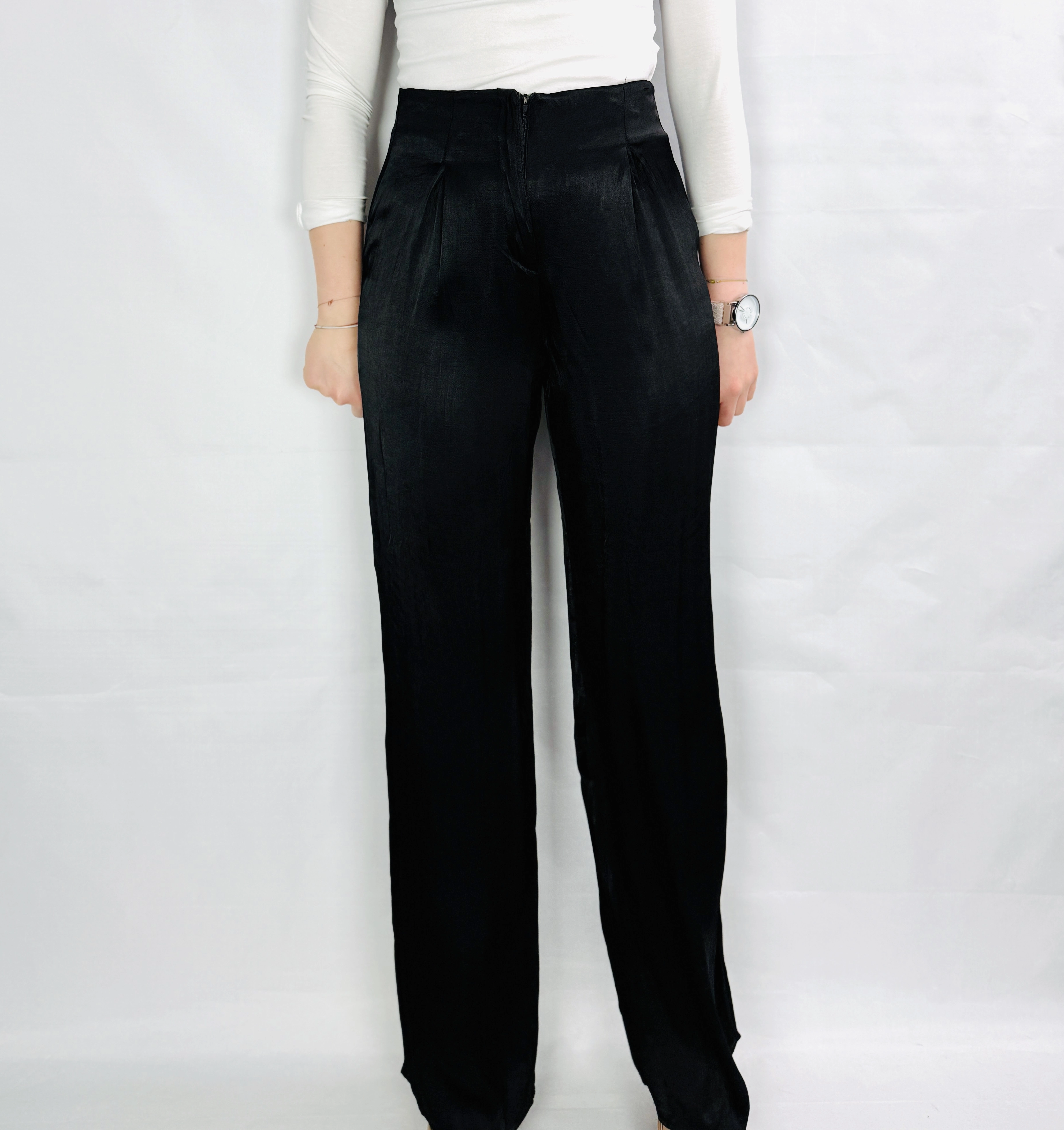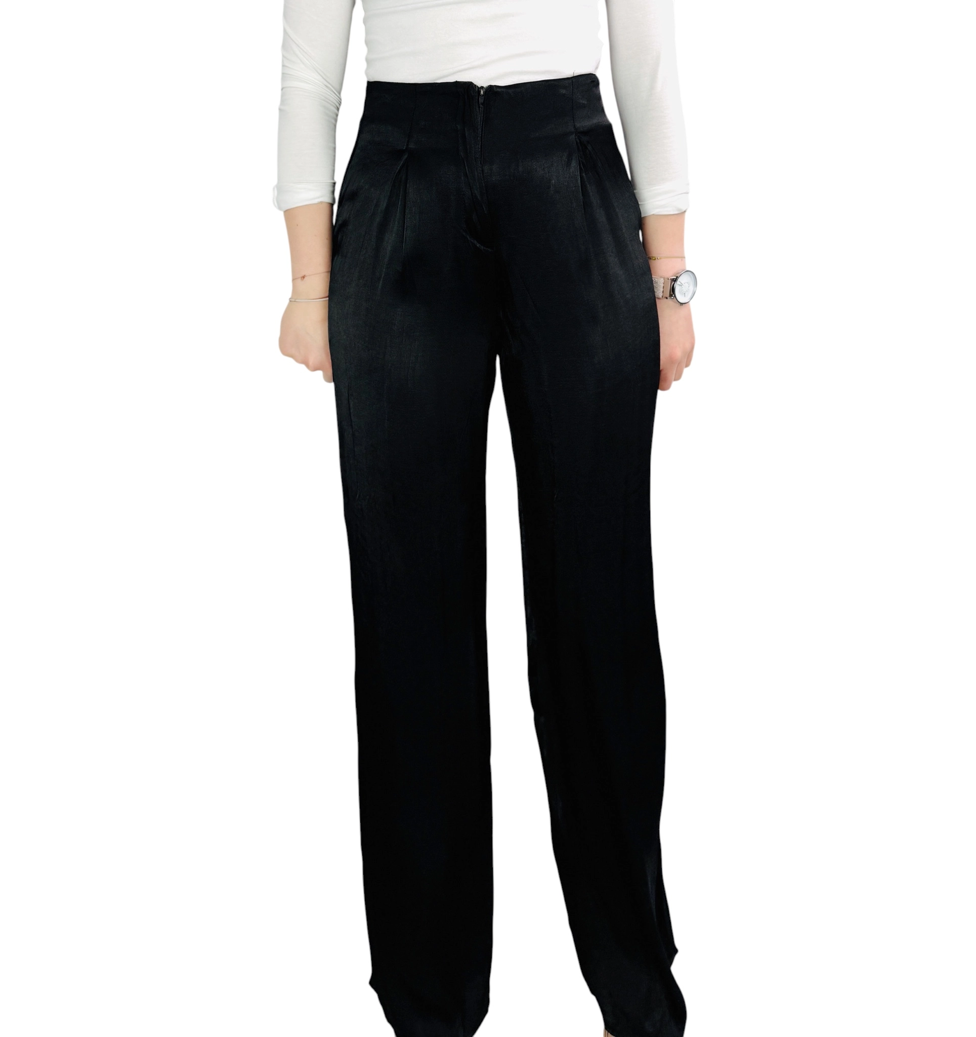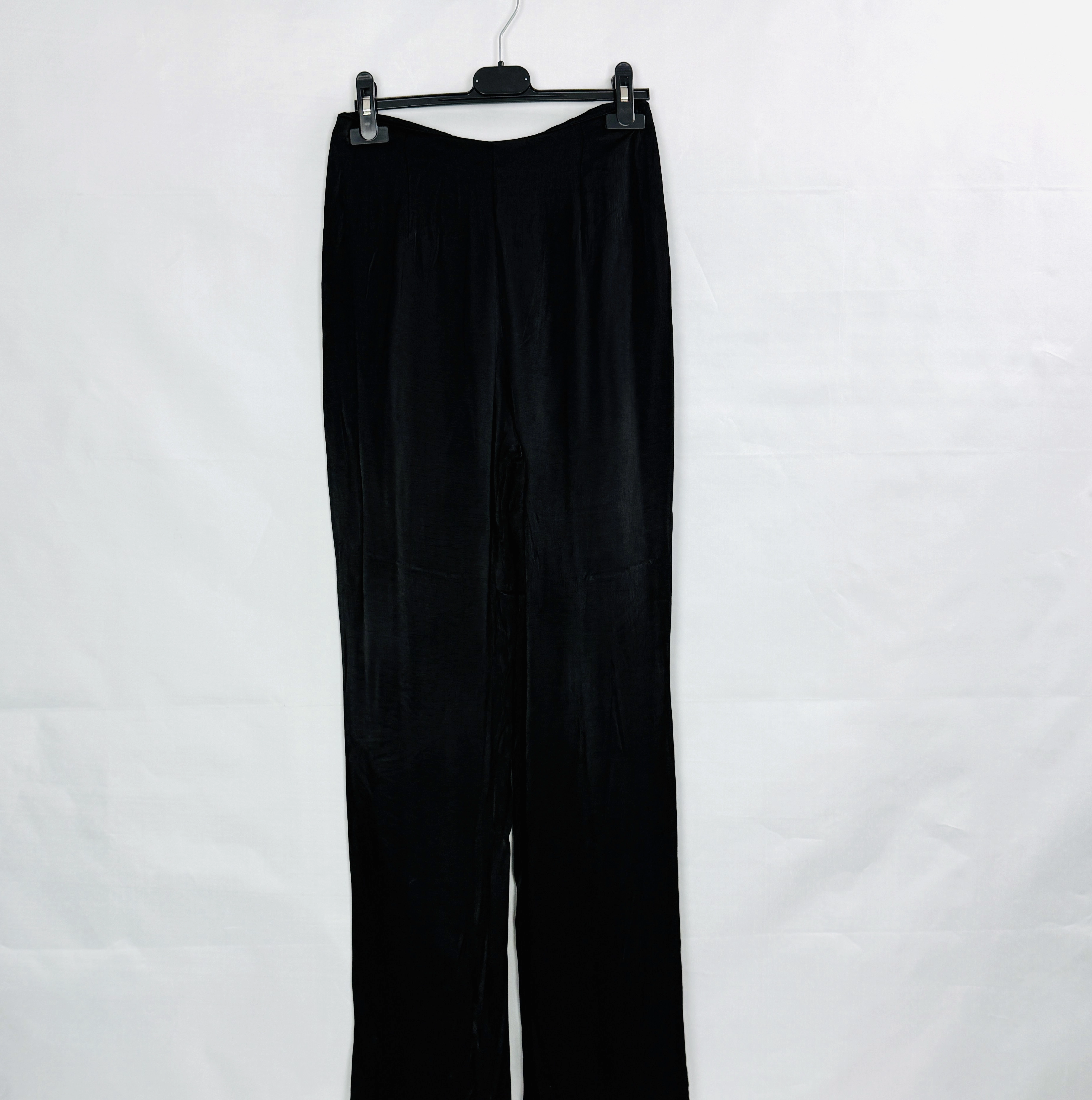 Czarne satynowe spodnie z wysokim stanem XS 34