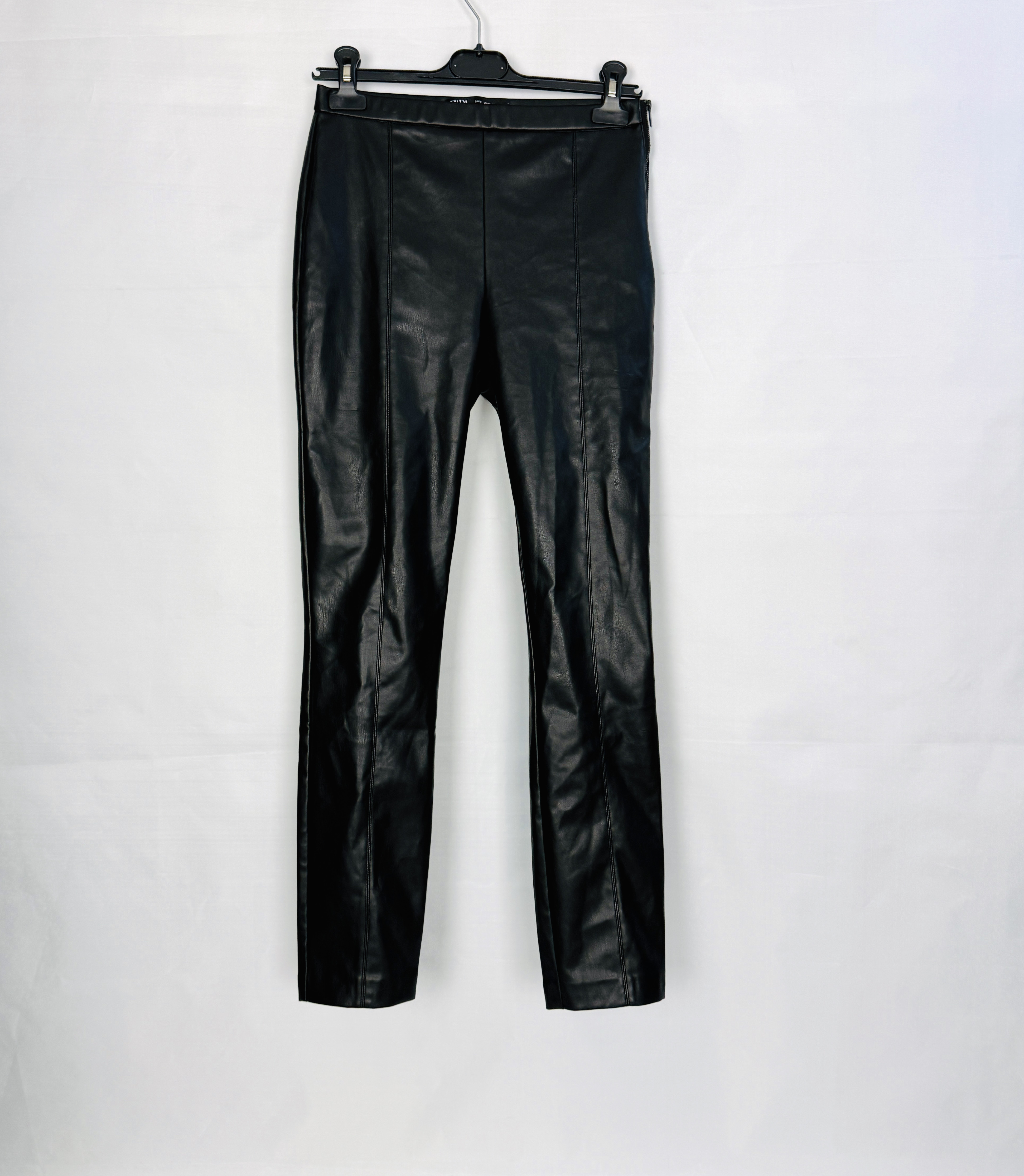 Czarne skórzane spodnie z ozdobnym przeszyciem M 38