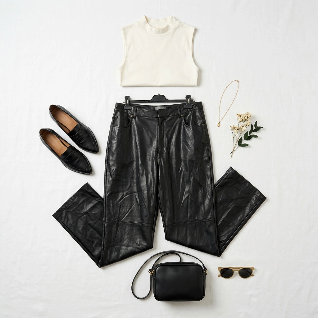 W stylizacjach wykorzystaj ich mocny charakter: na co dzień zestaw z białym topem i denimową lub wełnianą marynarką dla kontrastu faktur, do pracy połącz z gładkim, dopasowanym golfem i klasycznymi półbutami, a na wieczór wybierz top z efektowną fakturą i szpilki lub botki na obcasie, które podkreślą szyk. Czerń spodni świetnie komponuje się z beżem, kremem i granatem, pięknie wygląda z akcentami bordo i butelkowej zieleni oraz z metalicznymi dodatkami, jeśli chcesz dodać błysku. To uniwersalny, mocny element garderoby, który z łatwością wprowadzi do stylizacji pazur i elegancką surowość.