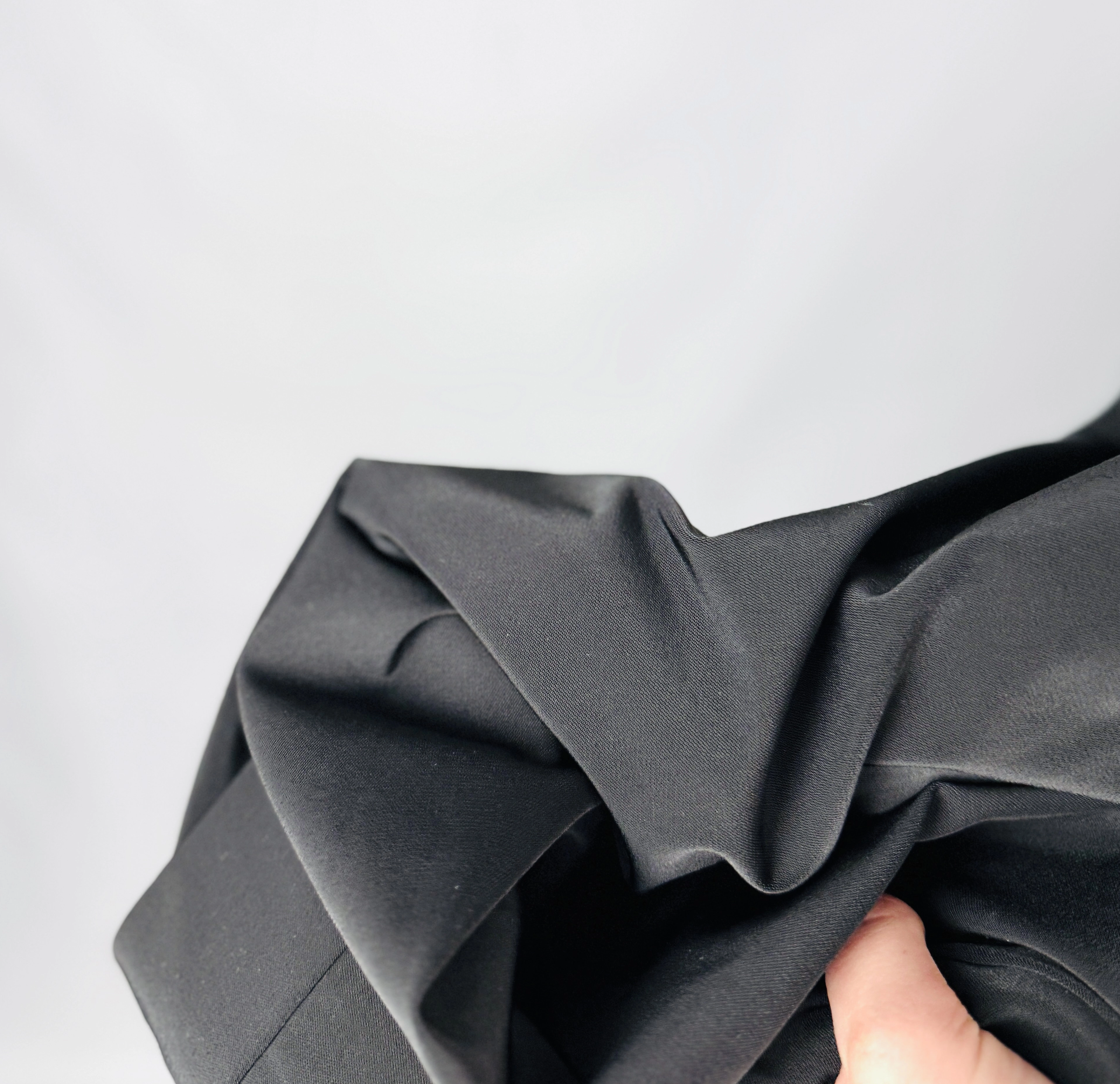 Materiał sprawia wrażenie gładkiego, lekko lejącego i miękko układającego się na sylwetce. Tkanina delikatnie otula ciało, nie krępując ruchów, co sprawia, że spodnie są komfortowe w codziennym użytkowaniu. Matowe wykończenie podkreśla ich uniwersalny charakter, a brak wzorów sprawia, że model ten pozostaje ponadczasowy i niezwykle praktyczny.