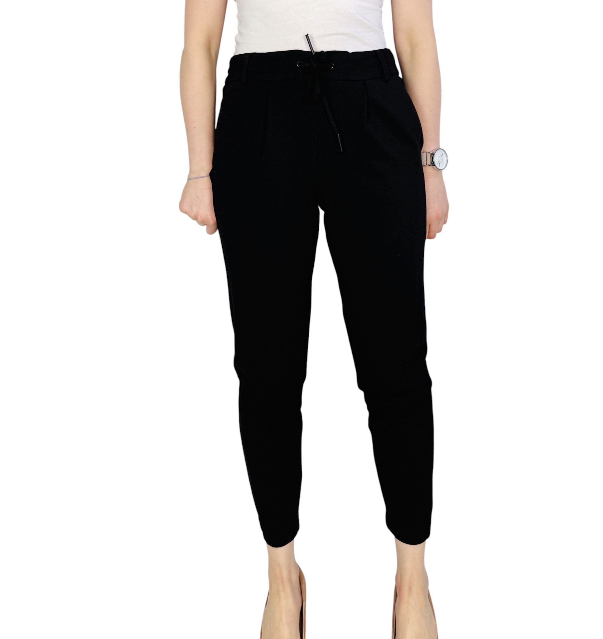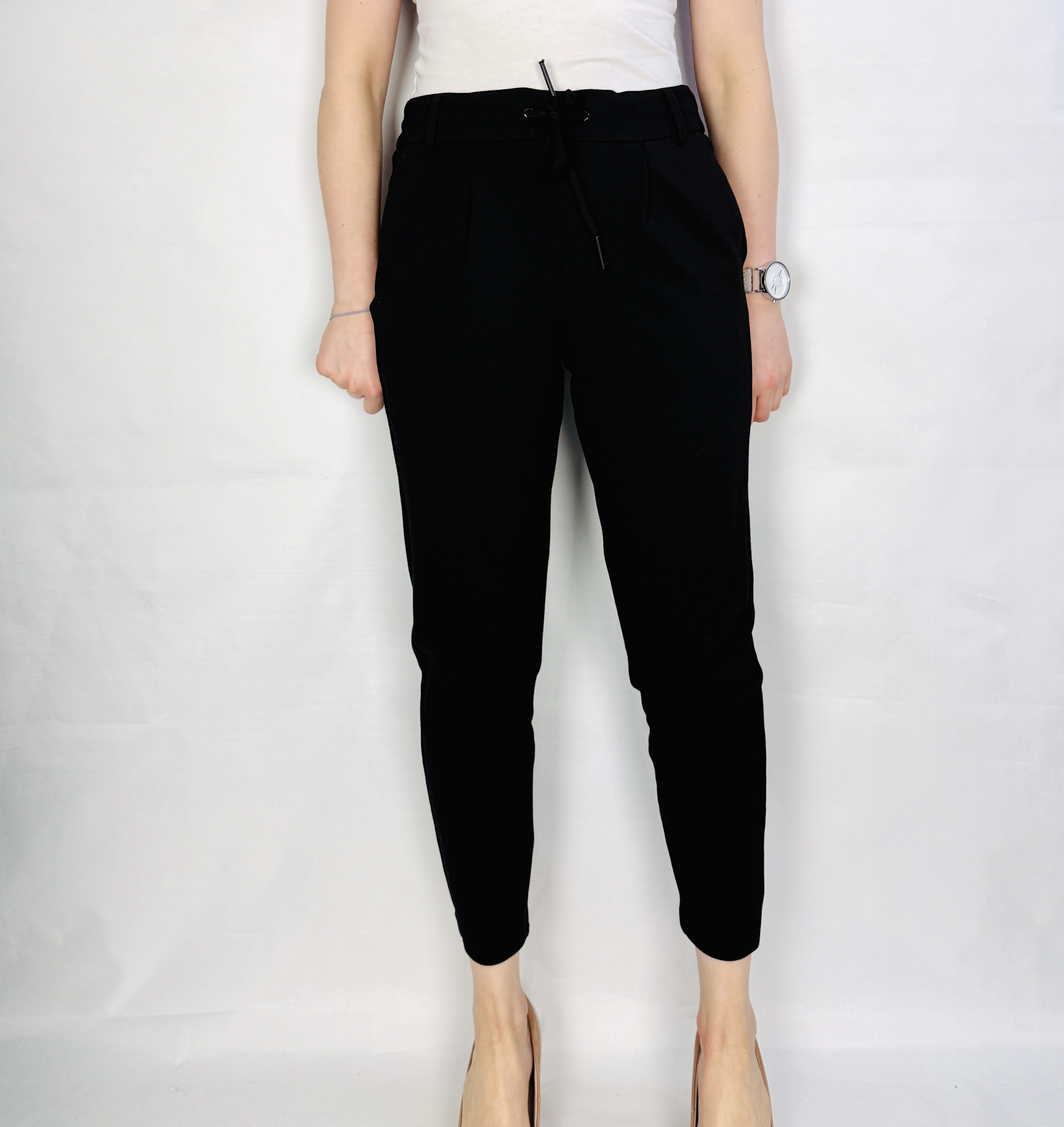 W stylizacjach sprawdzą się niezwykle uniwersalnie: zestawione z dopasowanym topem i trampkami stworzą komfortowy look na co dzień, z klasyczną koszulą i loafersami elegancki outfit do biura w mniej formalnym wydaniu, a z kobiecą bluzką i szpilkami nabiorą wieczorowego szyku. Czerń spodni ładnie współgra z bielą, kremem i beżem dla świeżego kontrastu, a także z dodatkami w kolorze bordo, butelkowej zieleni czy granatu, które dodadzą głębi i charakteru. To praktyczny, a zarazem stylowy element garderoby, doskonały na wiele okazji.