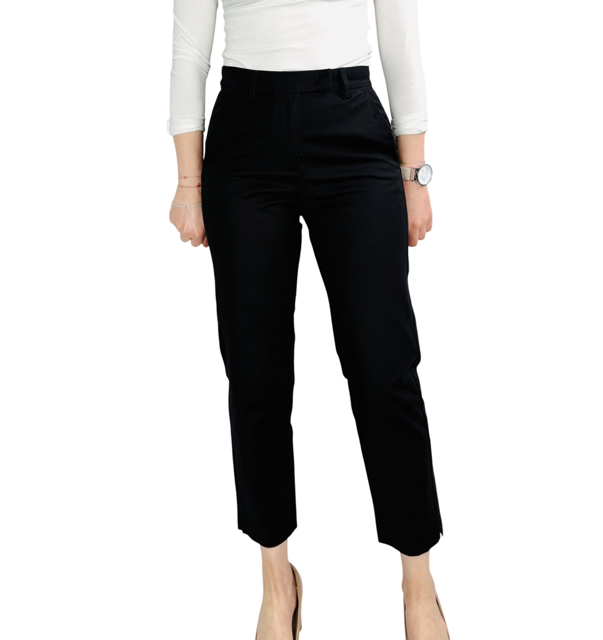 Czarne spodnie z wysokim stanem i prostą nogawką S 36