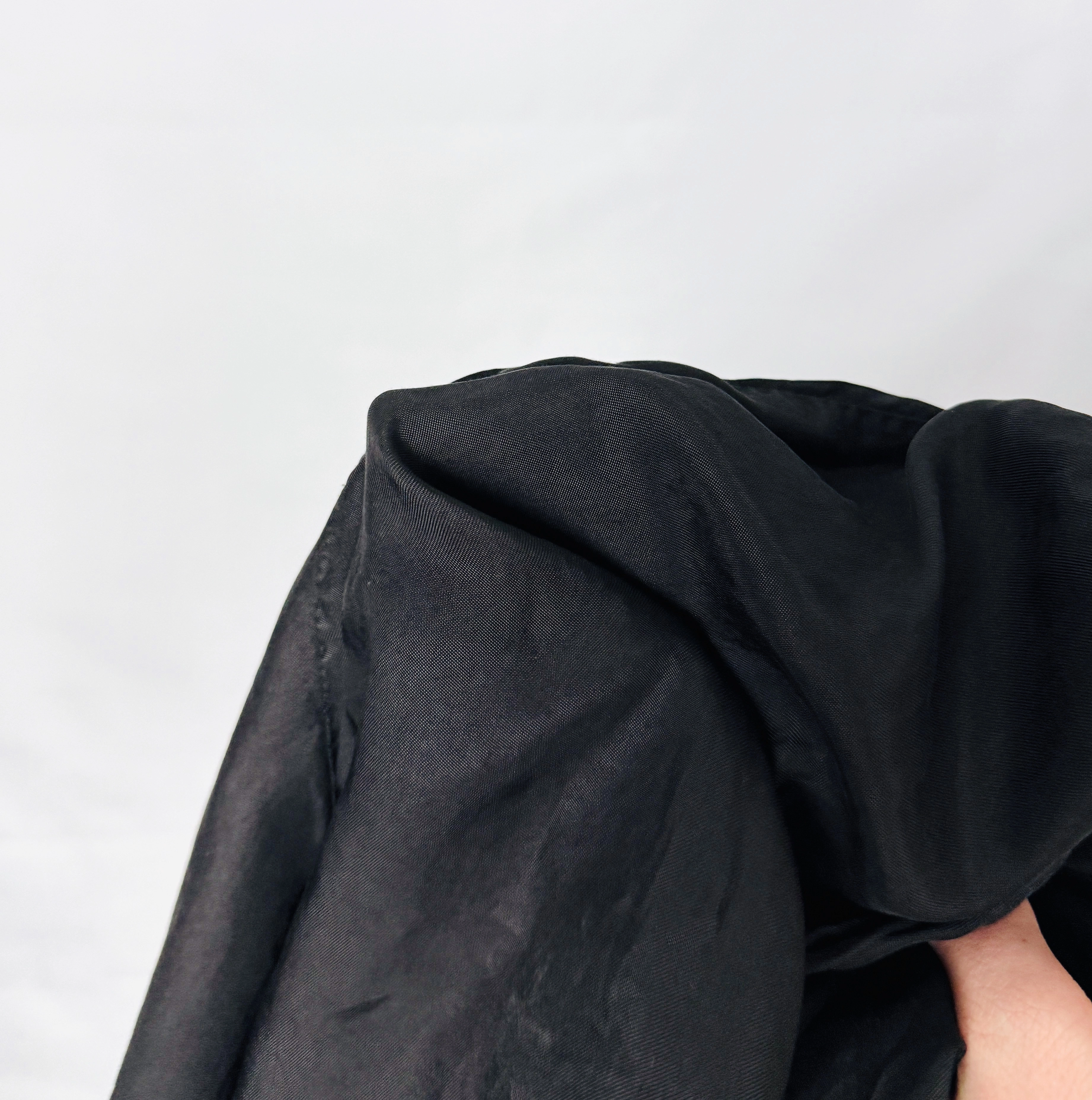 Materiał sprawia wrażenie lekkiego, miękko układającego się i przyjemnego w dotyku. Tkanina delikatnie opływa sylwetkę, nie opinając jej, co potęguje uczucie swobody i naturalności. Całość prezentuje się lekko i świeżo, idealnie wpisując się w cieplejsze dni.