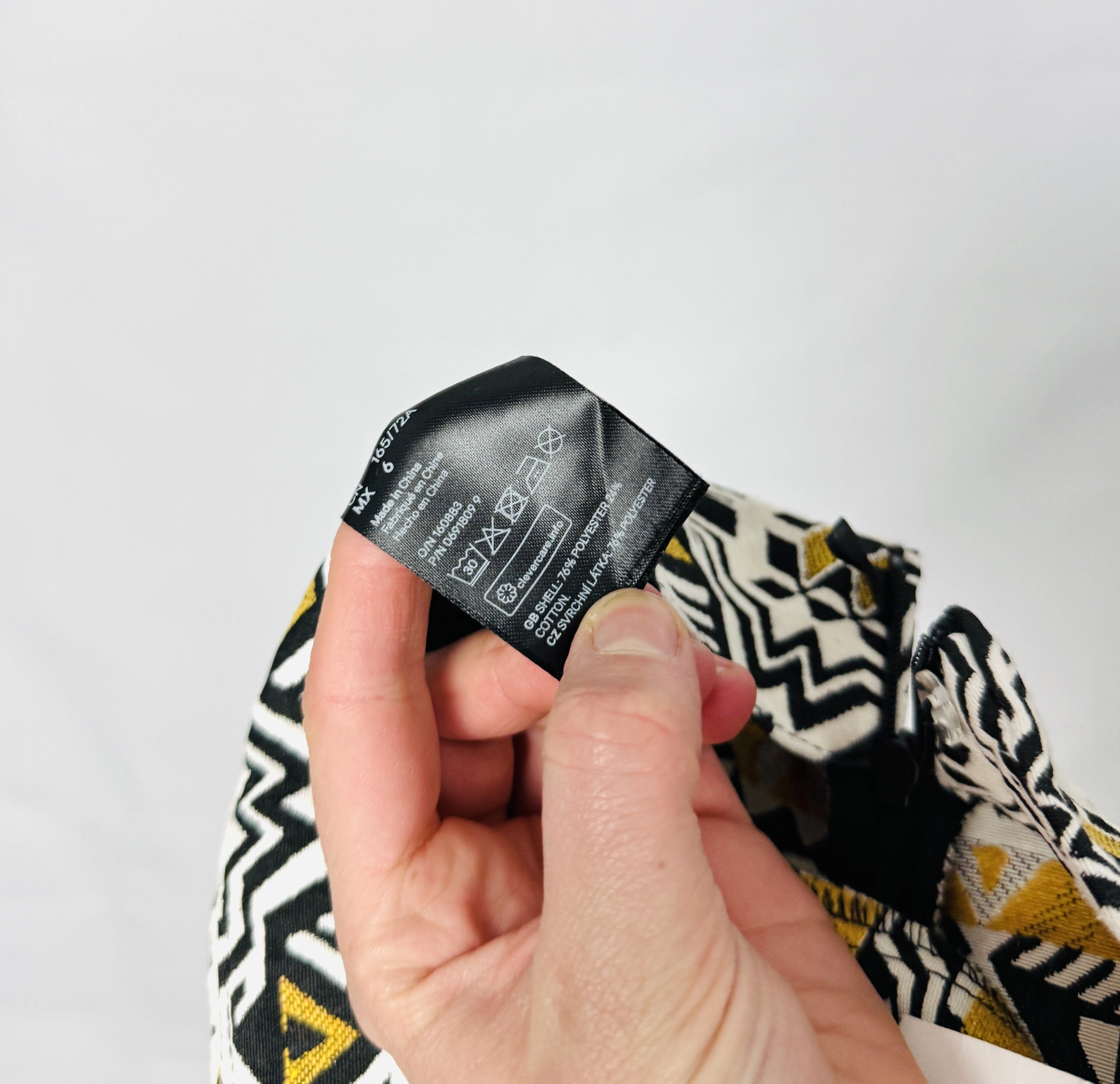 Fason spódnicy jest prosty i lekko dopasowany, dzięki czemu subtelnie podkreśla sylwetkę, nie opinając jej zbyt mocno. Wysoki stan zaznacza talię i nadaje proporcjom harmonii, a długość mini eksponuje nogi i dodaje całości lekkości. Linia bioder pozostaje gładka, co pozwala wzorowi grać główną rolę, a jednocześnie zapewnia schludny i elegancki wygląd.