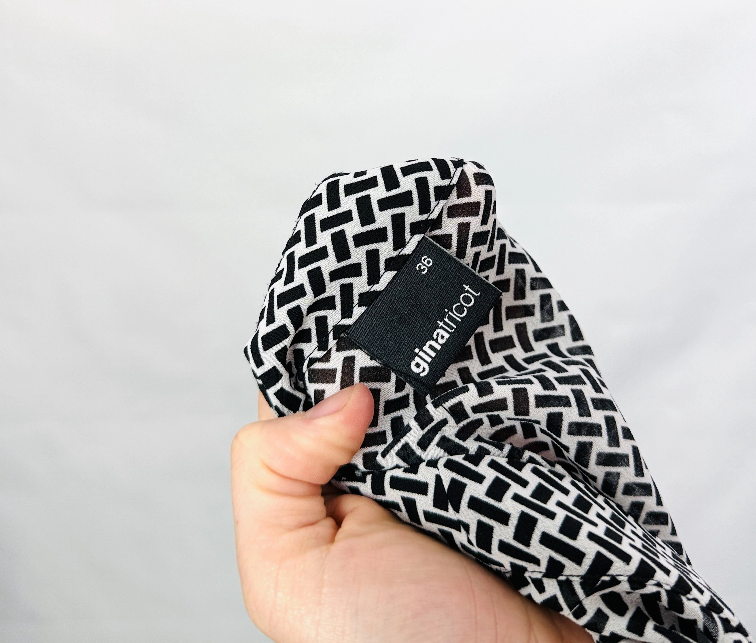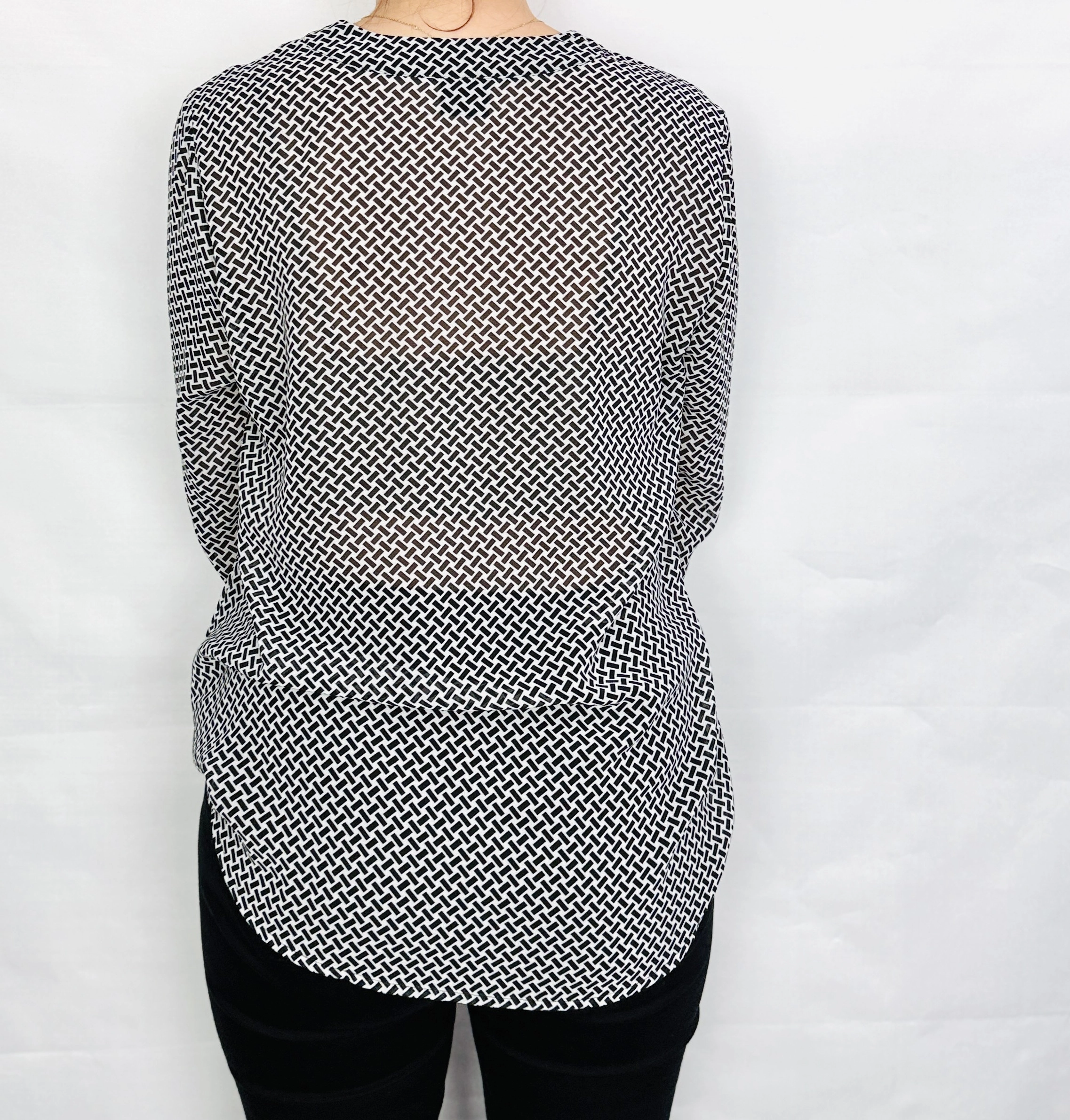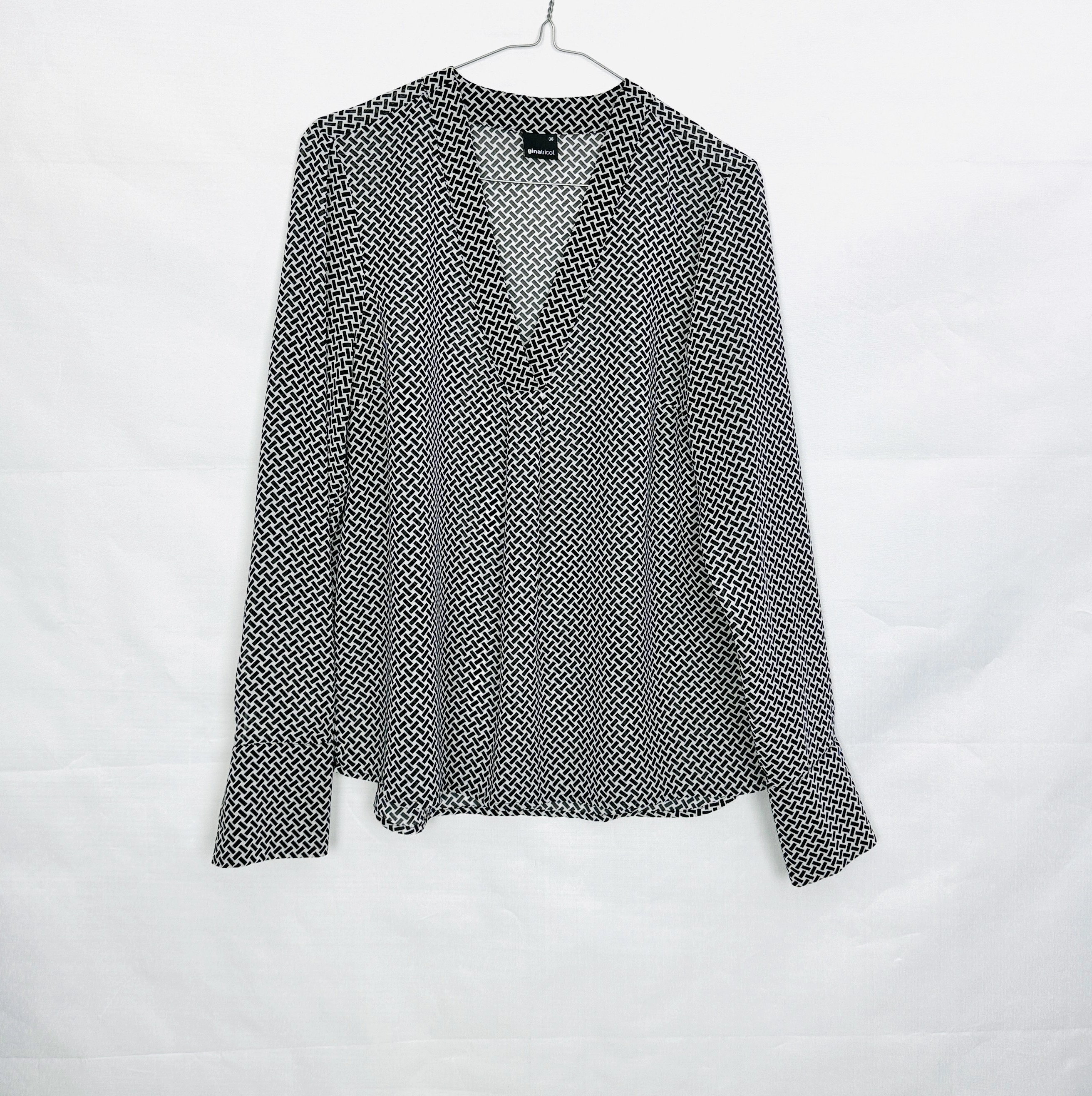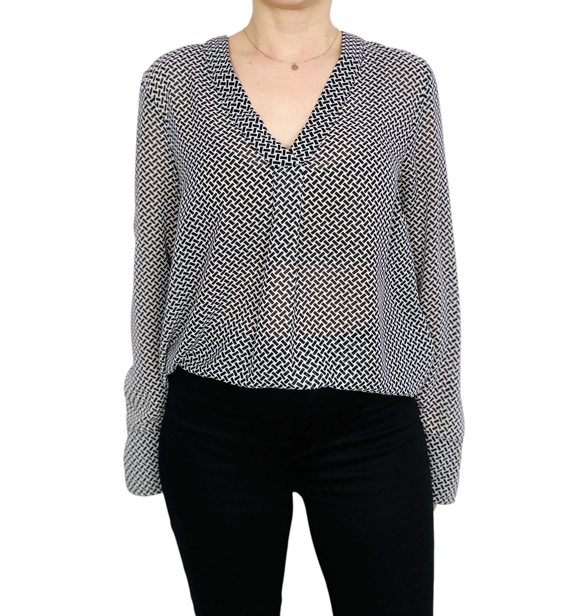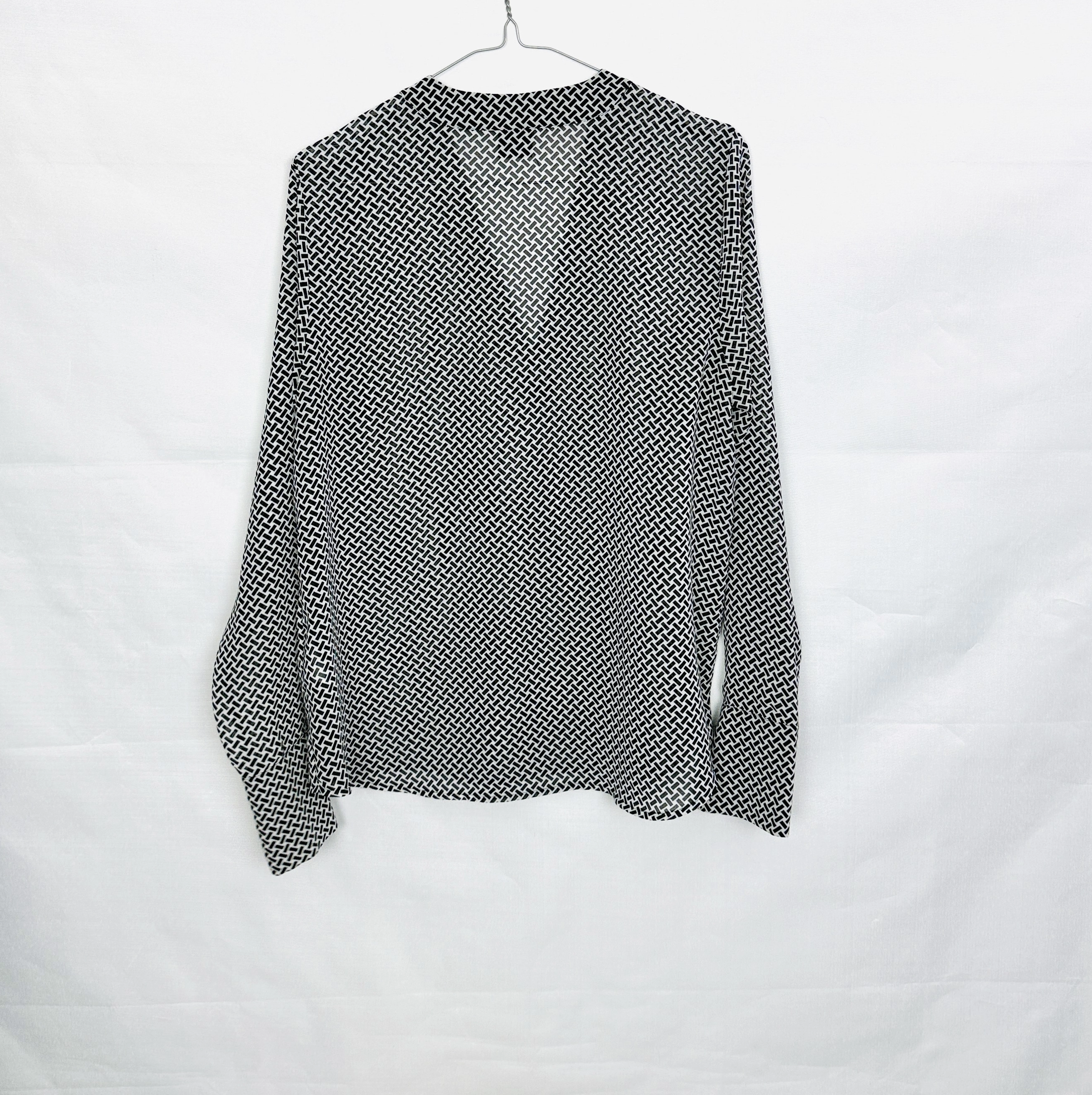 Czarno biała bluzka w geometryczny wzór z dekoltem w serek S 36