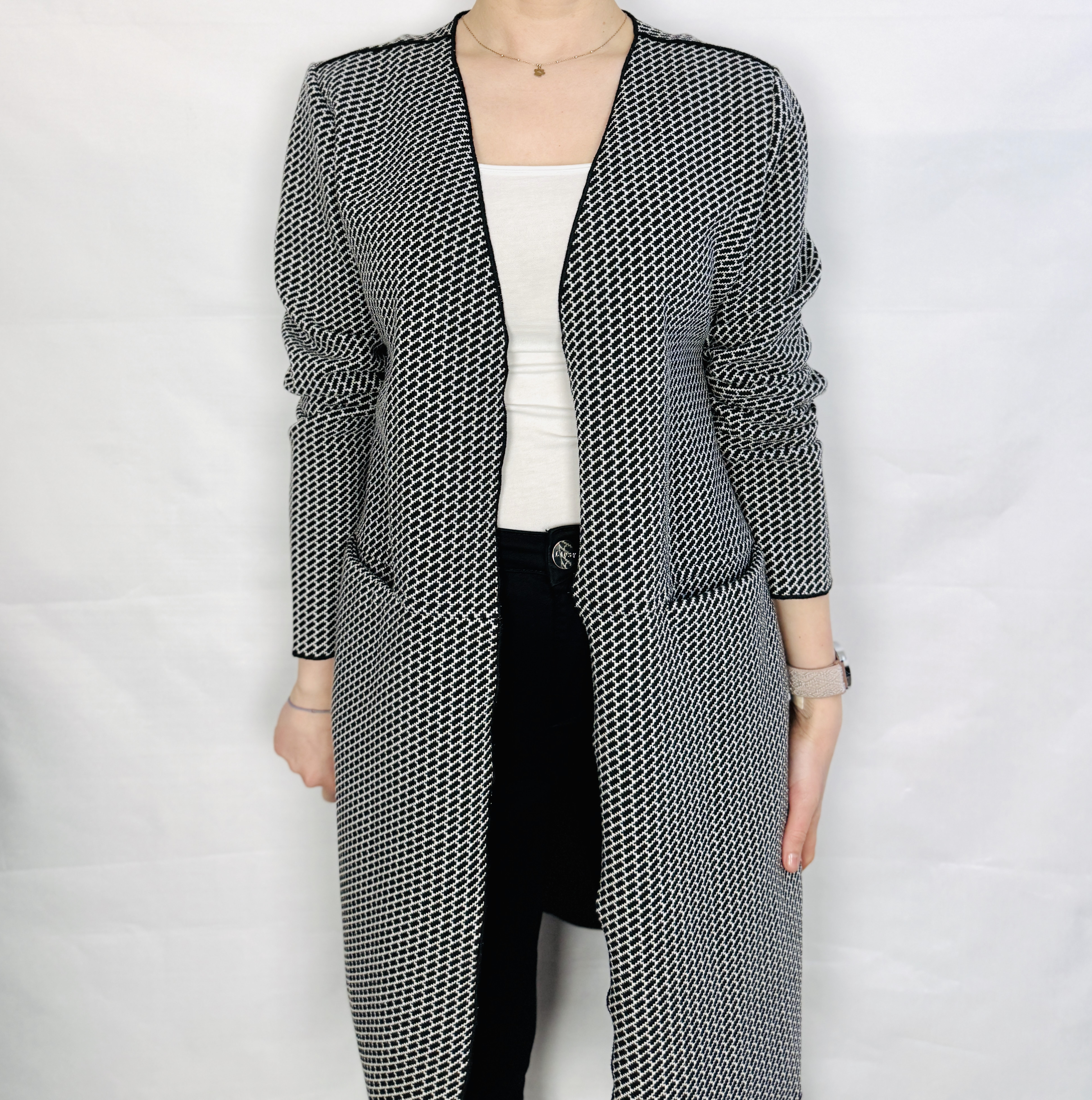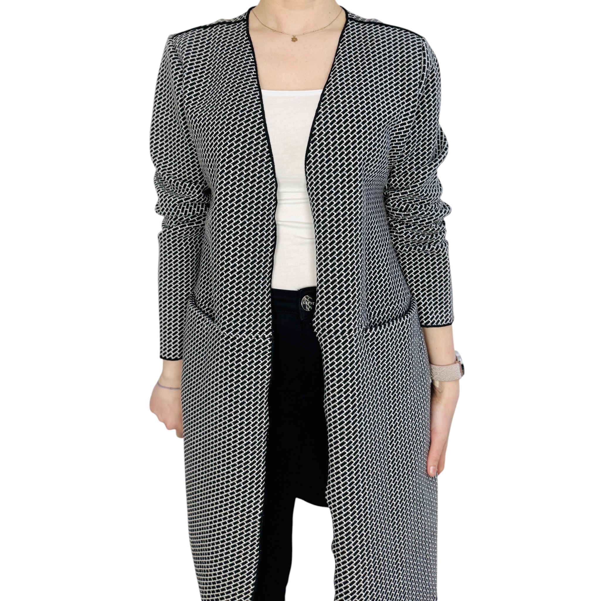 Czarno biała narzutka z kieszeniami M 38