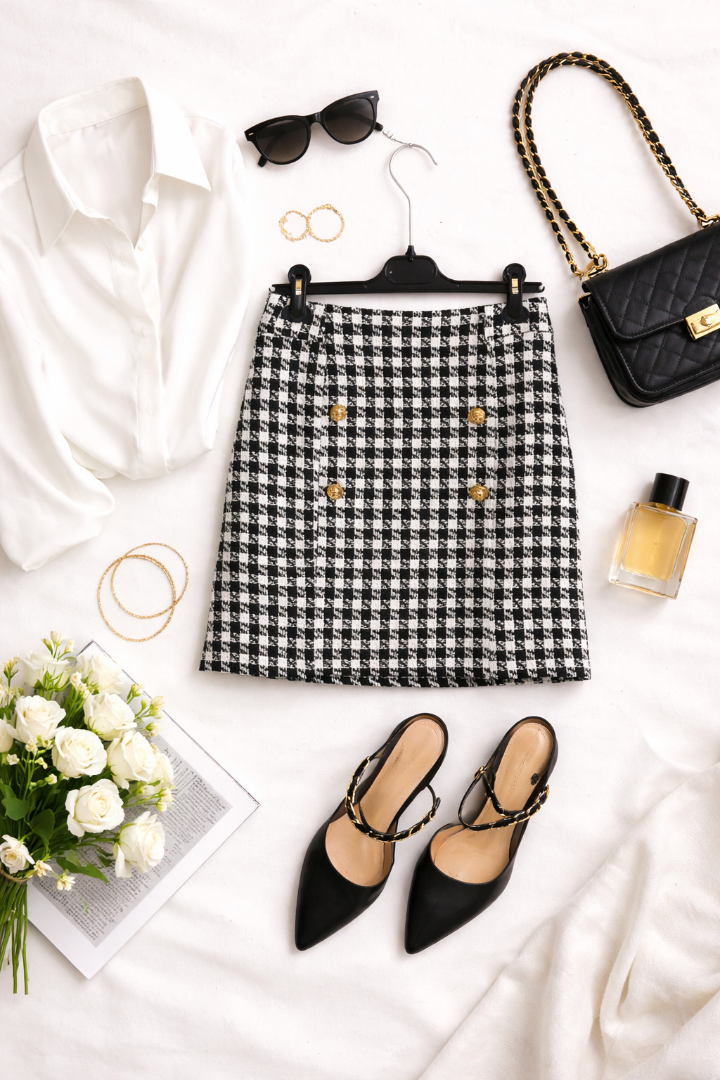 W stylizacjach spódnica daje dużo możliwości — na co dzień połącz ją z gładkim kremowym lub białym topem i prostymi loafersami albo botkami dla miejskiego, eleganckiego looku; do pracy zestaw z dopracowaną koszulą i klasycznymi półbutami, by osiągnąć stonowany, profesjonalny efekt; na popołudniowe wyjście wybierz dopasowany, kontrastowy top w odcieniu bordo lub butelkowej zieleni i zgrabne szpilki, które podkreślą szyk. Czarno biała pepitka pięknie współgra z kremem, beżem, czerwienią oraz z akcentami camel i granat, pozwalając tworzyć zarówno subtelne, jak i bardziej zdecydowane kompozycje odpowiednie na co dzień, do pracy, na spotkanie i na wieczór.
