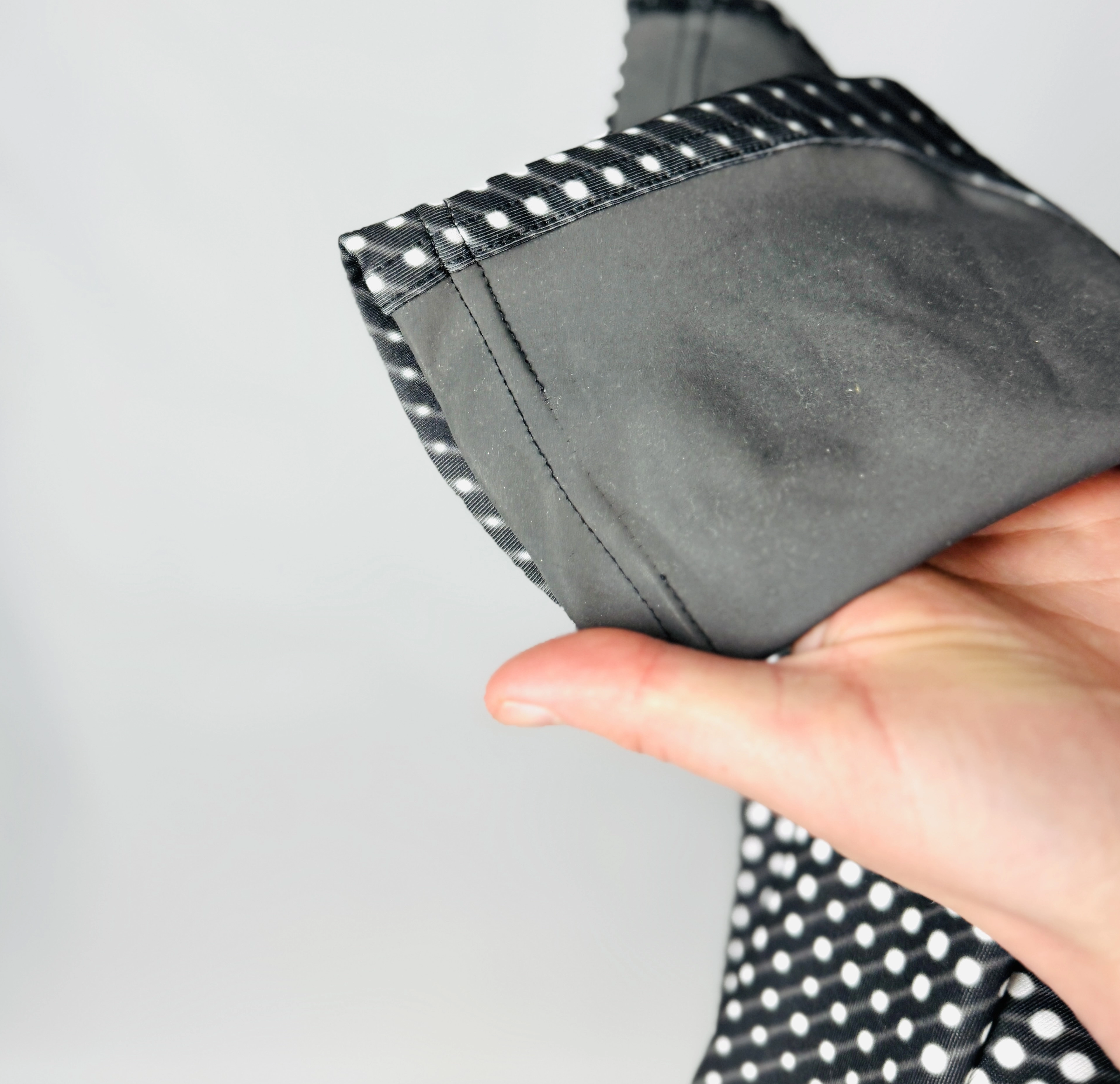 Na dole jest przerwana nitka na ozdobnym szwie (widoczne na zdjęciu).