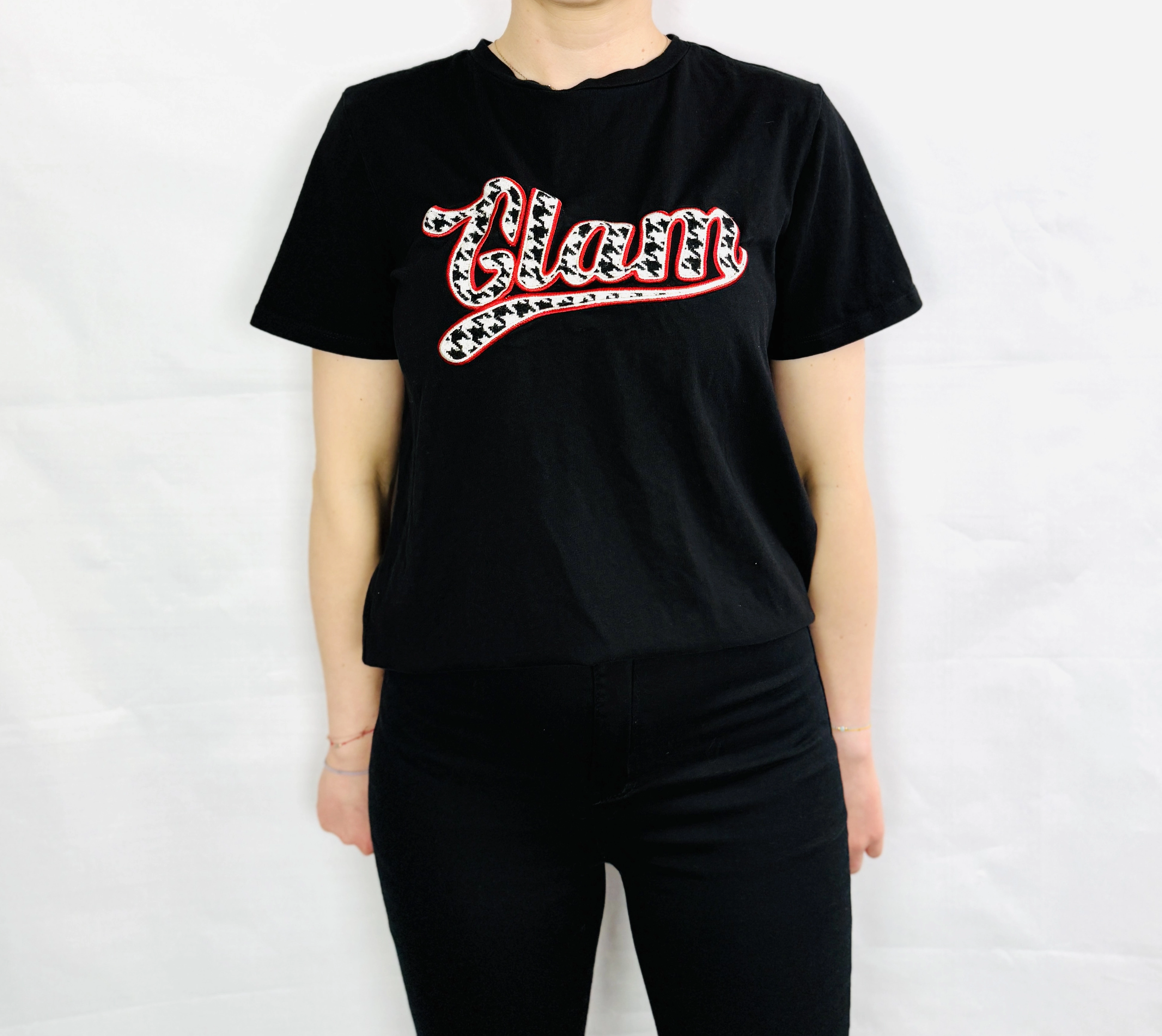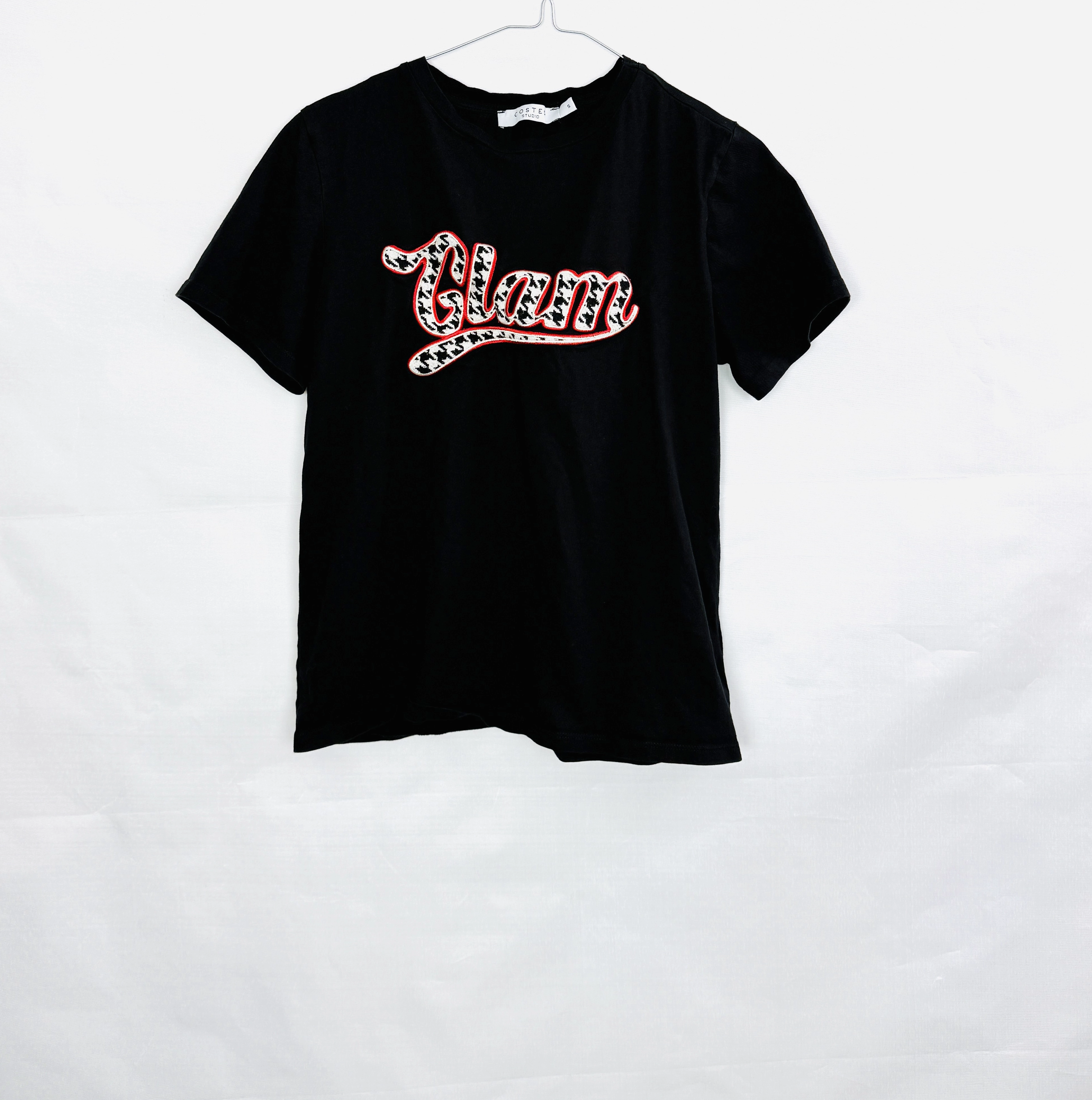 Czarny T-shirt z napisem Glam S 36