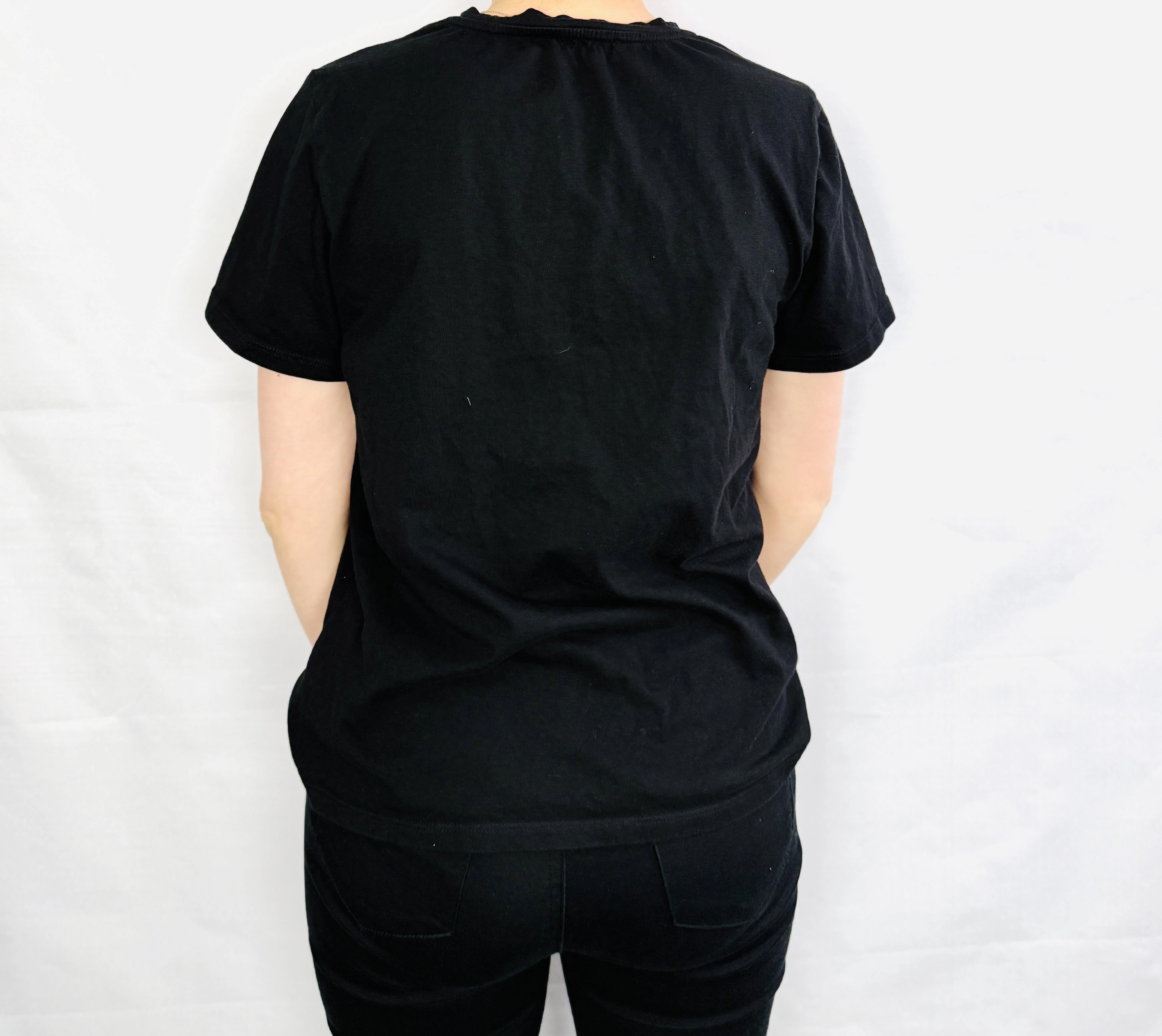 W stylizacjach ten czarny T-shirt daje ogromne możliwości. Na co dzień świetnie wygląda w zestawieniu z jeansami i sneakersami, tworząc wygodny, miejski look. Można go także połączyć z dopasowanymi spodniami lub spódnicą, uzyskując bardziej kobiecy i dopracowany efekt. Czerń doskonale współgra z niemal każdym kolorem – od klasycznej bieli i szarości, po intensywne barwy, które dodadzą stylizacji energii. W wersji na wieczór wystarczy zestawić go z eleganckimi spodniami i butami na obcasie, aby stworzyć outfit z nutą nowoczesnego szyku i luzu.