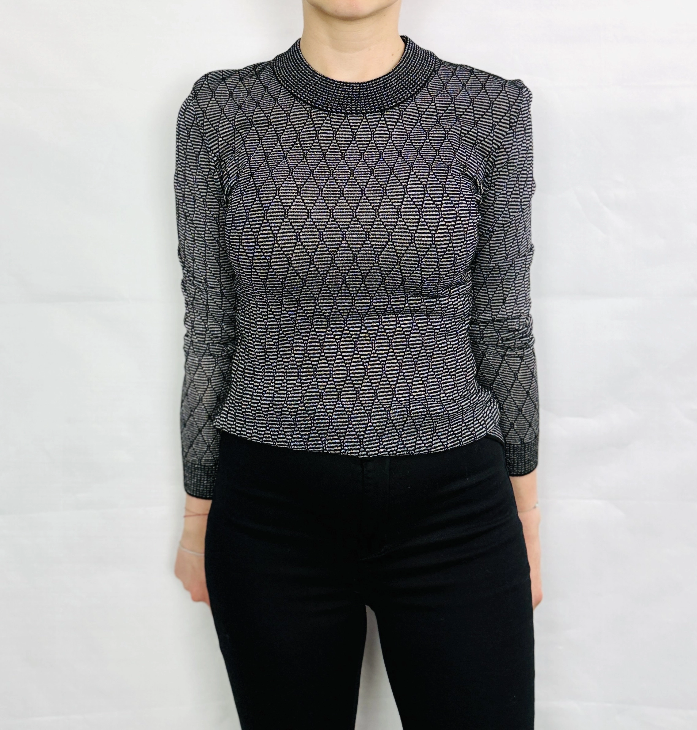 Czarny cienki sweterek ze srebrnym wzorem M 38
