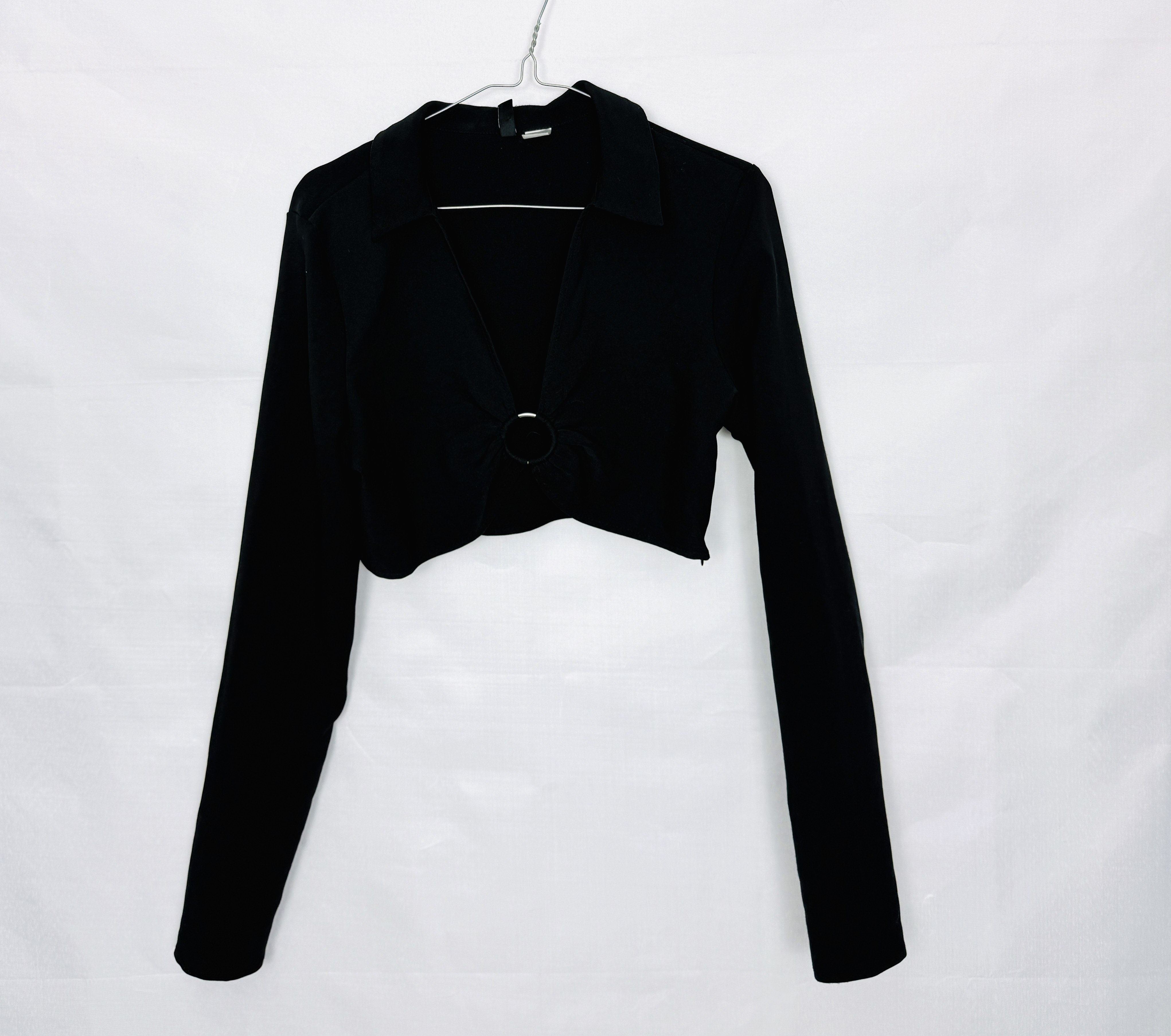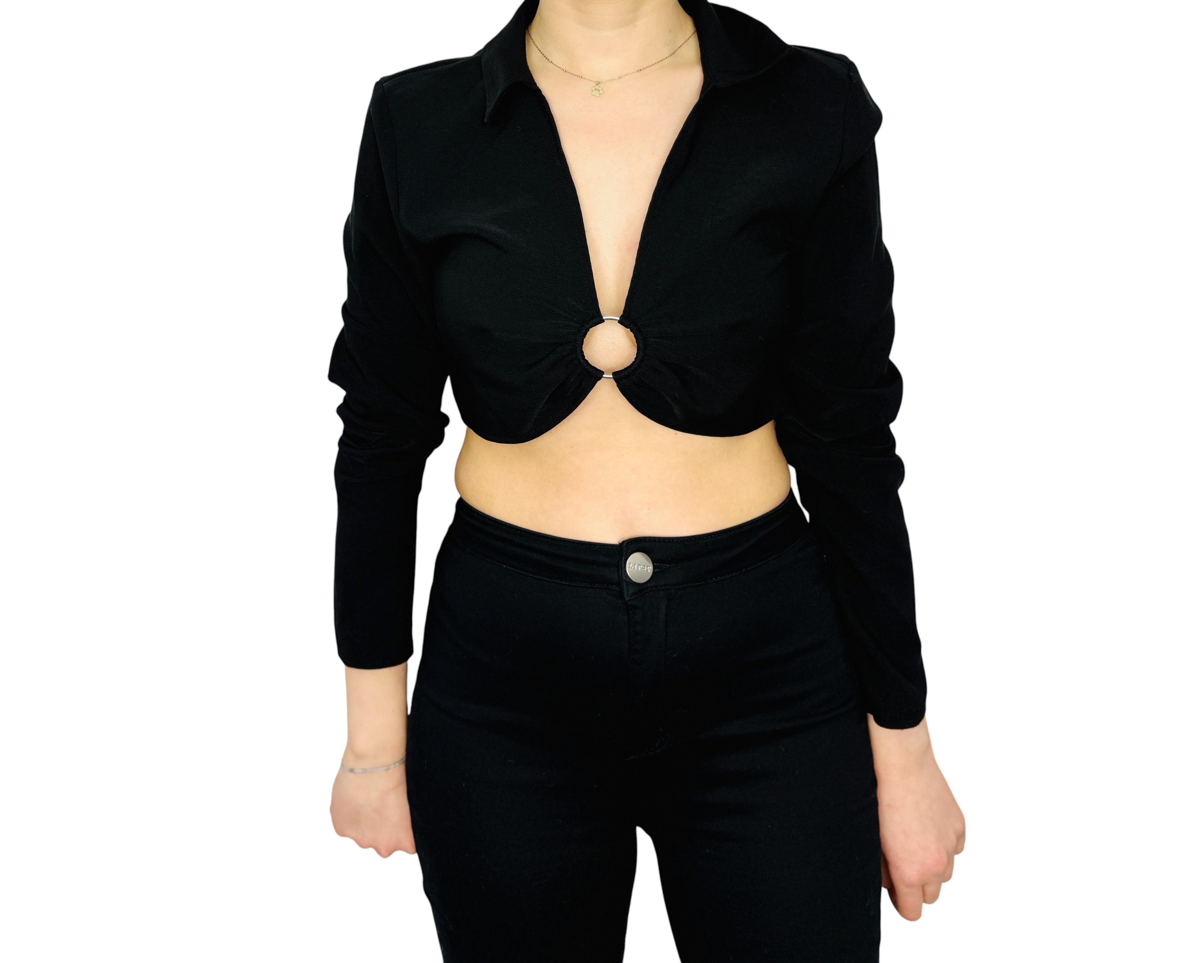 Czarny crop top z ozdobnym kółkiem L 40