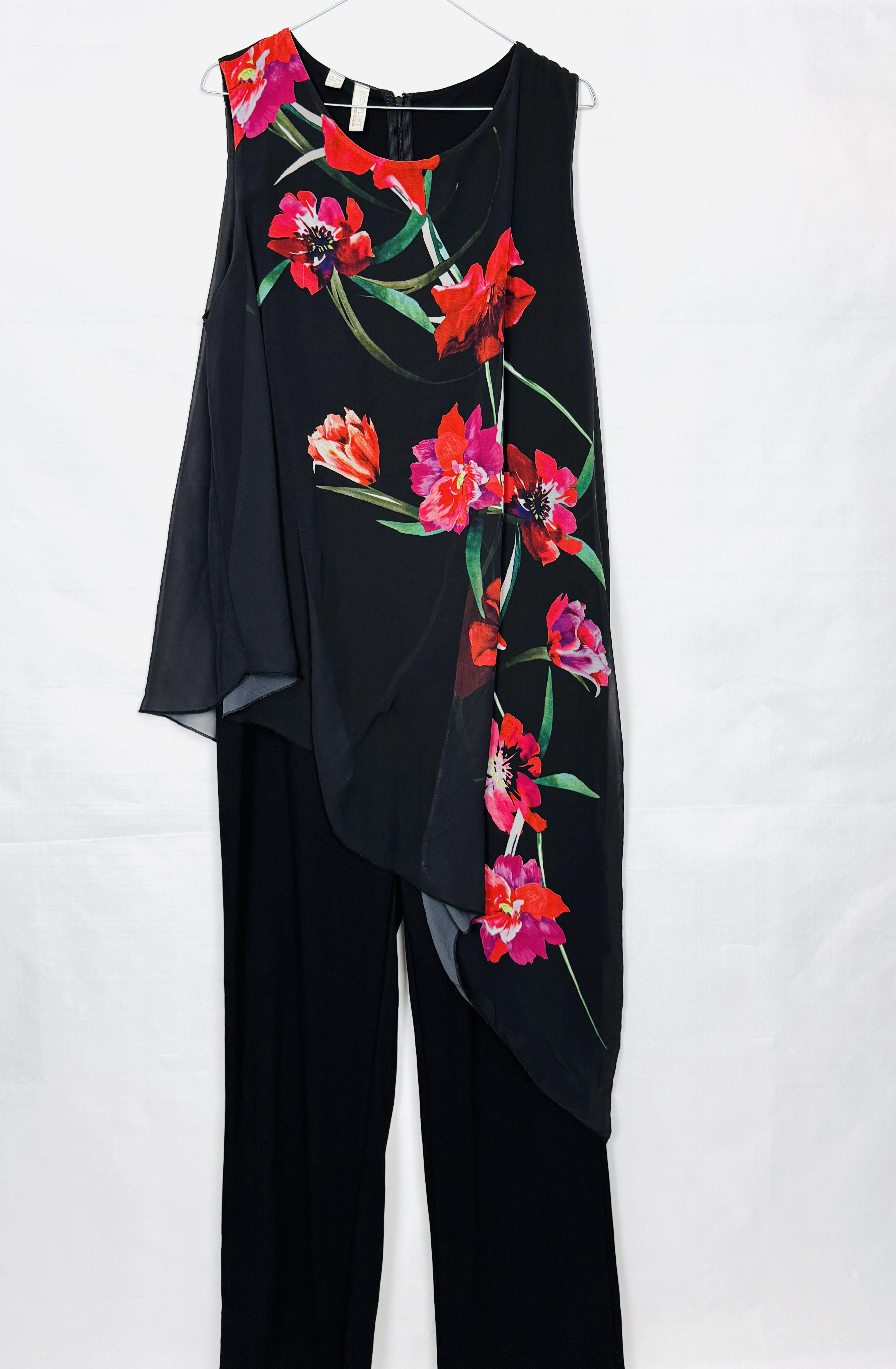 Czarny kombinezon z kwiatowym panelem 44/46