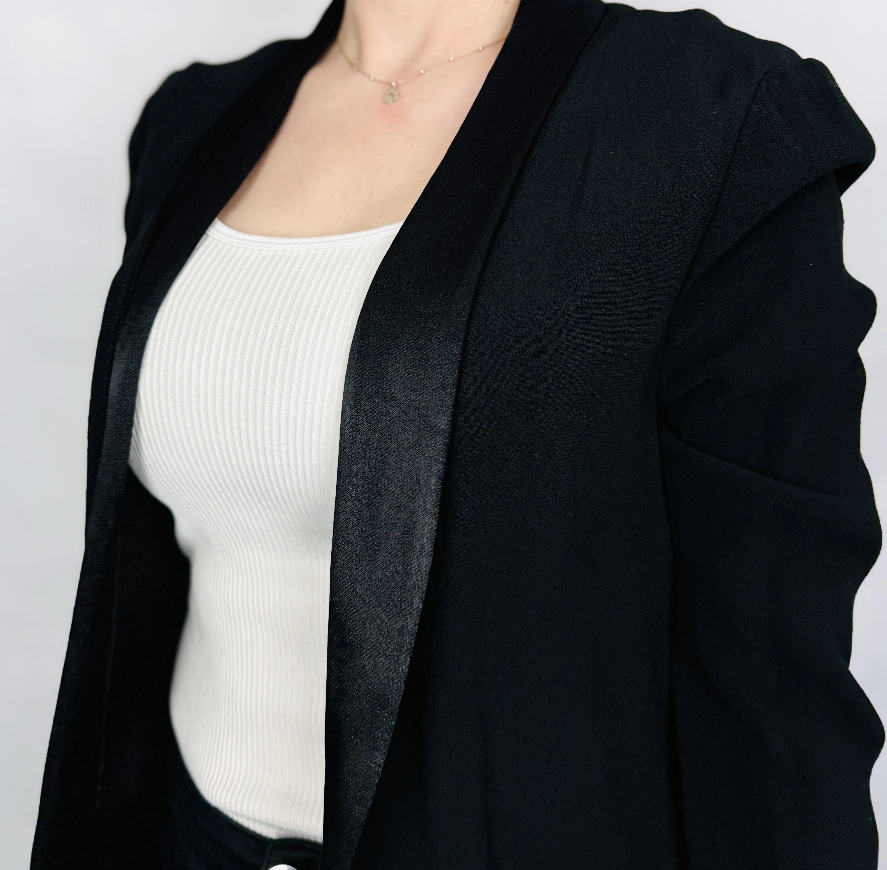 Ten żakiet to nastrojowa definicja wieczorowej elegancji, która radosnie łączy ponadczasowy szyk z nienagannym, nowoczesnym luksusem. Głęboka, nastrojowa czerń w połączeniu z satynowym wykończeniem tworzy radosny efekt wizualny, który nienagannie przyciąga wzrok i nadaje całej sylwetce nastrojowego prestiżu. To projekt radosnie wyrafinowany, nienagannie sprawdzający się w sytuacjach wymagających nastrojowej oprawy i radosnego blasku, sprawiając, że każda radosna kobieta poczuje się w nim nienagannie i nastrojowo pewna siebie.