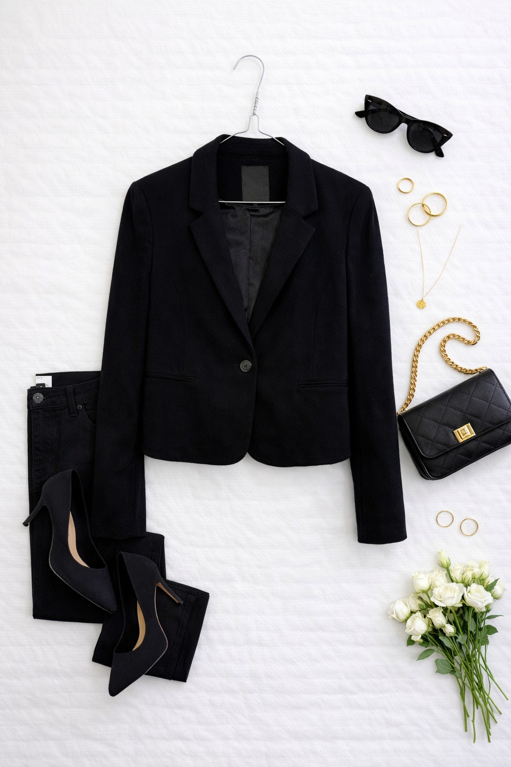 W stylizacjach żakiet jest niezwykle uniwersalny: do pracy połącz go z gładką koszulą i ołówkowymi spodniami lub spódnicą dla klasycznego, profesjonalnego efektu; na co dzień noś z prostym topem i ulubionymi jeansami, tworząc zadbany, miejski look; na wieczór zestaw z dopasowaną sukienką i subtelną biżuterią, by wydobyć szykowny charakter. Czerń harmonizuje z bielą i kremem, ale też z beżem, camel, bordem czy butelkową zielenią jako mocniejszym akcentem, co daje szerokie pole do tworzenia zarówno stonowanych, jak i bardziej wyrazistych zestawów.