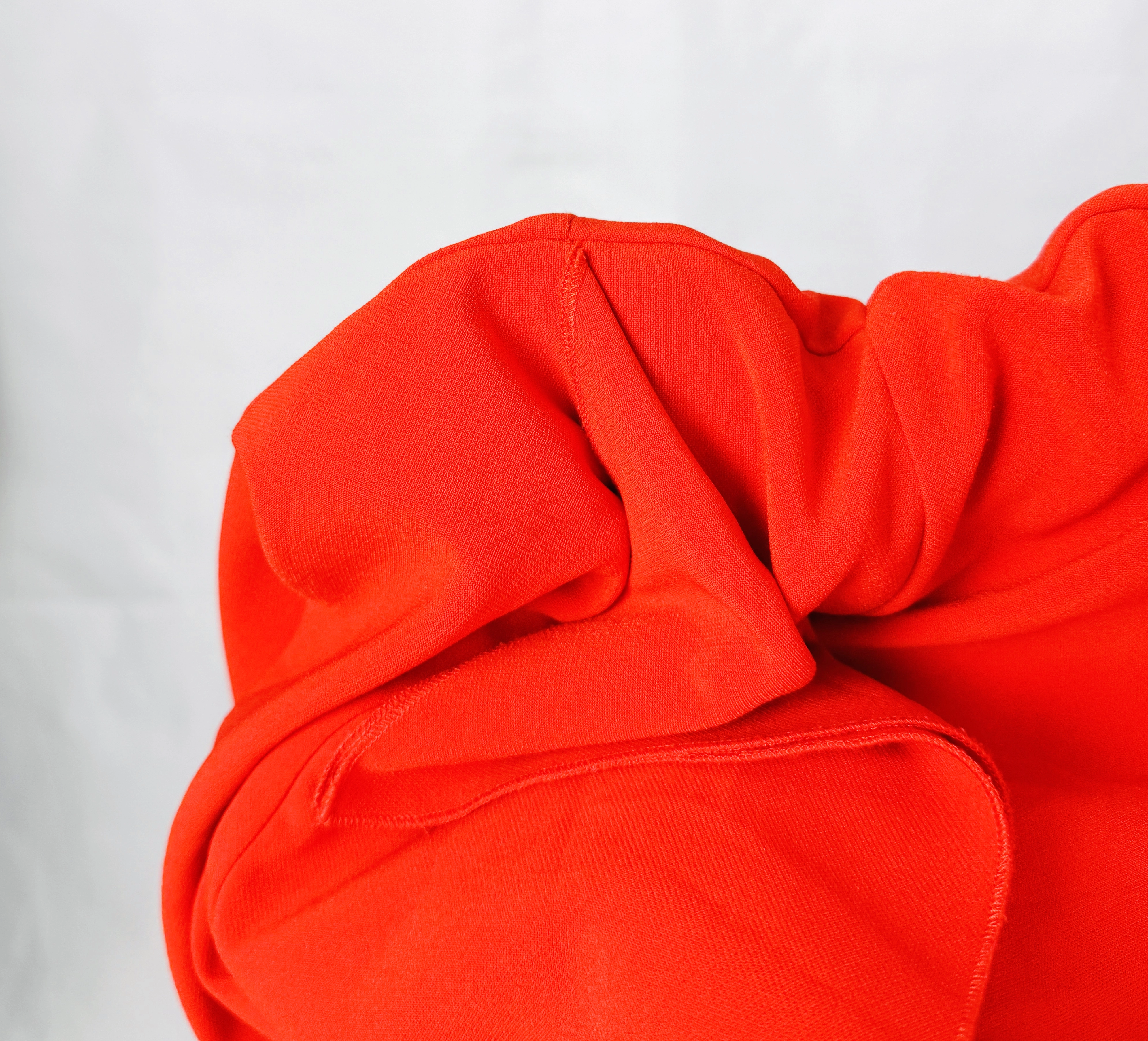 Materiał wygląda na gładki, nieco bardziej zwarty, ale jednocześnie elastyczny, dzięki czemu dobrze dopasowuje się do ciała i zachowuje swoją formę. Całość układa się schludnie i podkreśla figurę bez zbędnej objętości.