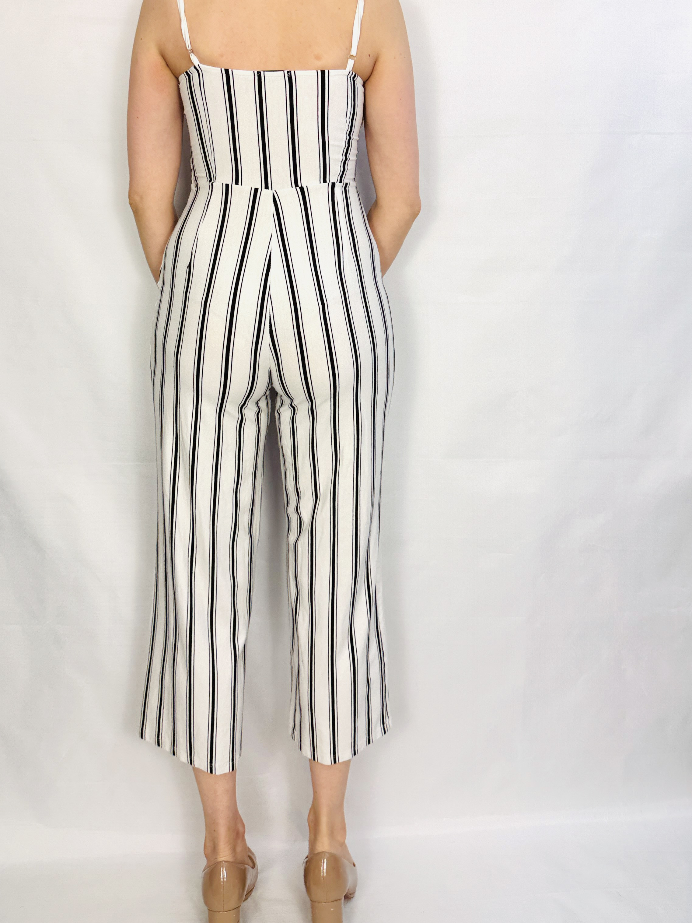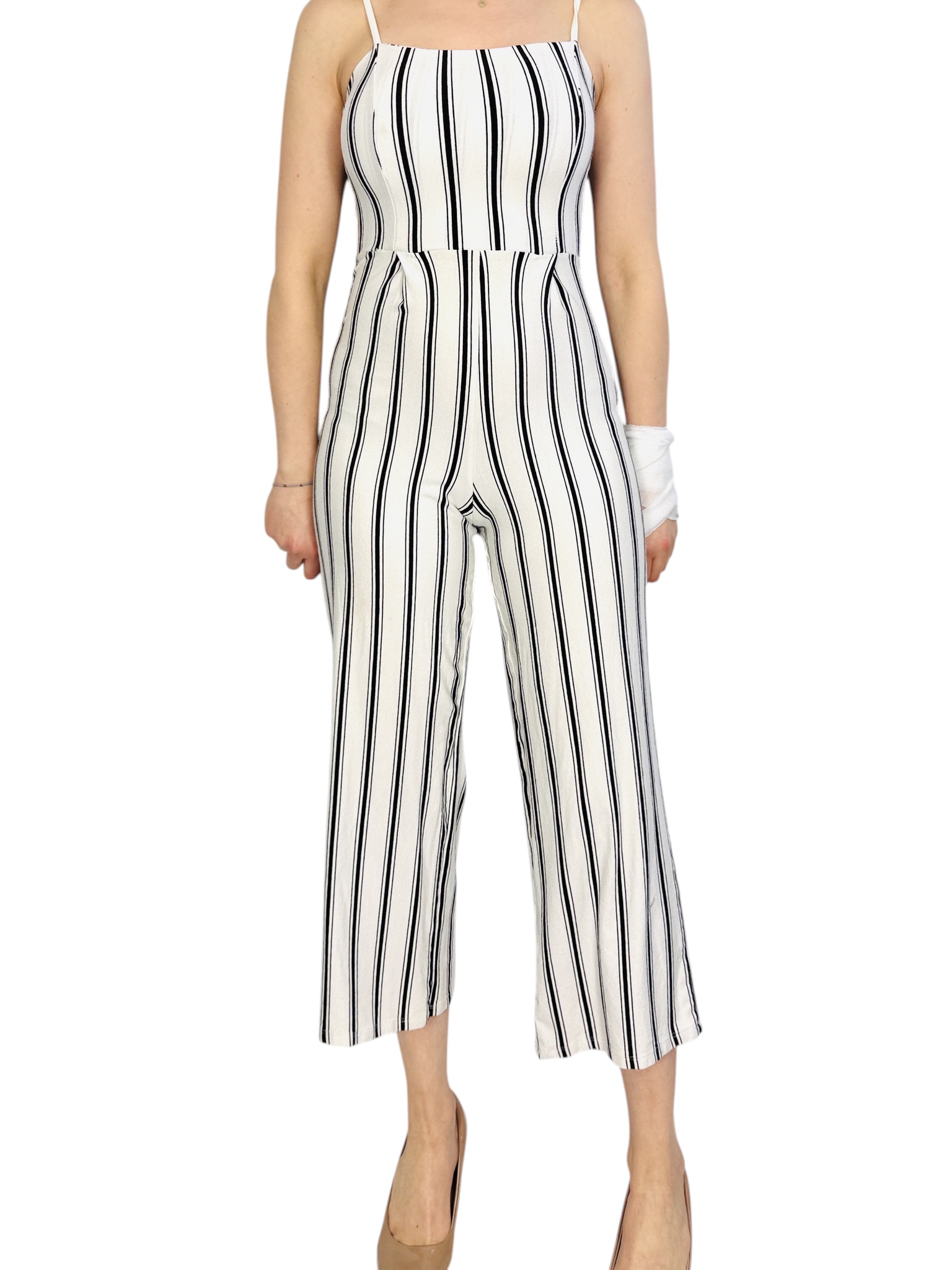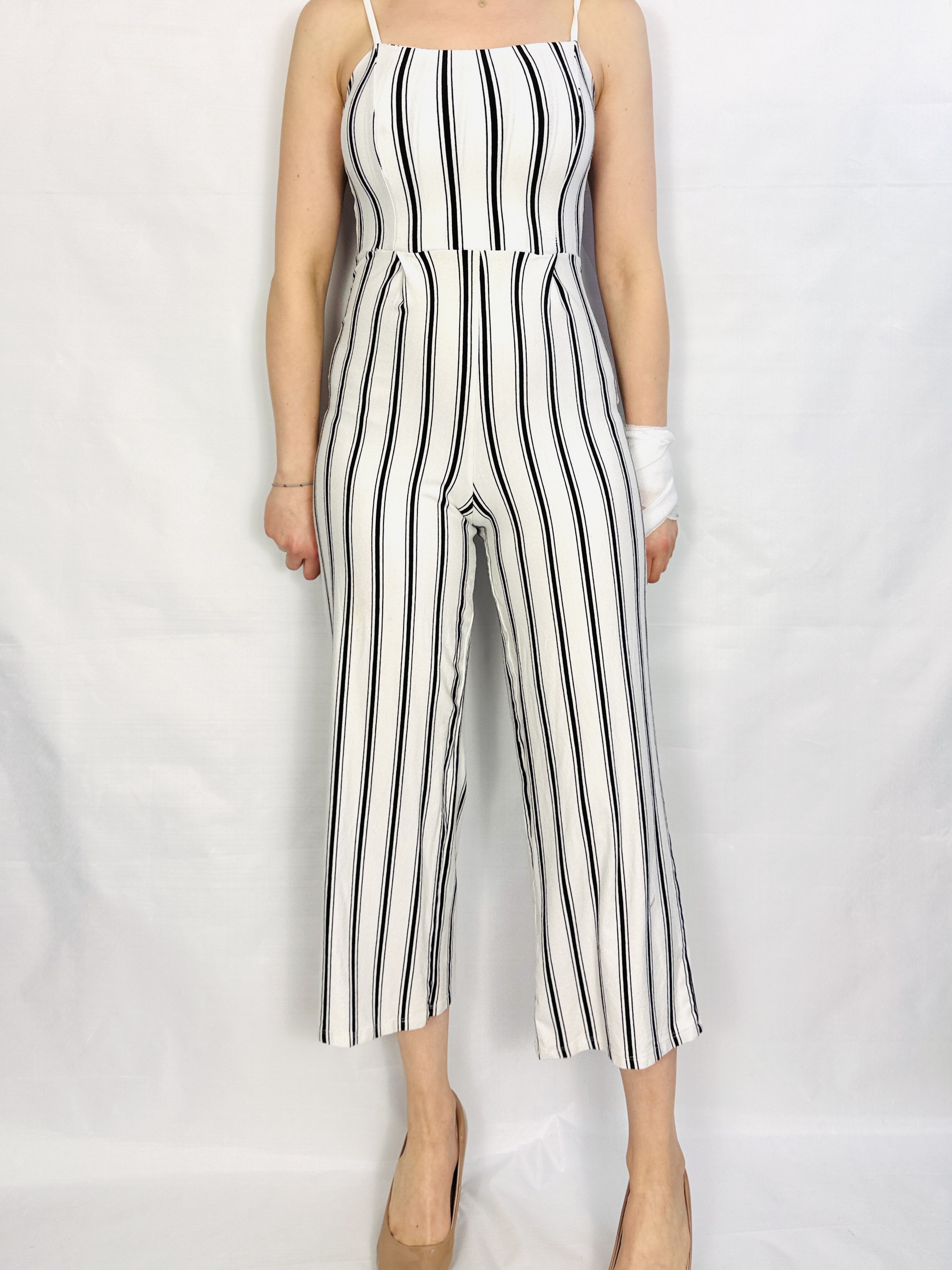 Ecru kombinezon w pionowe paski XS 34