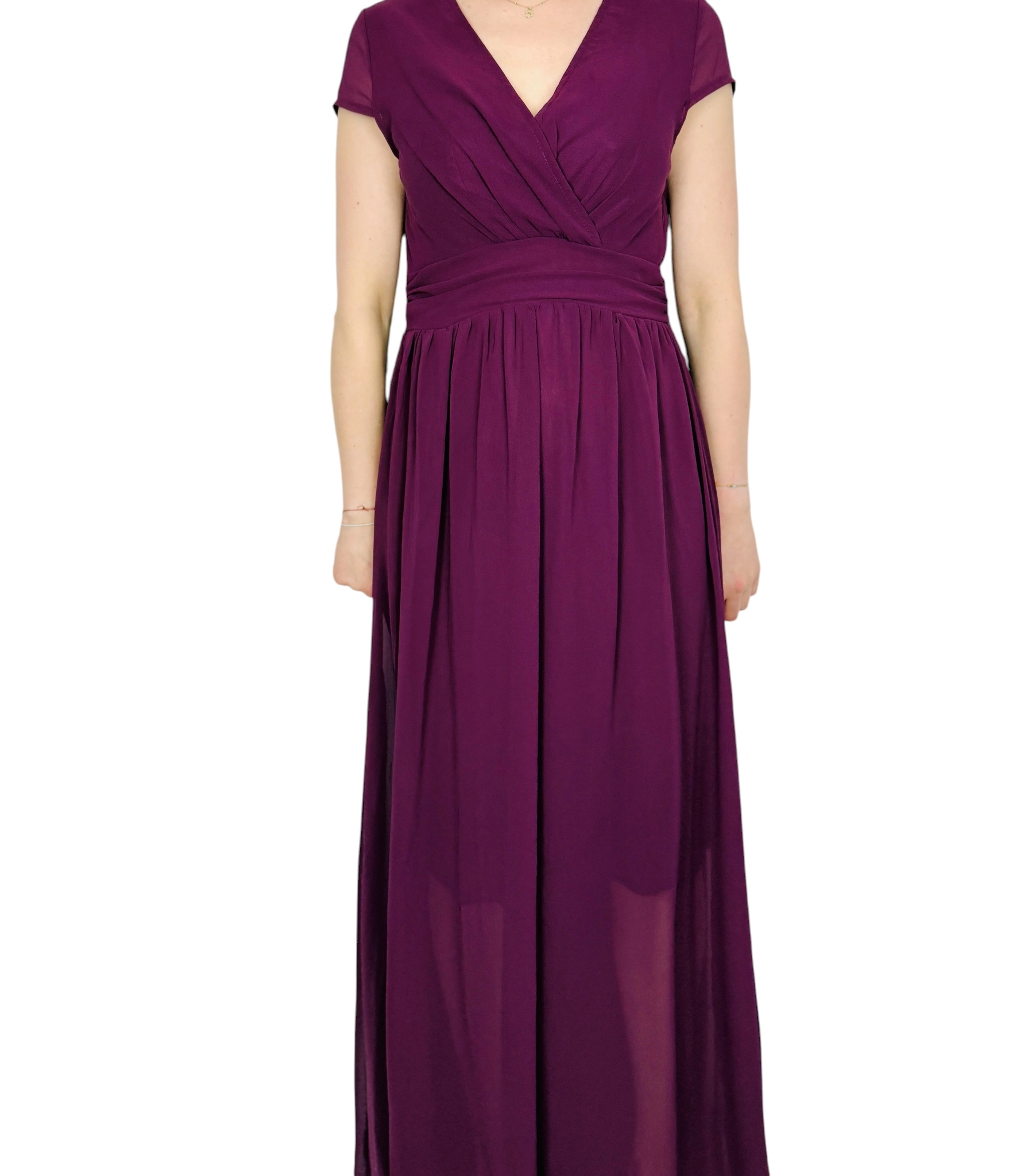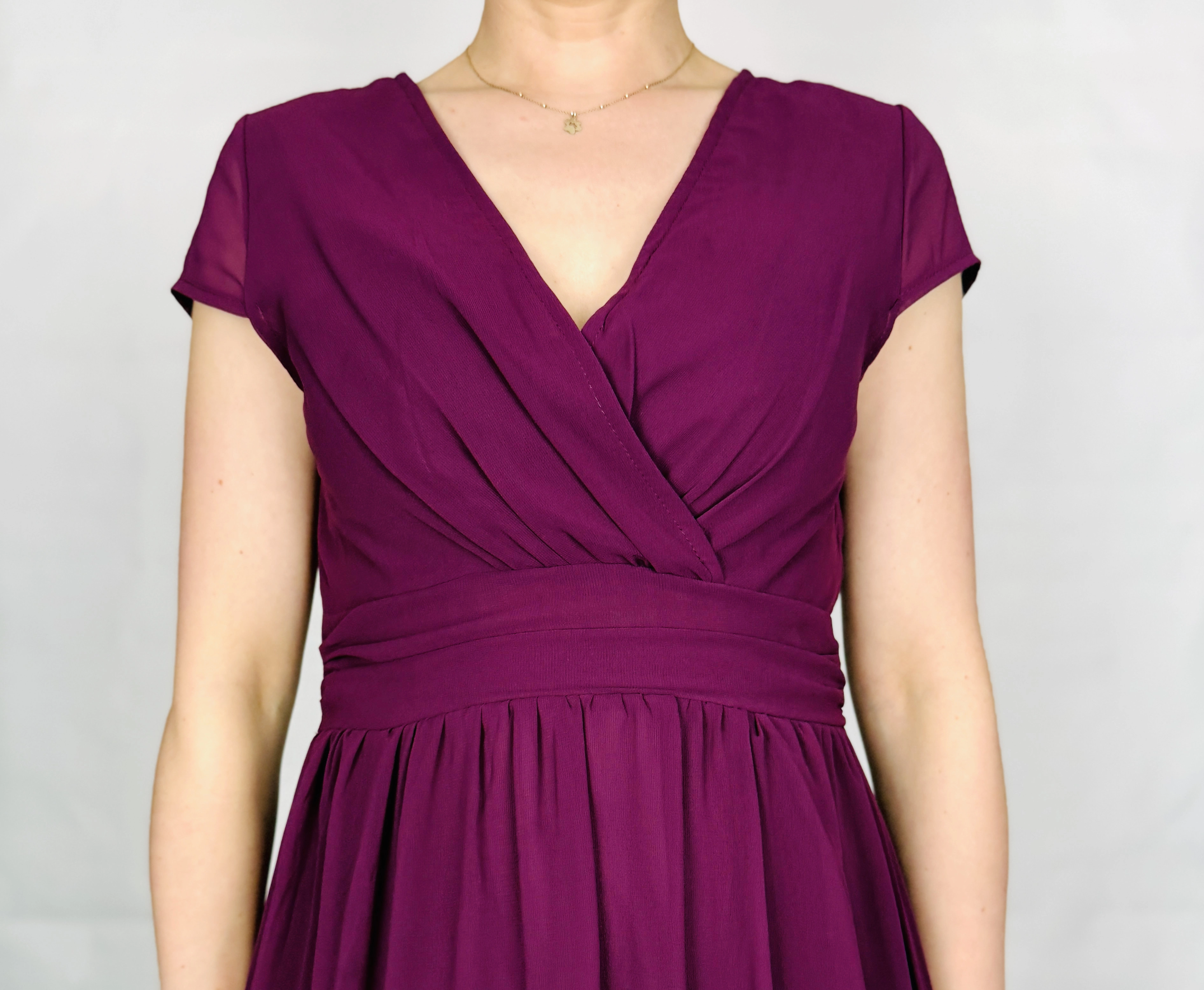 Ta sukienka maxi w głębokim, śliwkowym odcieniu fioletu to kwintesencja wieczorowej elegancji i posągowego wdzięku. Intensywny, nasycony kolor nadaje całości wyjątkowej szlachetności, sprawiając, że model ten staje się idealnym wyborem na uroczyste okazje, bale czy eleganckie przyjęcia. To kreacja, która łączy w sobie klasyczny szyk z nutą romantyzmu, tworząc aurę tajemniczości i wyrafinowanego stylu.