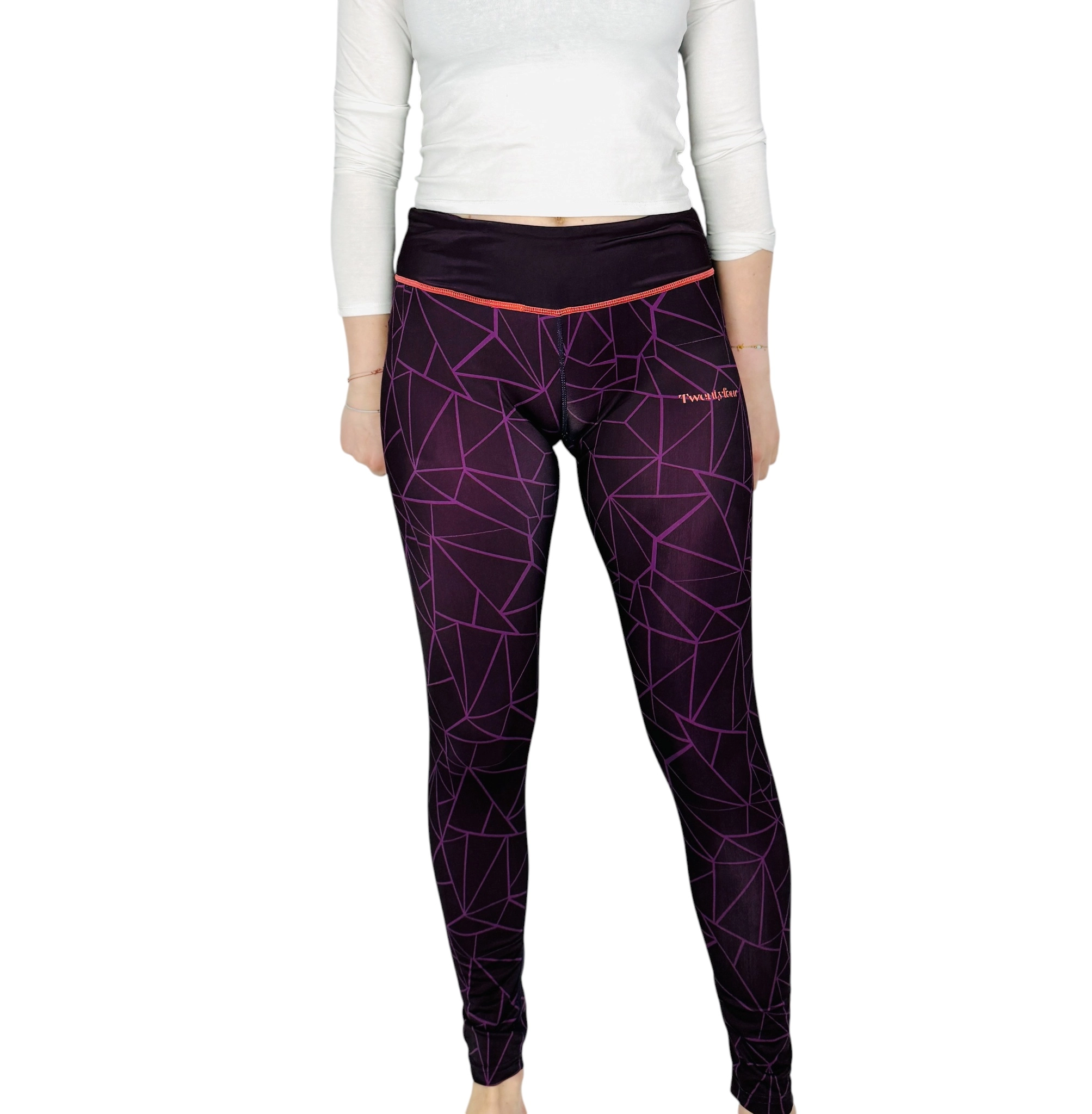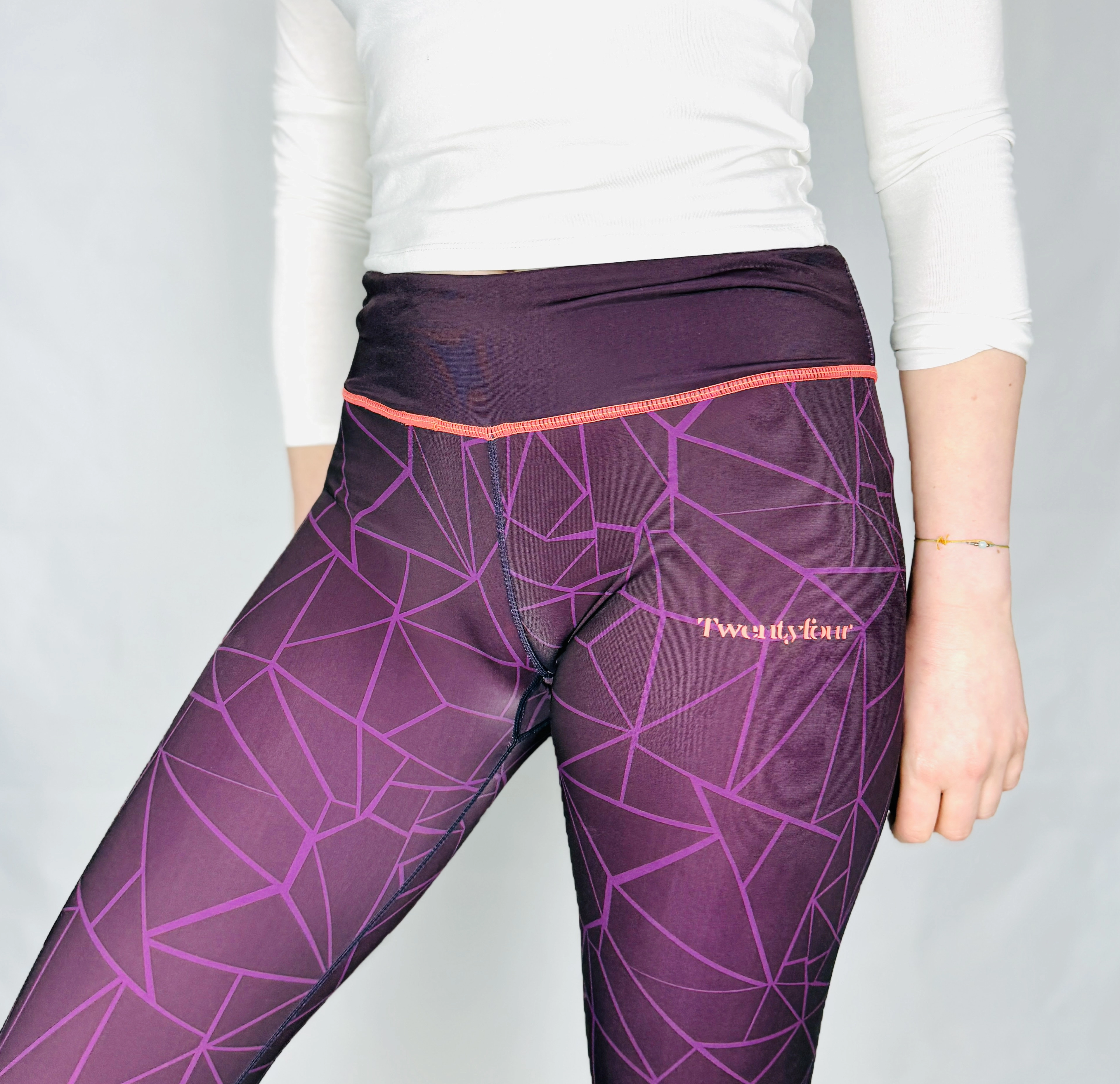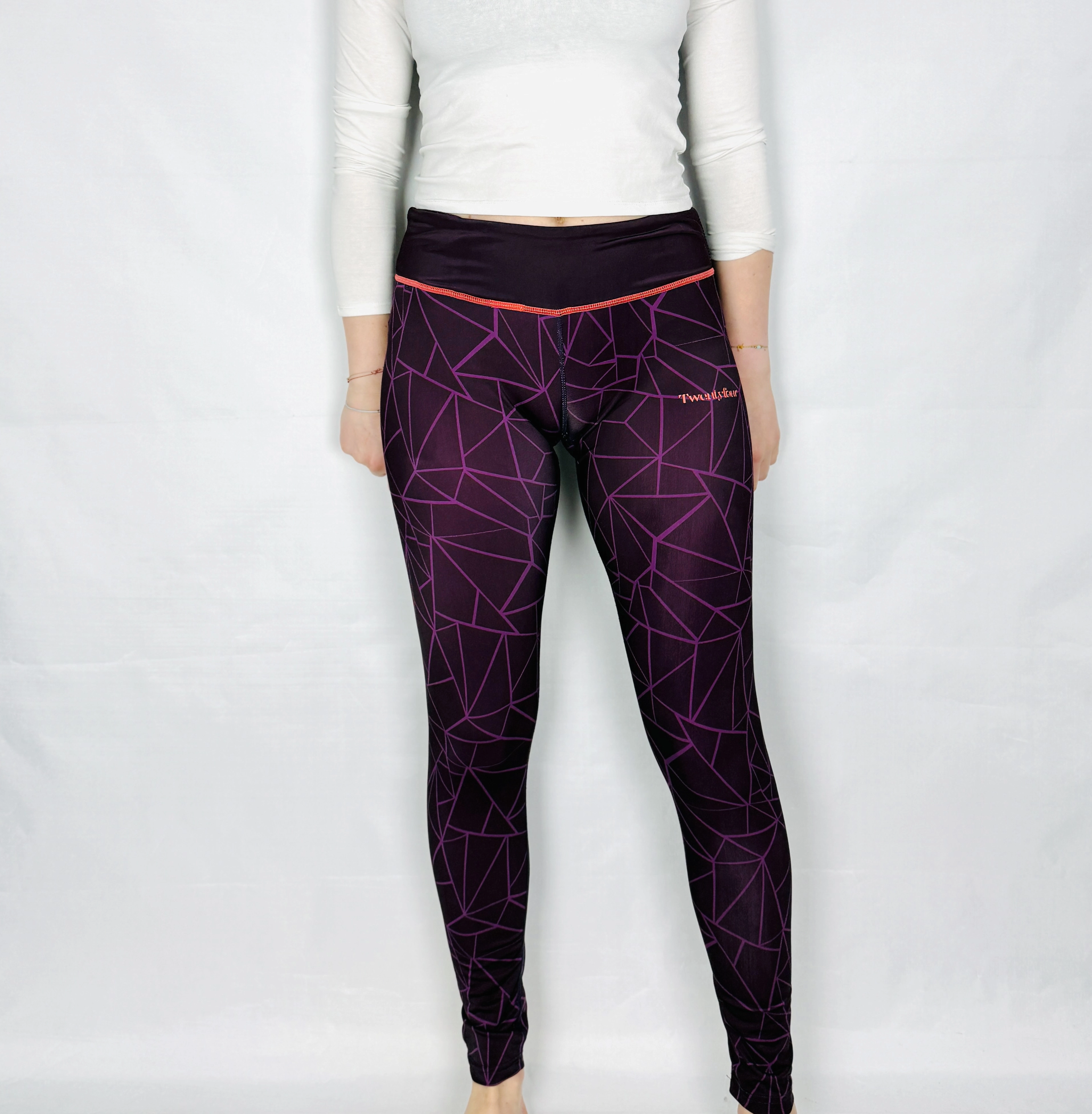 Te legginsy sportowe to idealna propozycja dla kobiet, które szukają w odzieży treningowej połączenia nowoczesnej estetyki z nutą artystycznej oryginalności. Głęboki, nasycony odcień fioletu, wpadający w elegancką śliwkę, tworzy nastrojowe tło dla geometrycznego, dynamicznego wzoru, który nadaje całości unikalny i radosny charakter. To ubiór, który emanuje energią i nowoczesnością, sprawiając, że każda aktywność fizyczna staje się okazją do radosnego wyrażenia swojego stylu. Legginsy te są doskonałą interpretacją sportowej mody, która łączy funkcjonalność z niezwykle kobiecym, nastrojowym wykończeniem.