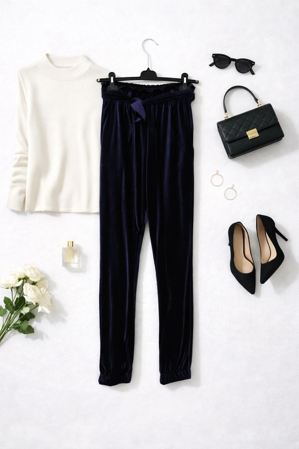 Fioletowe spodnie aksamitne doskonale odnajdują się w stylizacjach na wieczór, spotkanie czy specjalne okazje. Świetnie wyglądają w połączeniu z dopasowaną bluzką lub eleganckim topem oraz butami na obcasie. W bardziej casualowej wersji można zestawić je z prostym swetrem i wygodnym obuwiem, tworząc stylowy, ale niezobowiązujący look. Fiolet pięknie komponuje się z czernią, beżem, kremem oraz odcieniami złota i srebra, co pozwala tworzyć efektowne i spójne zestawy.
