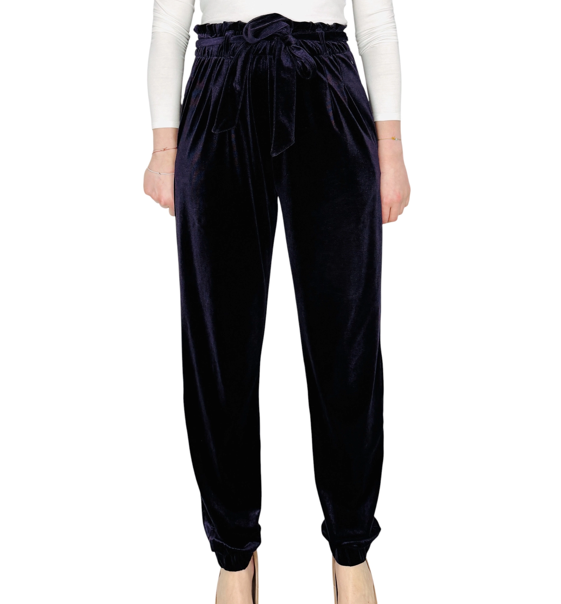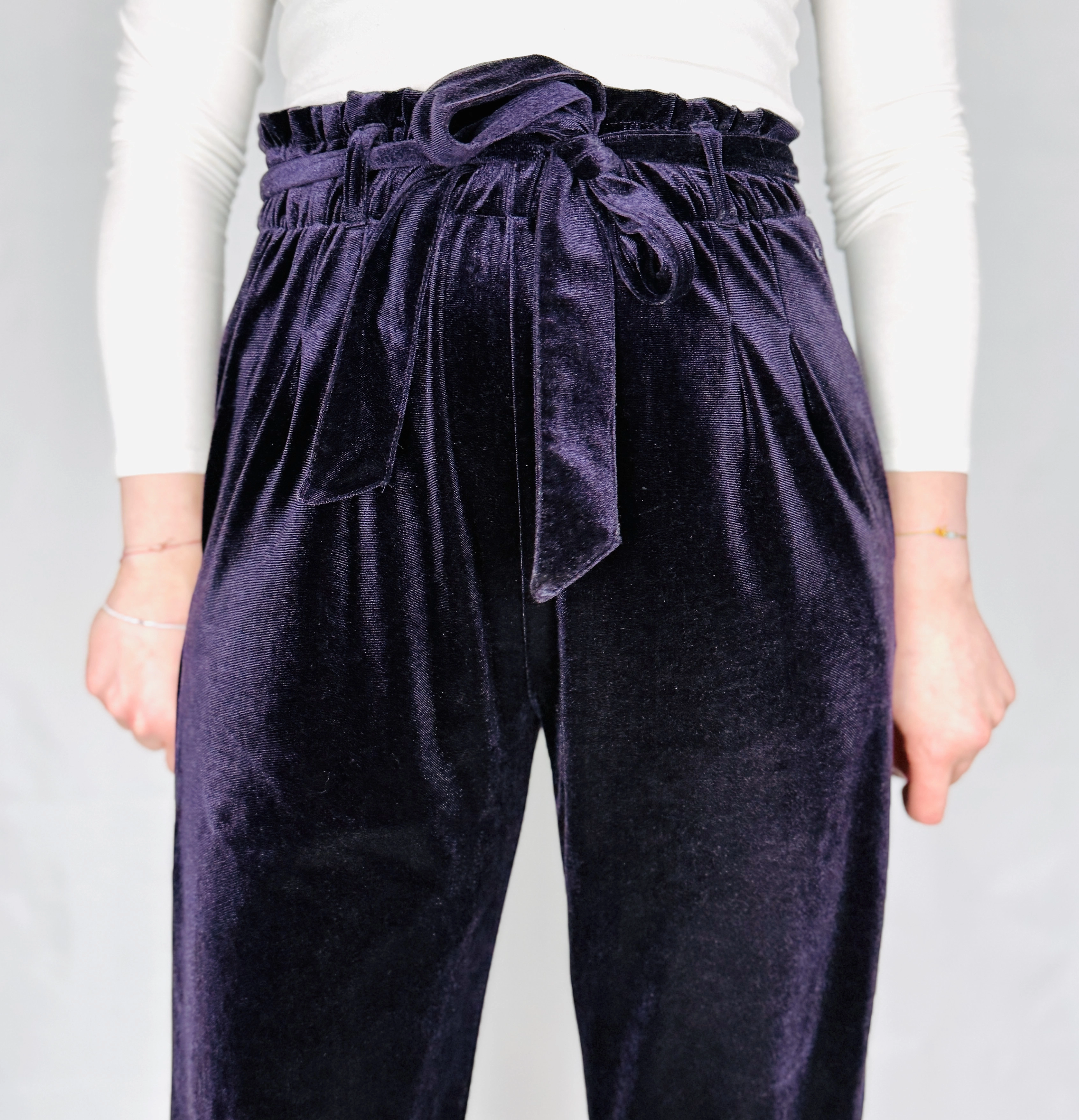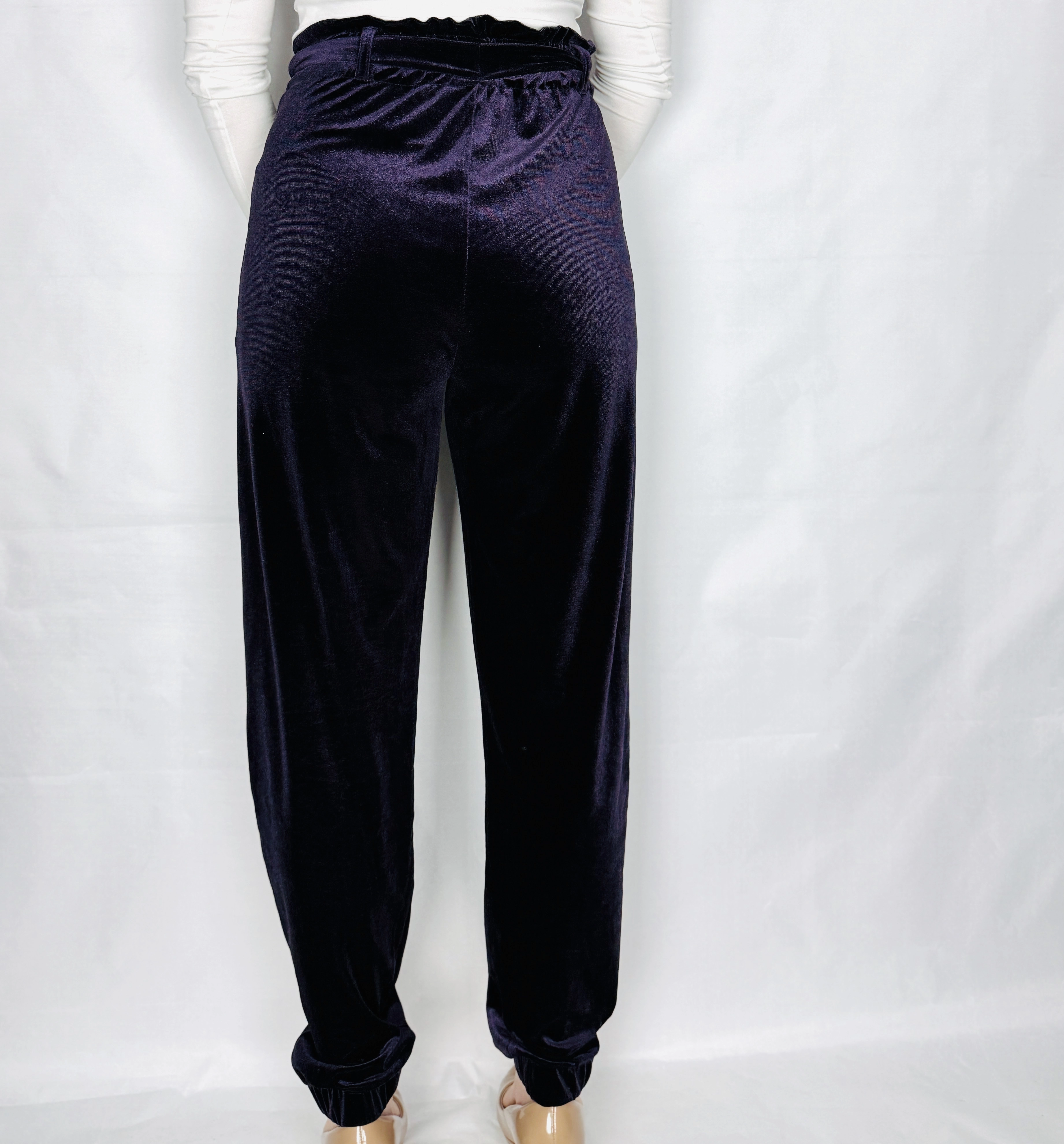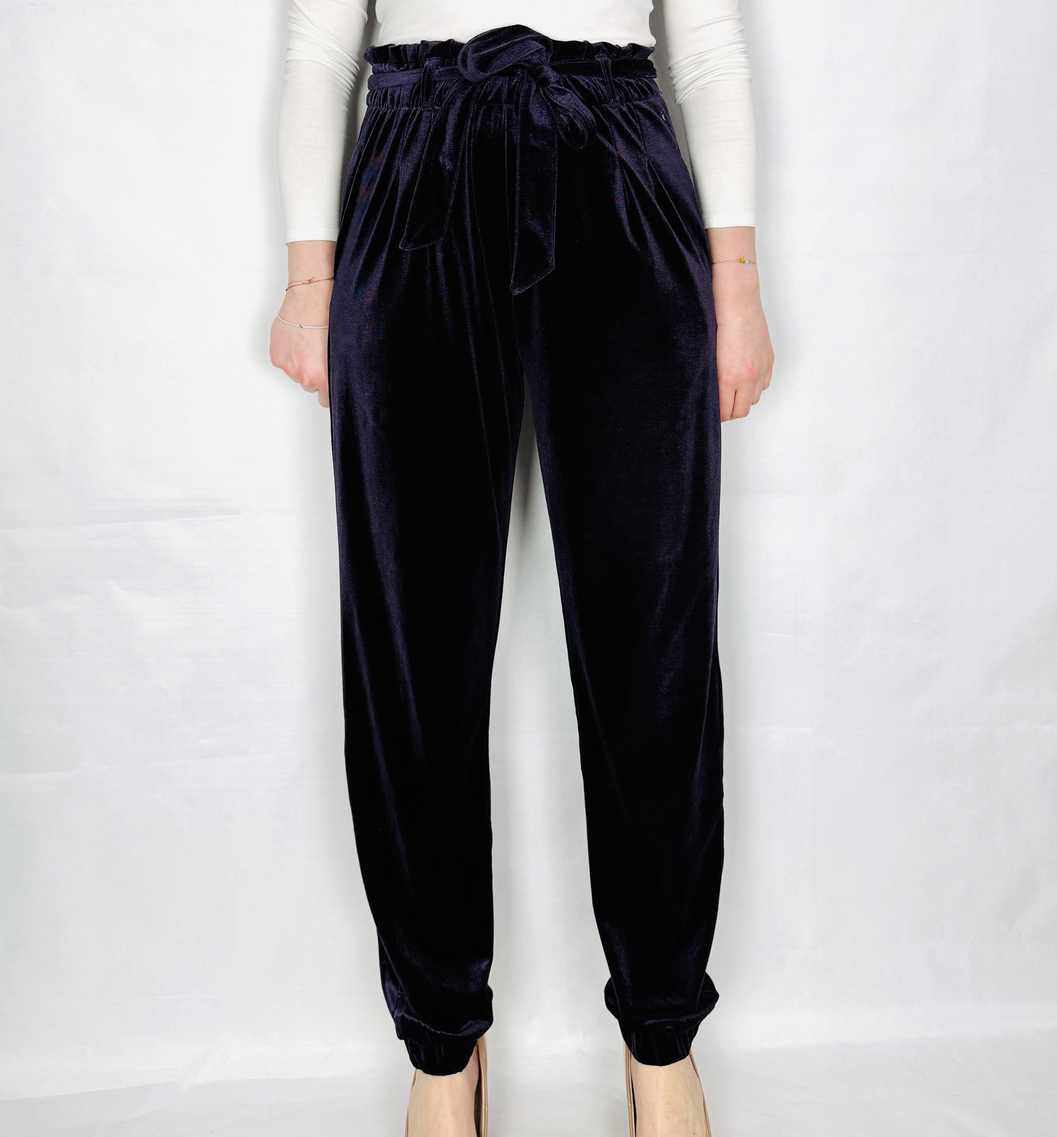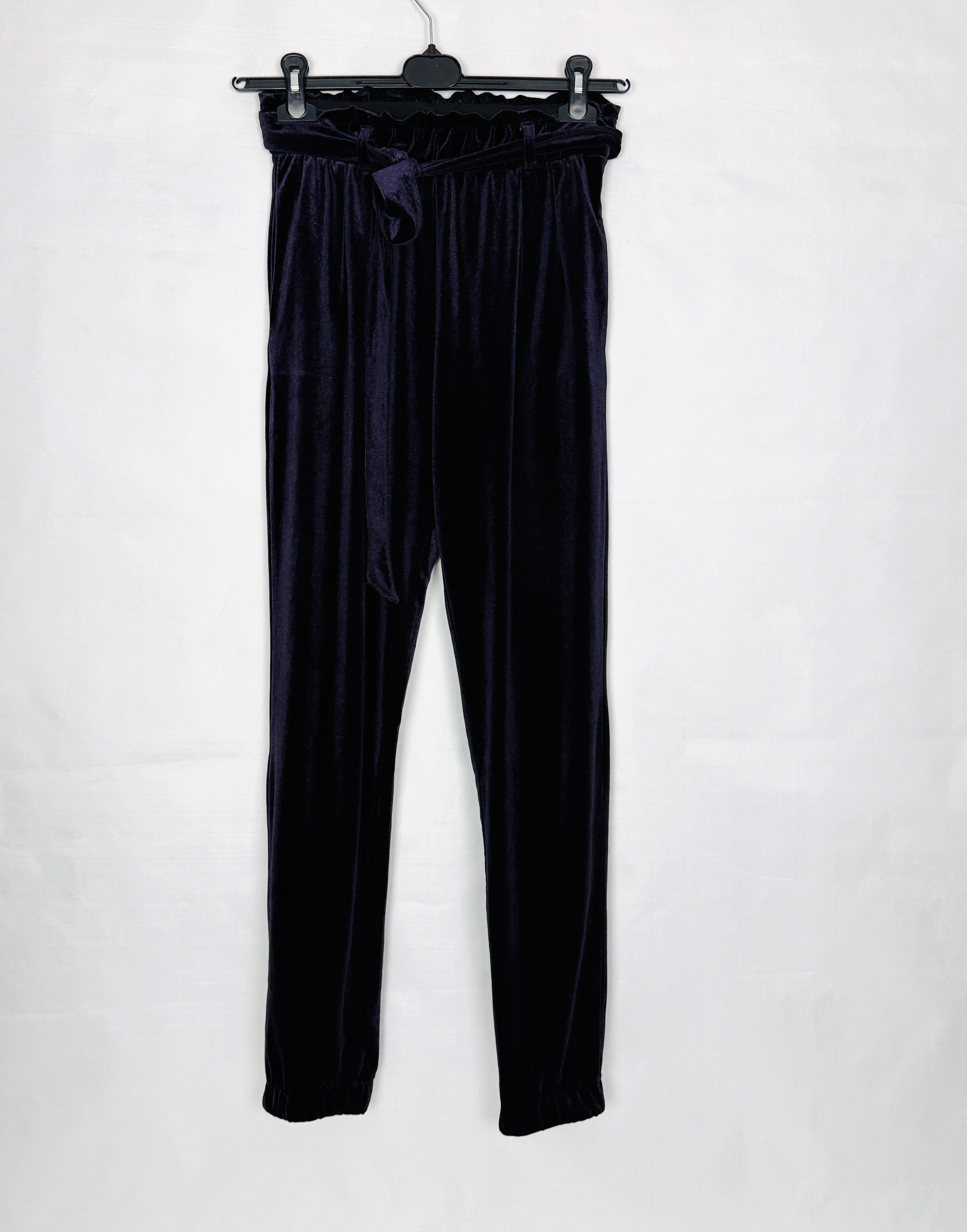 Fioletowe spodnie aksamitne z wiązaniem M 38